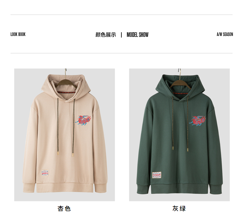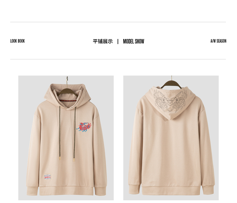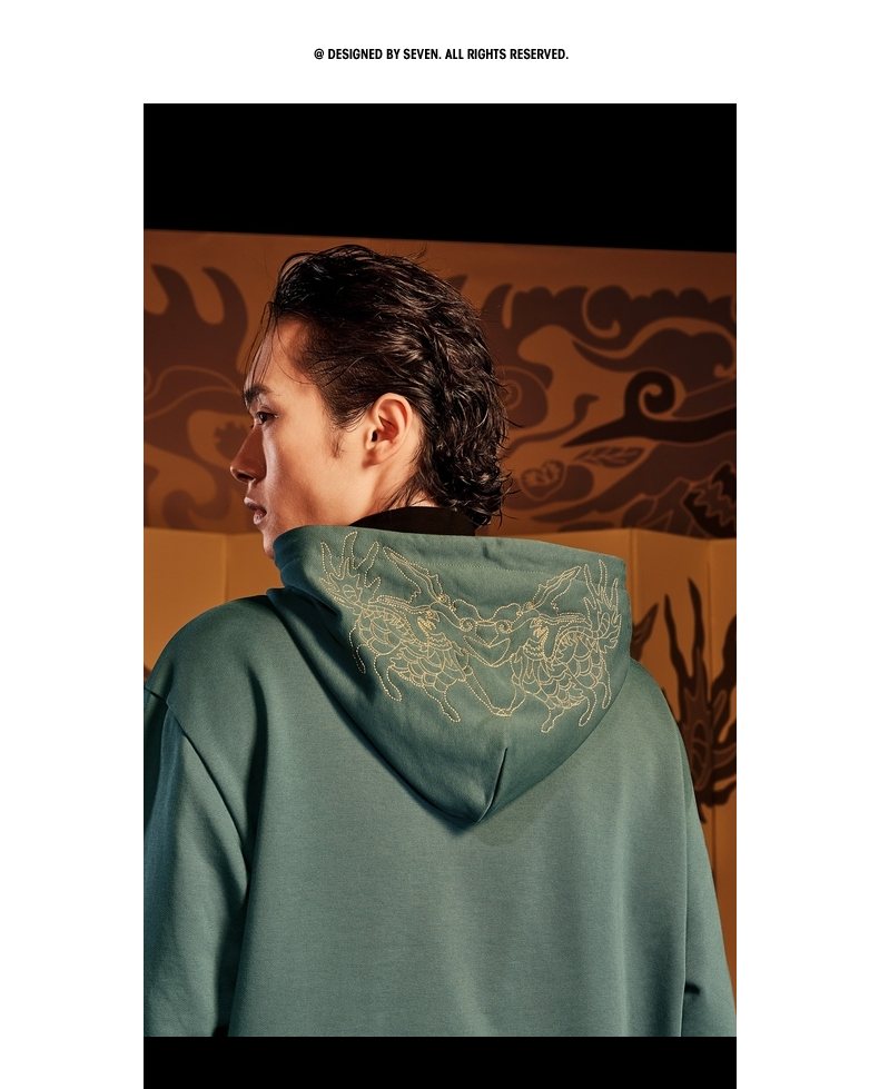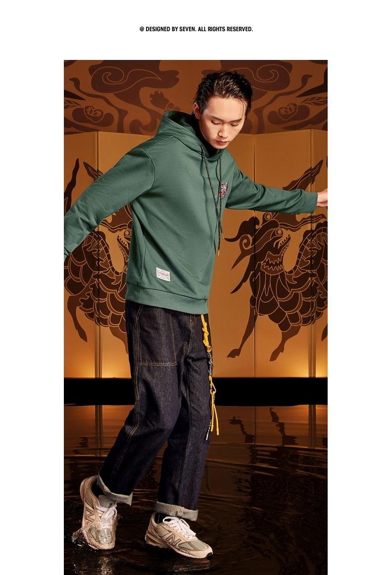 【特价】【新年麒麟祥瑞系列】柒牌卫衣男春季新款国潮青年套头帽衫潮ins 122W70010