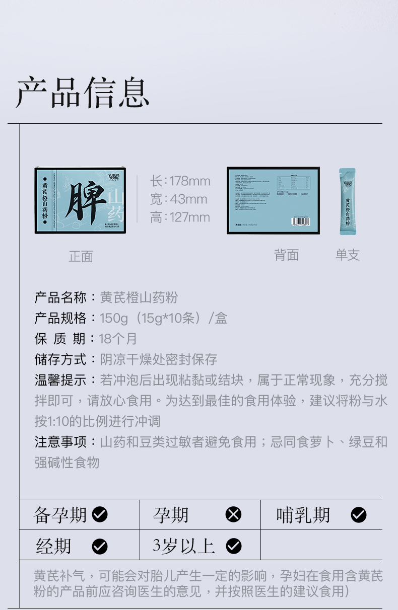 羽心堂 黄芪橙山药粉150g(15g*10)