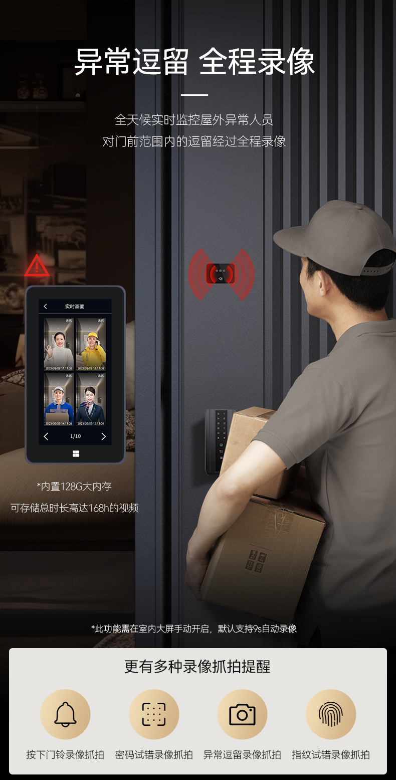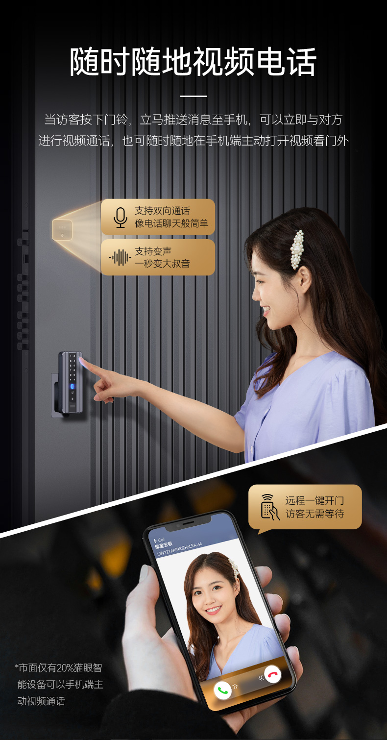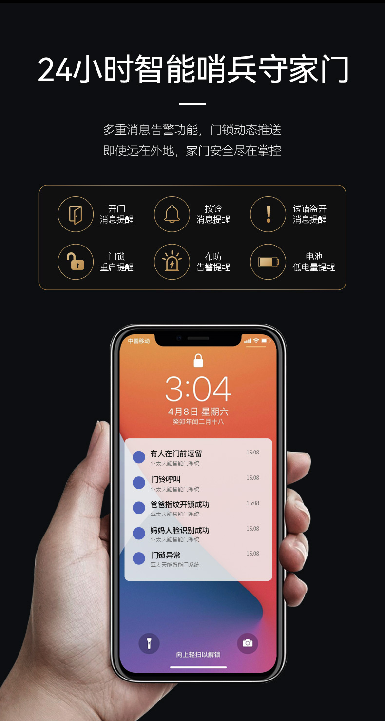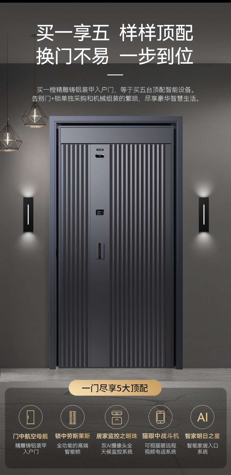 亚太天能精雕铸铝智能门H8一体化全自动AI双摄监控防盗入户门家用进户门子母大门