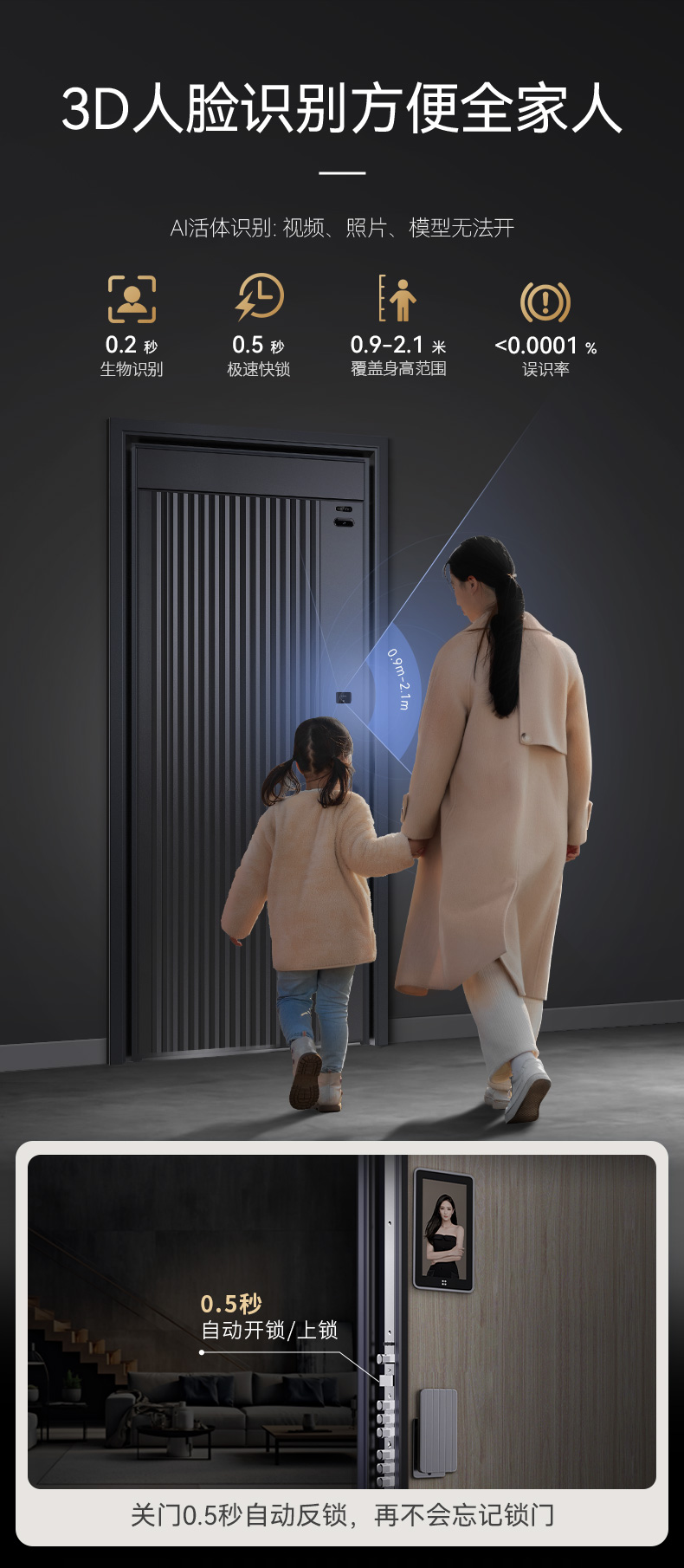 亚太天能智能门H3一体化全自动AI双摄监控防盗入户门家用全自动进户门大门