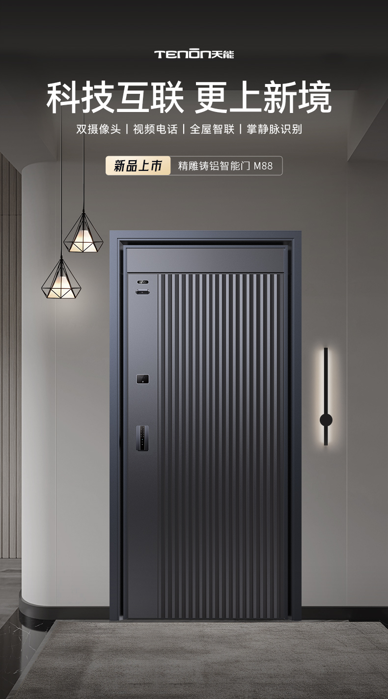 亚太天能精雕铸铝智能门M88人脸识别掌静脉进户门大门防盗入户门