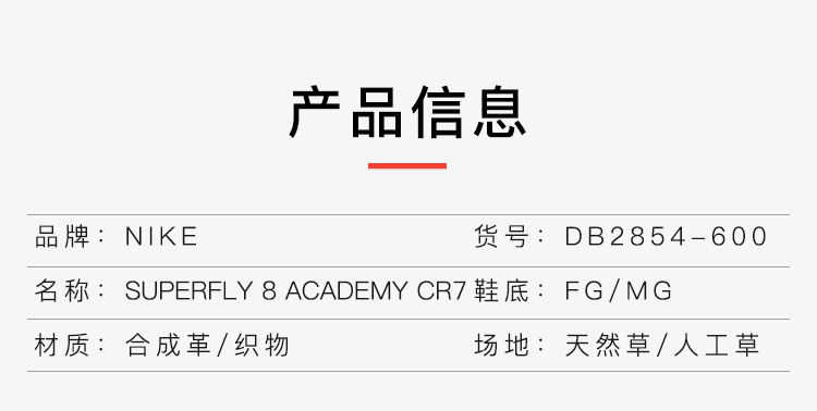 NIKE/耐克 Mercurial Superfly 8 Academy CR7 FG/MG 刺客14 CR7 C罗专属配色中端高帮FG/MG足球鞋DB2854600