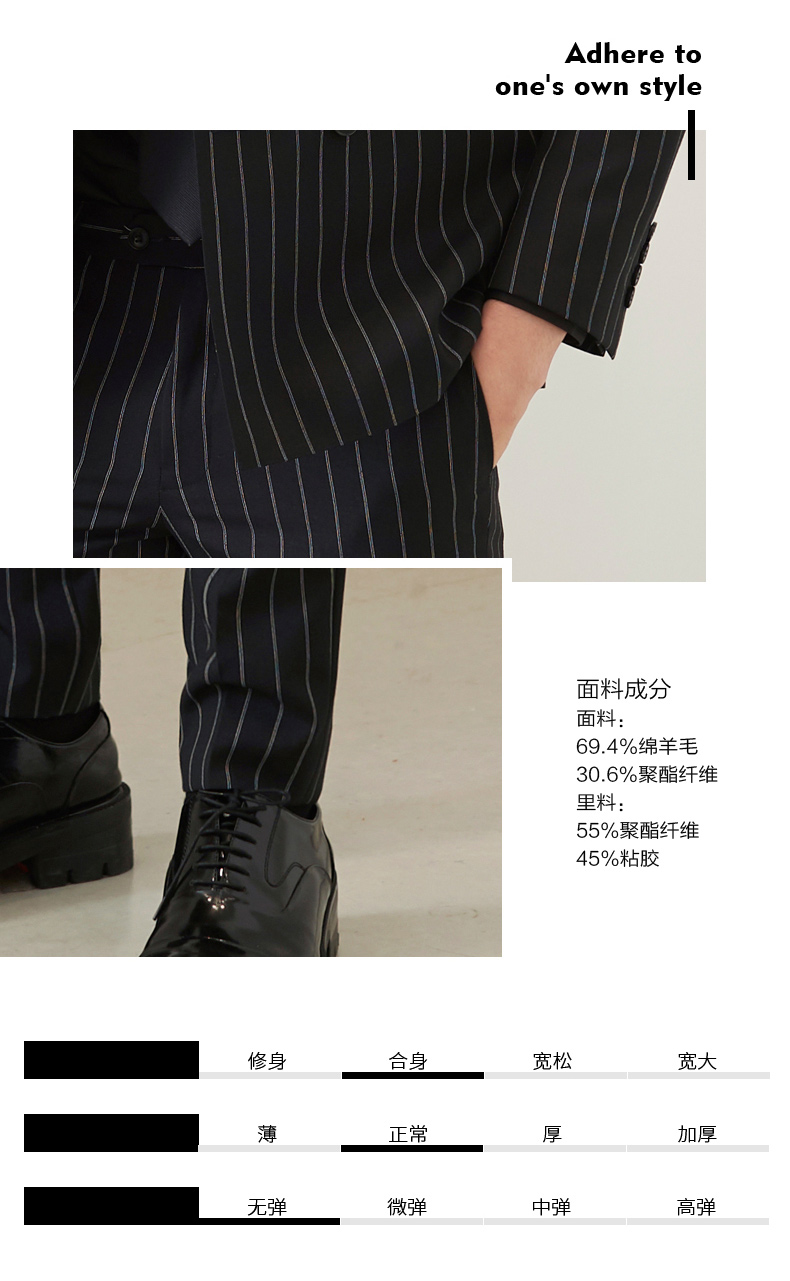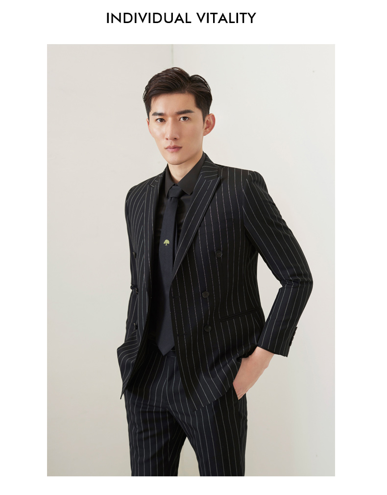 贝纳川竖条纹通勤男士西裤100026034402