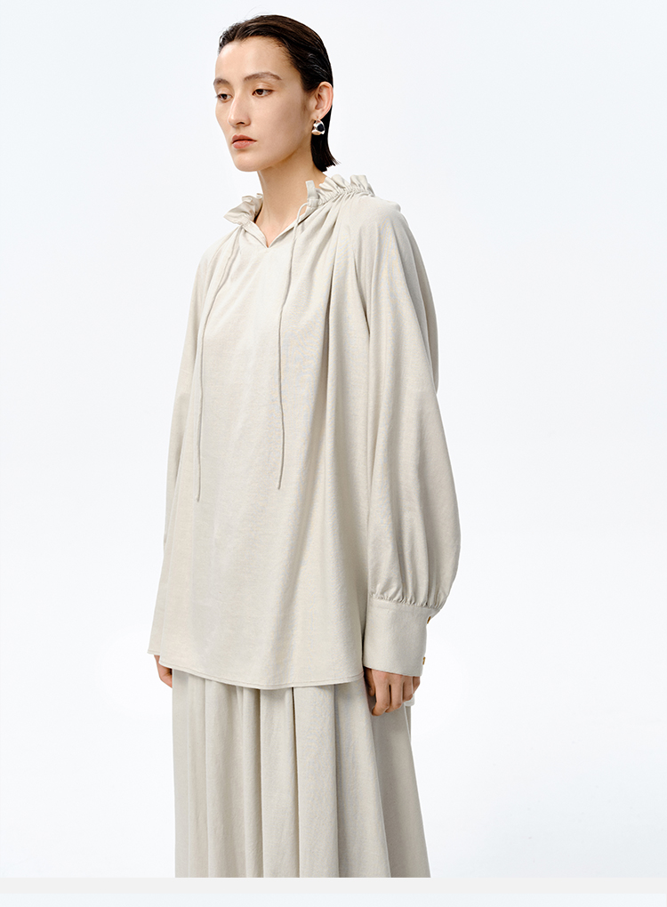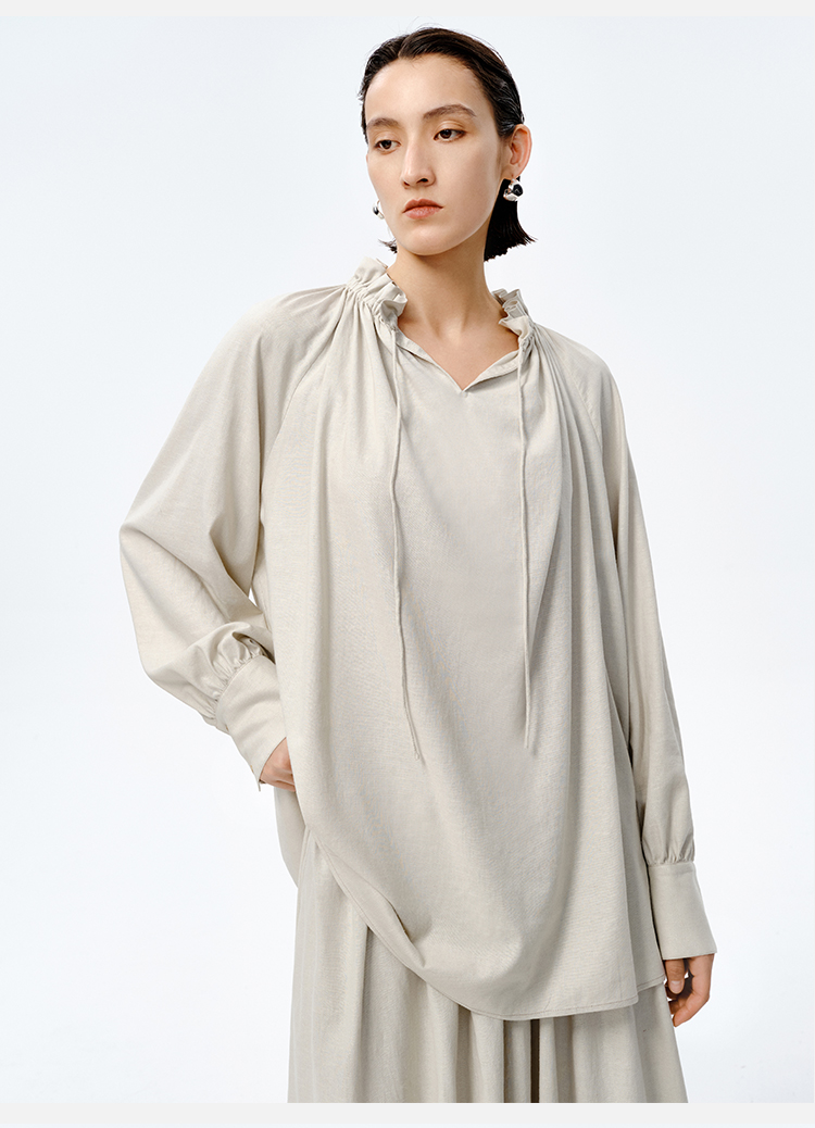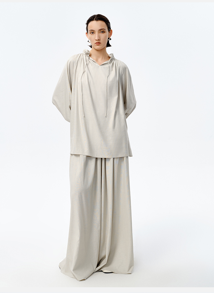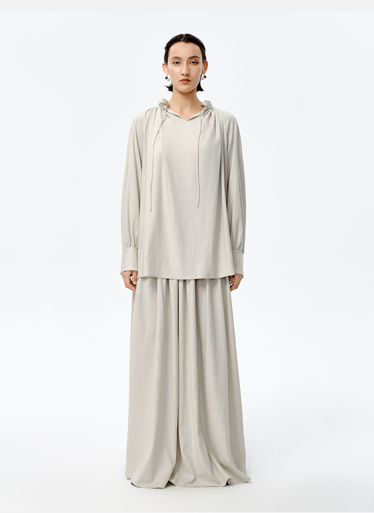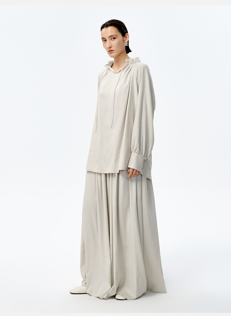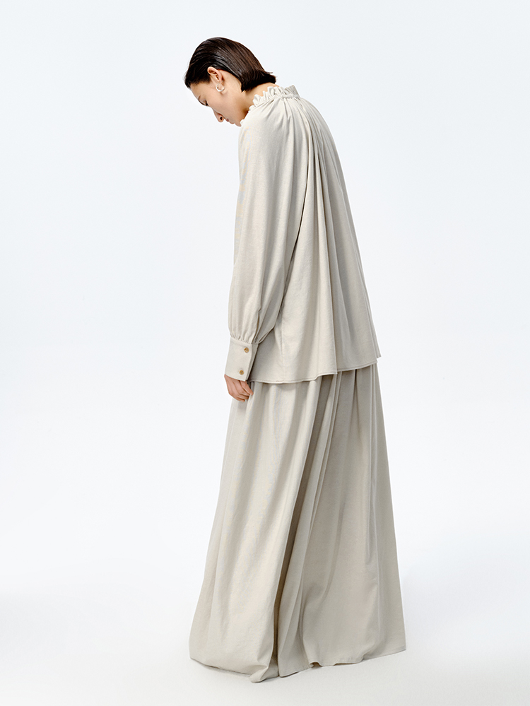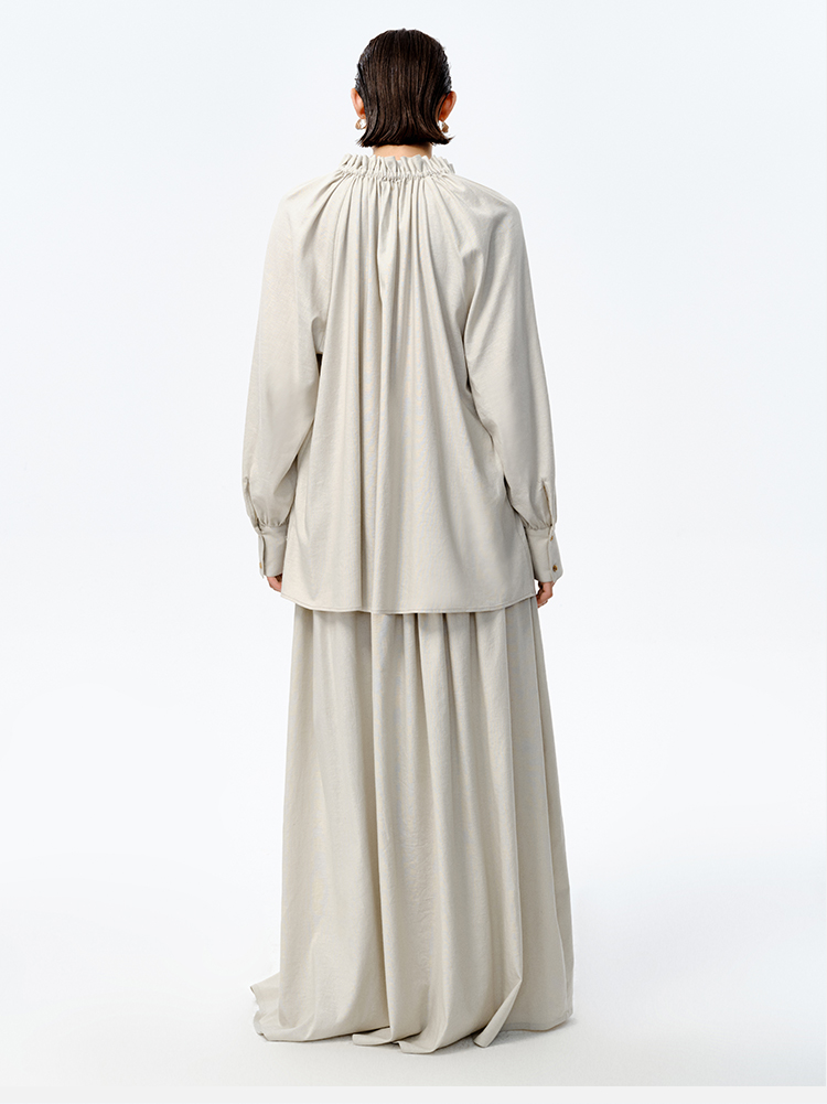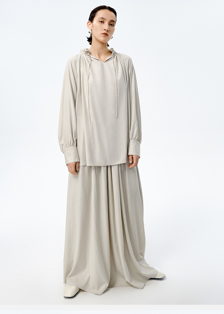 HIDEMI 花苞抽绳设计感阔形褶皱衬衫半裙套装