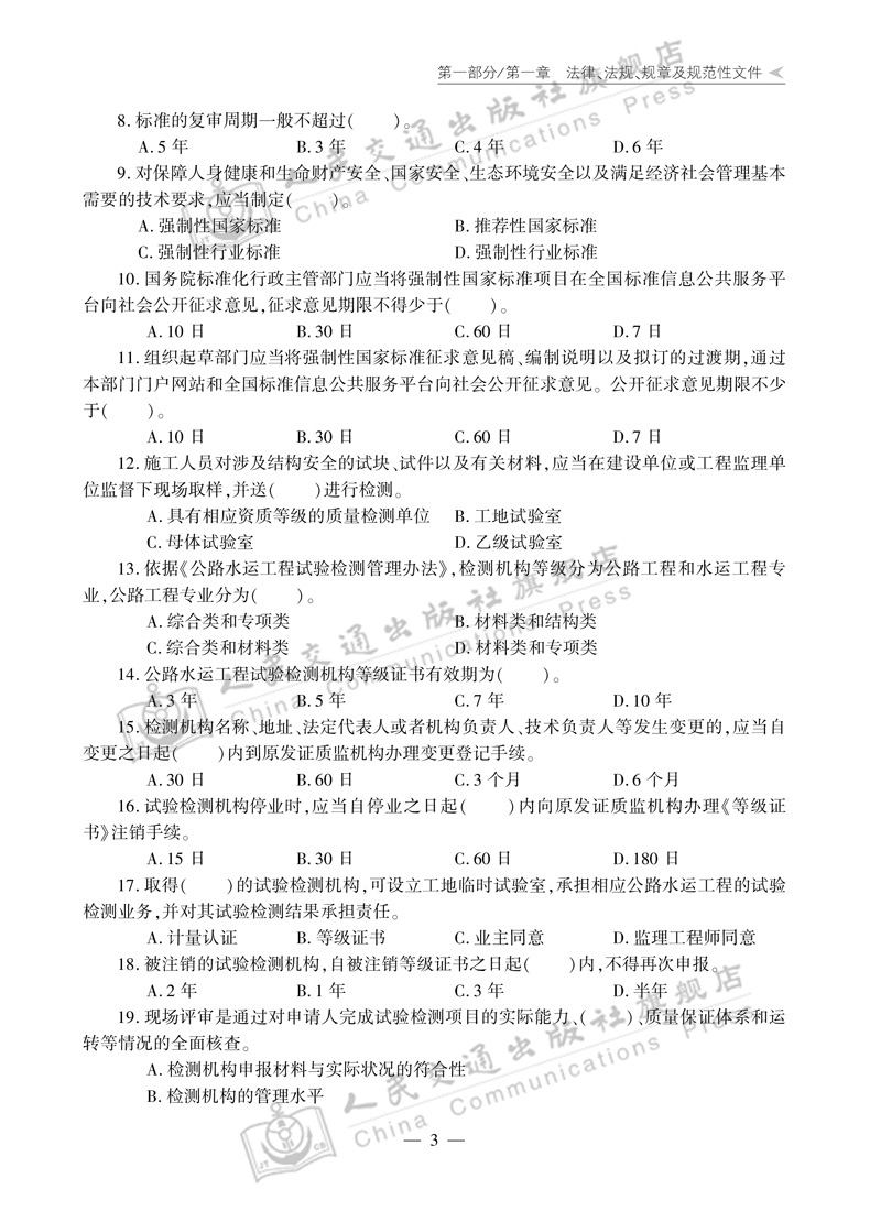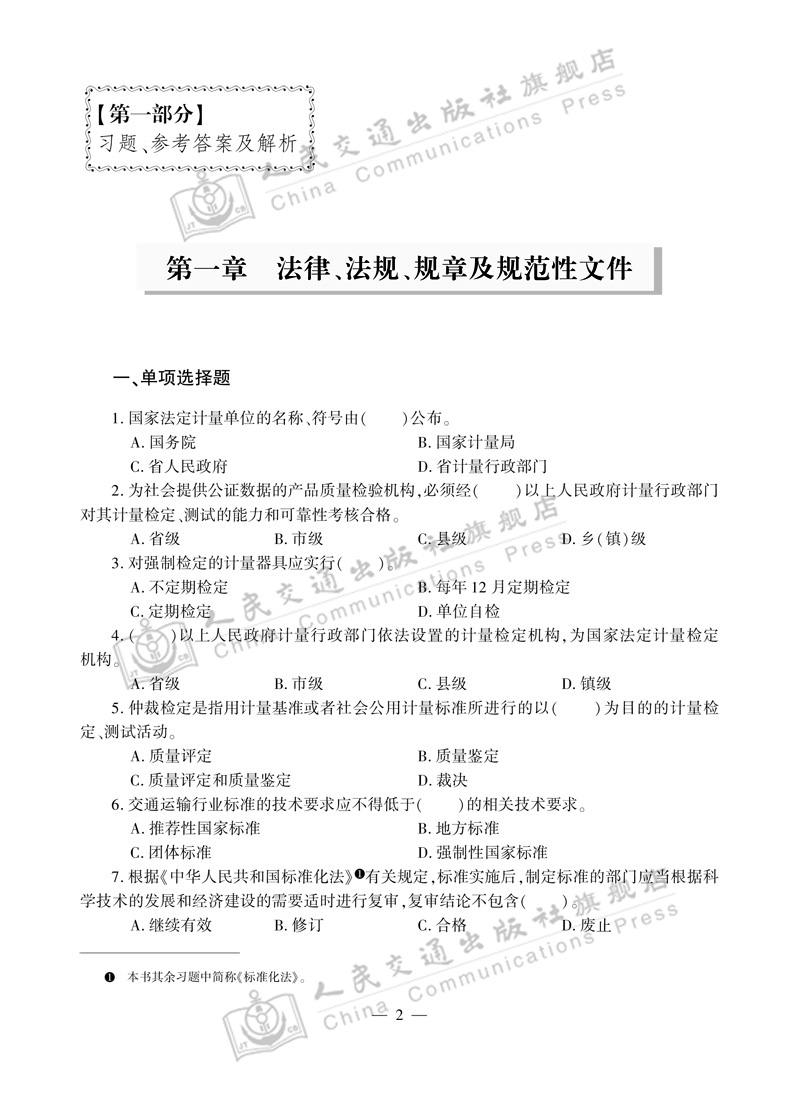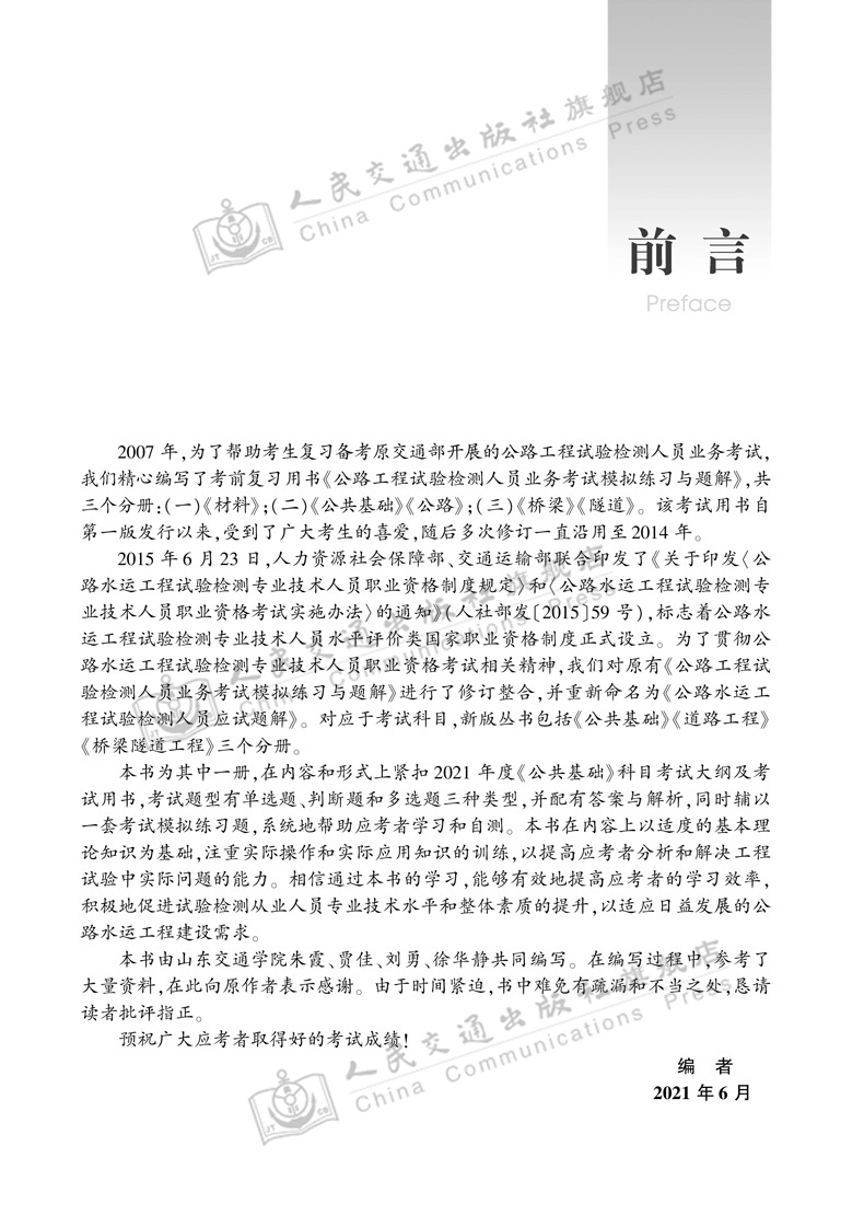书名:2021公路水运工程试验检测人员应试题解 公共基础