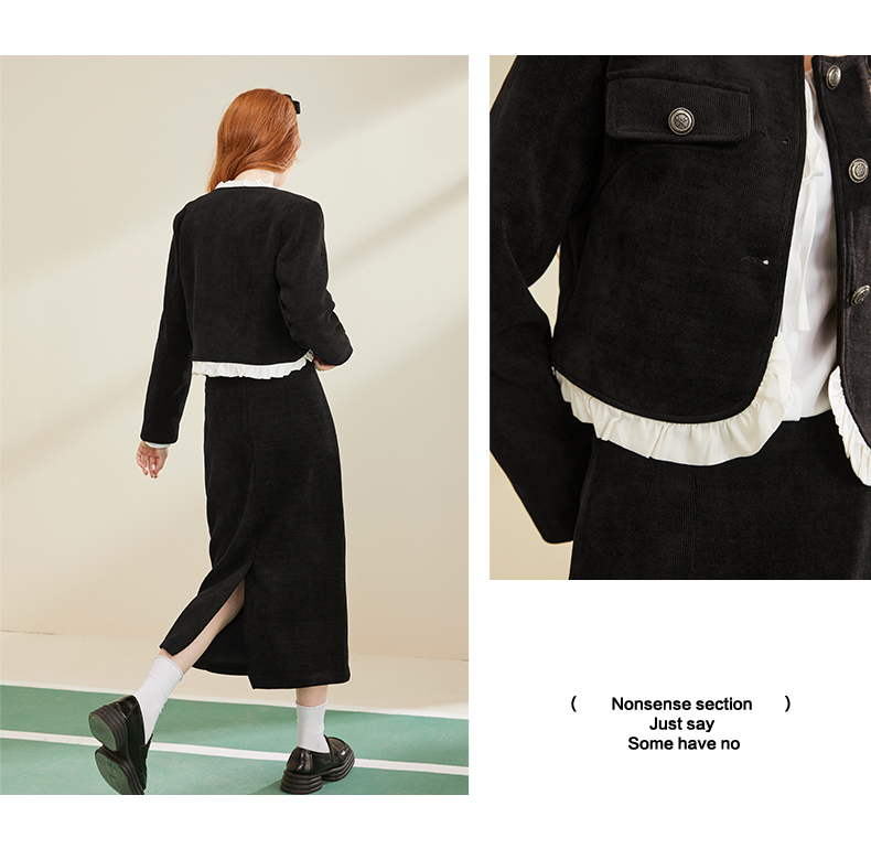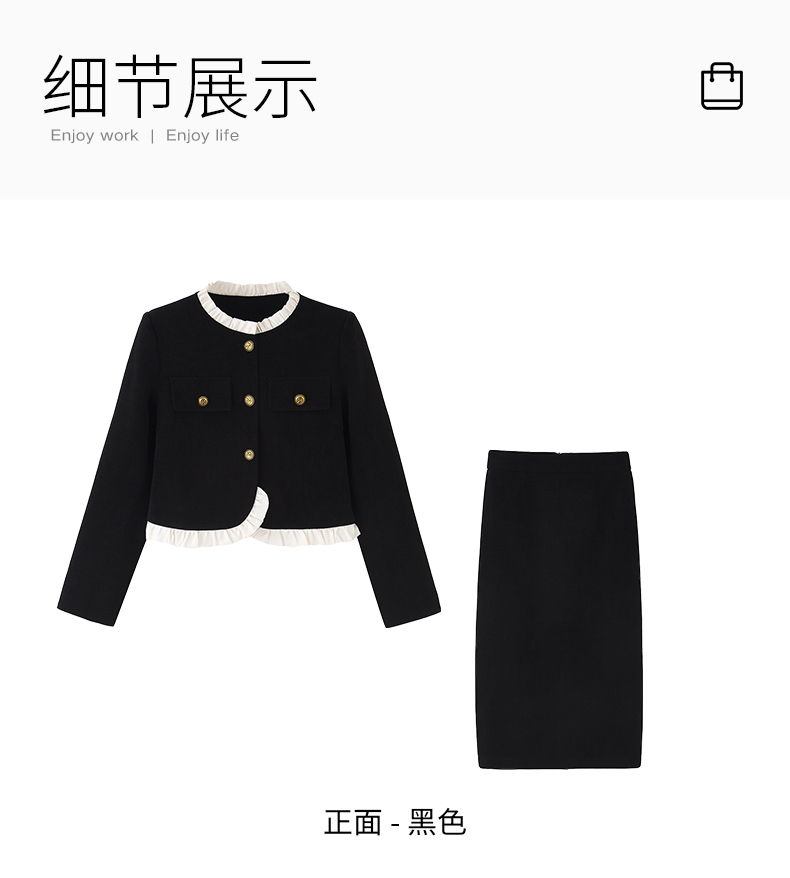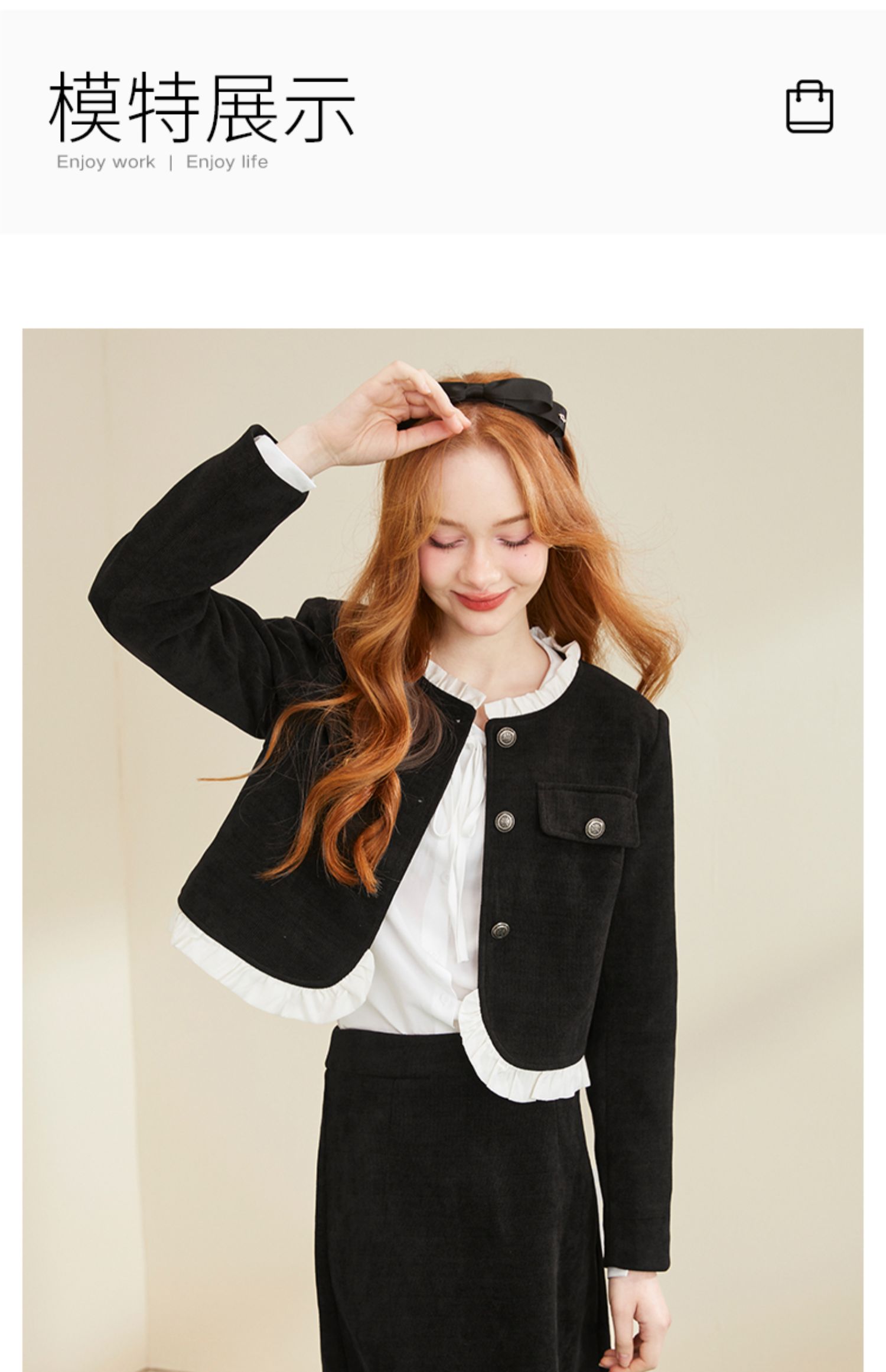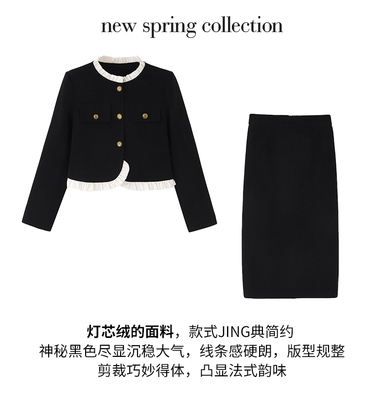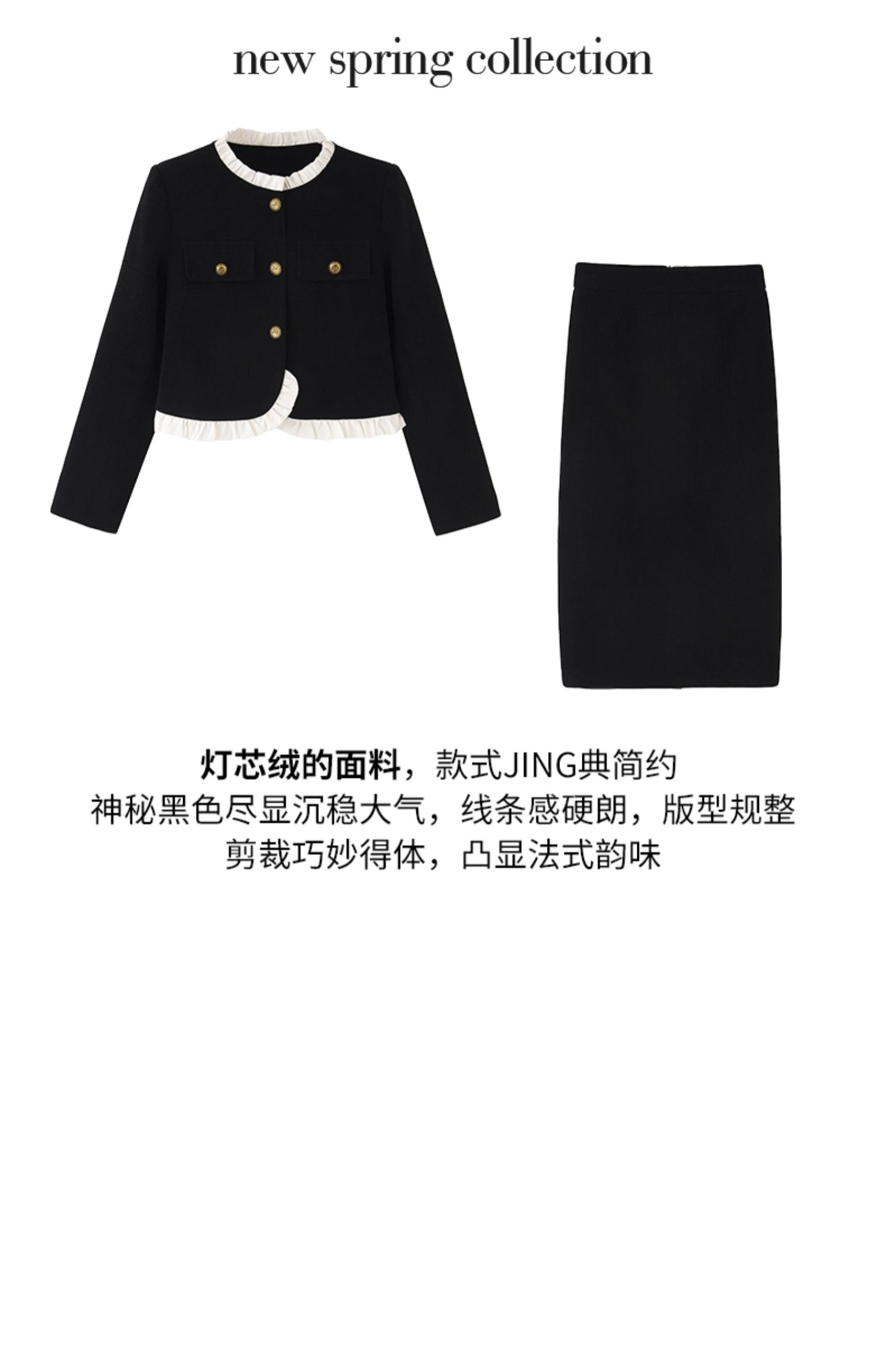 mc2小香风套装女2024春装新款圆领拼木耳边配直筒半裙气质两件套
