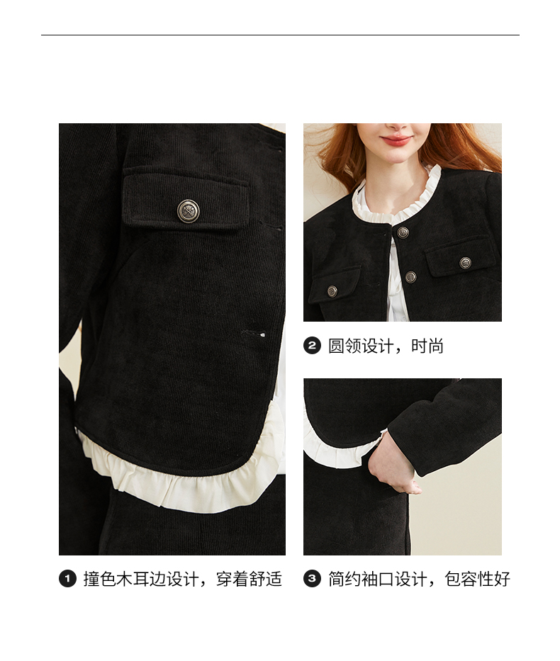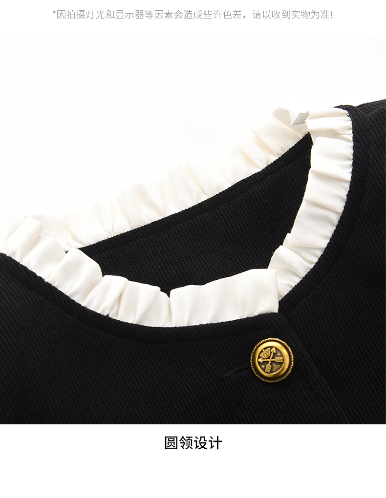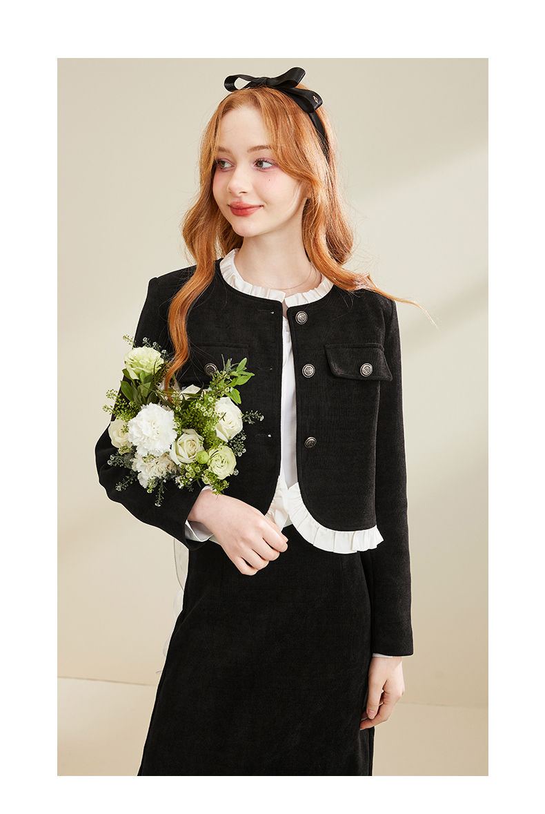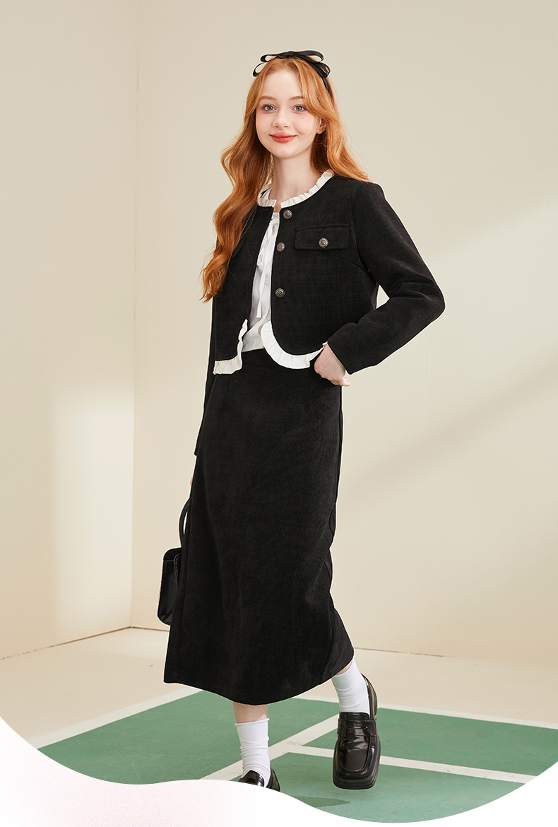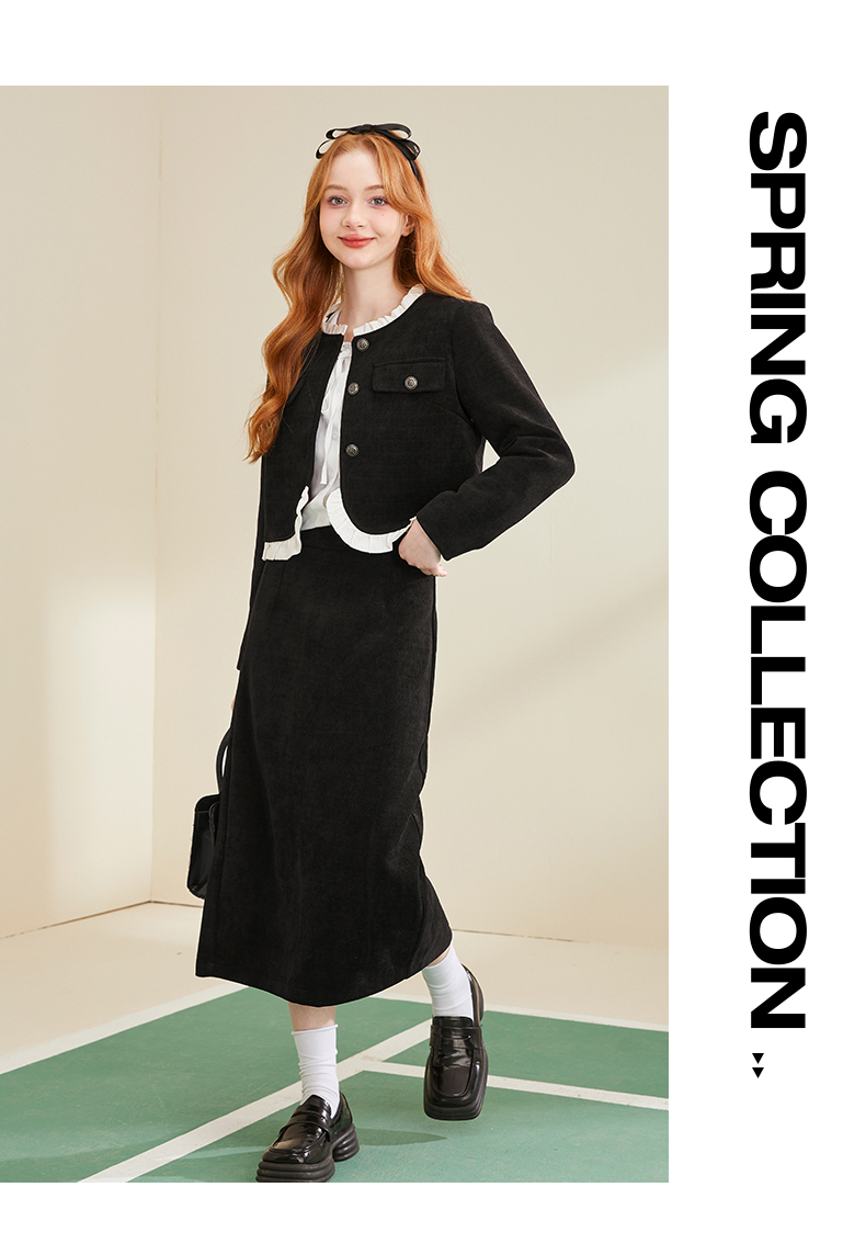 mc2小香风套装女2024春装新款圆领拼木耳边配直筒半裙气质两件套