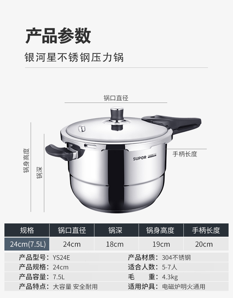 苏泊尔银河星不锈钢压力锅YS24E