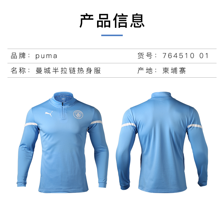 PUMA/彪马 21-22赛季曼城半拉链热身训练服长袖76451001