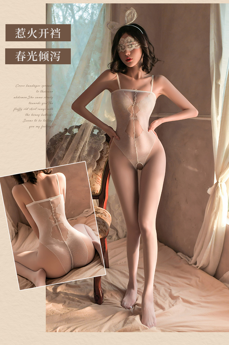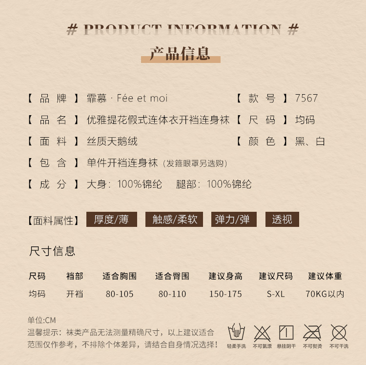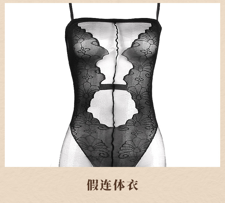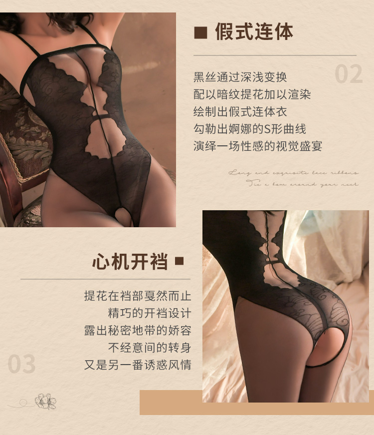 霏慕情趣内衣制服优雅提花假式连体衣开裆连身袜丝袜新款7567 黑色【单件连身袜】 均码