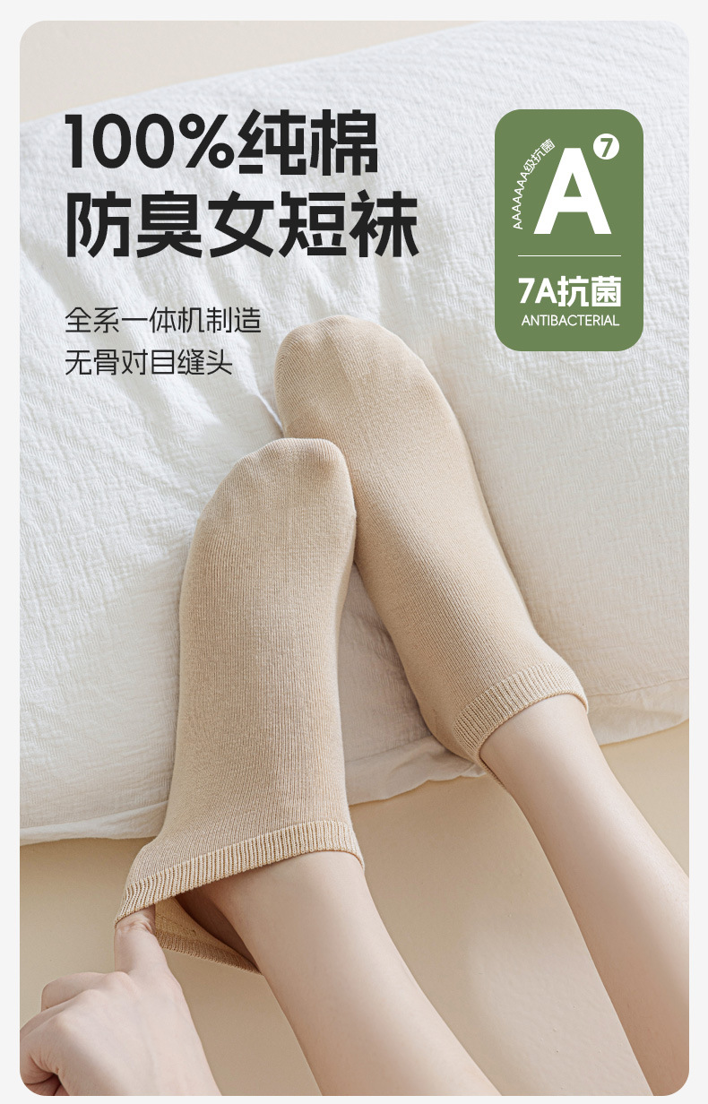 夏季女款7A级抑菌新疆棉纯棉短袜 抗菌防臭透气无骨船袜