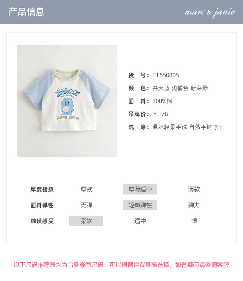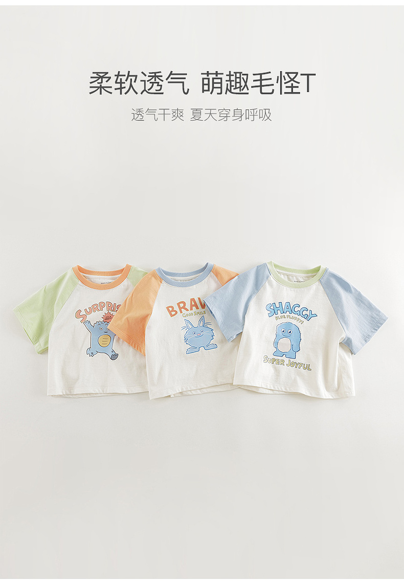 马克珍妮男童萌趣毛怪短袖T恤 宝宝纯棉上衣2025年夏装新款550805