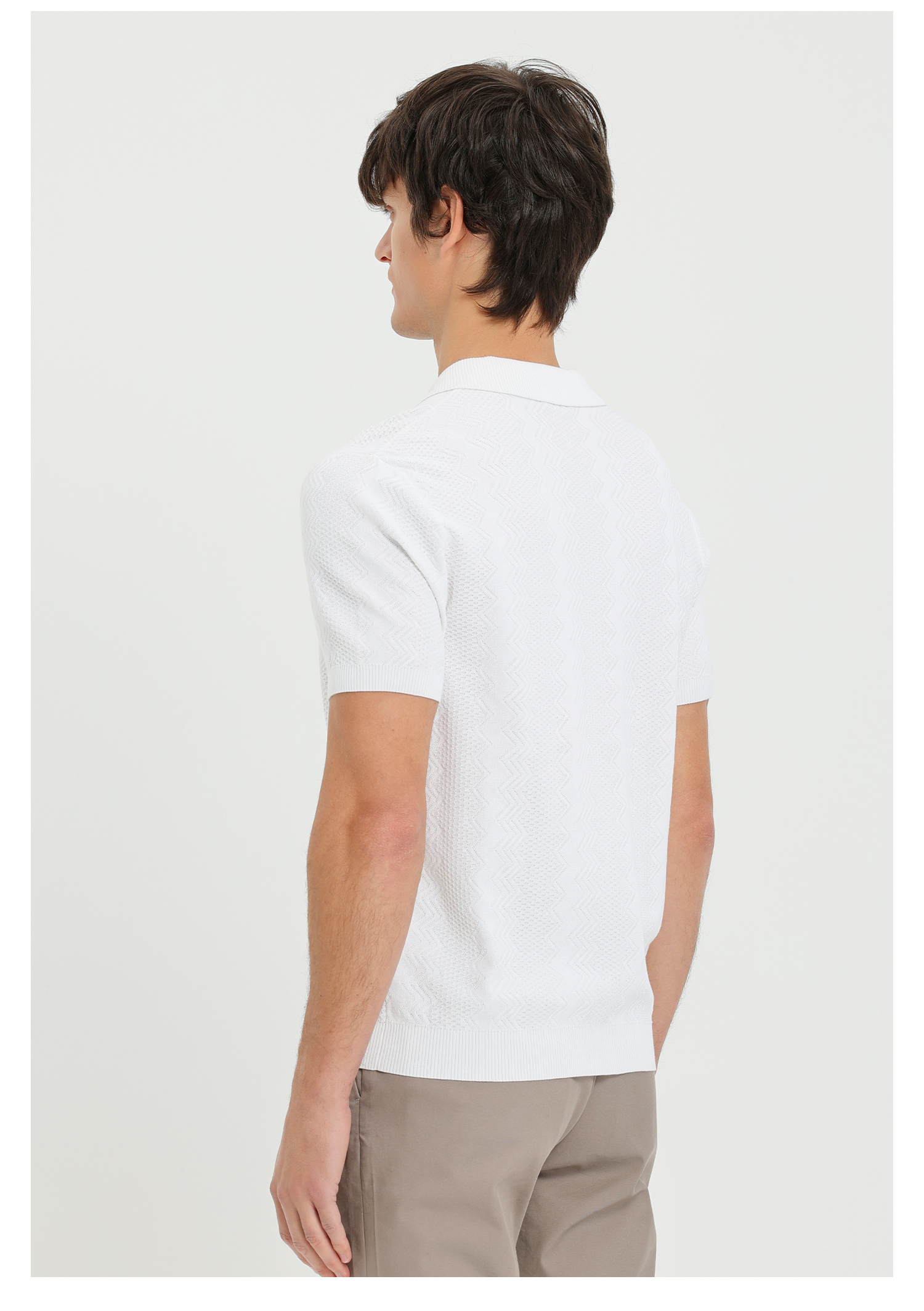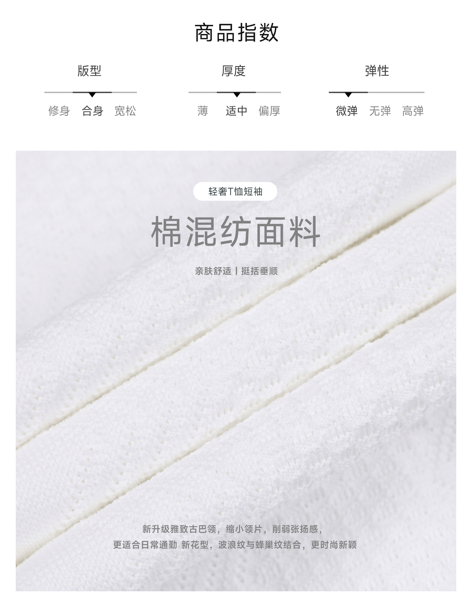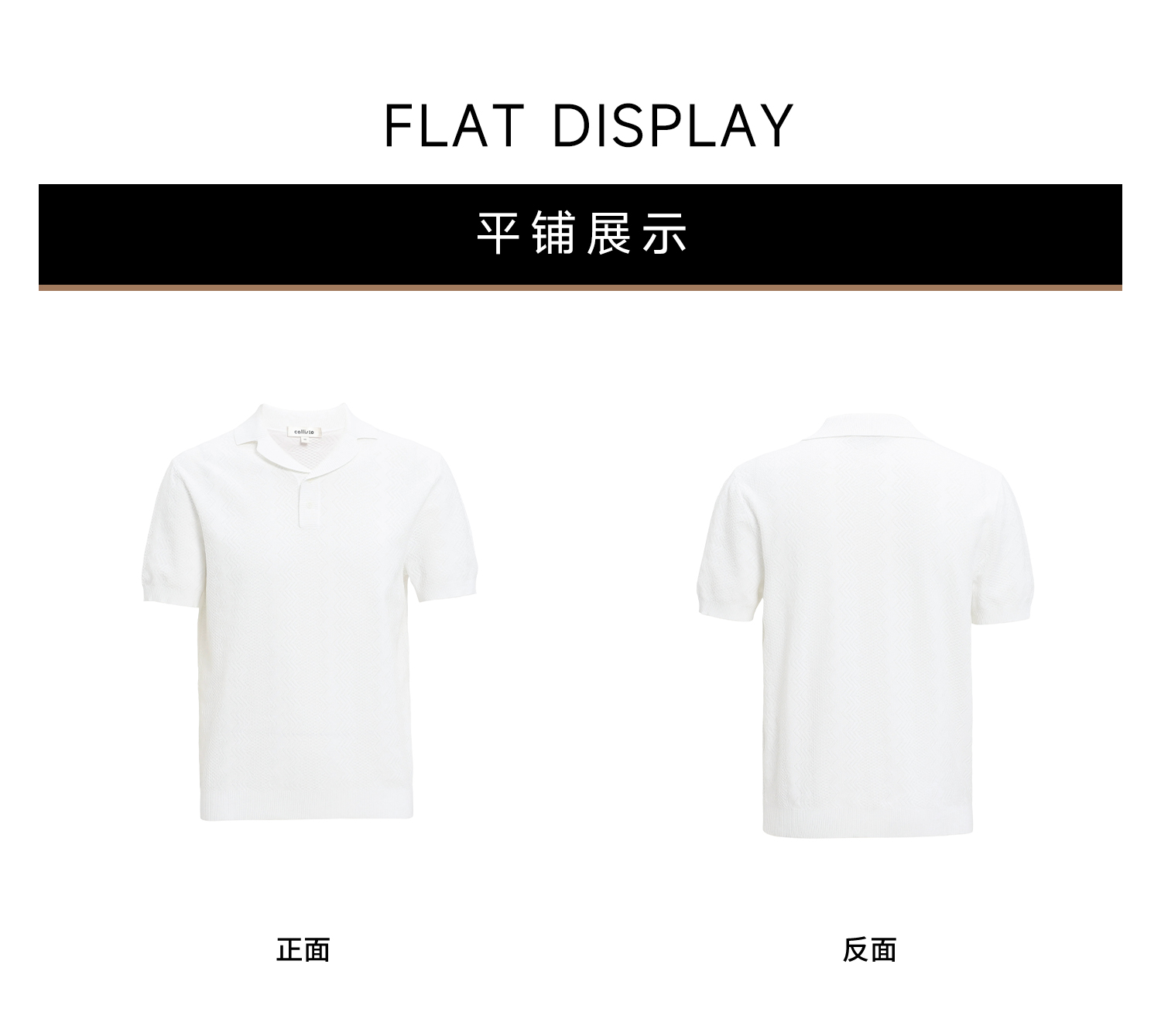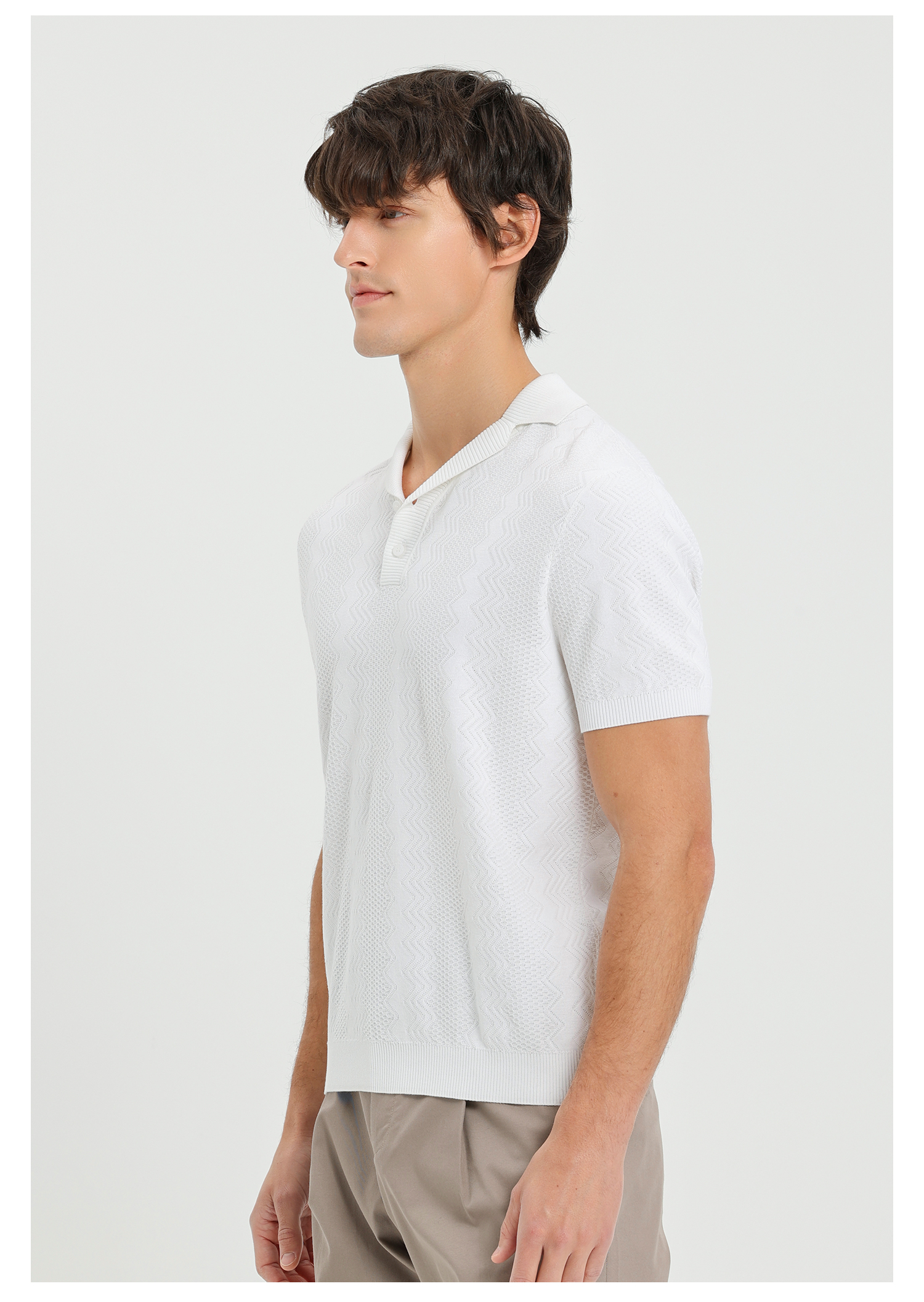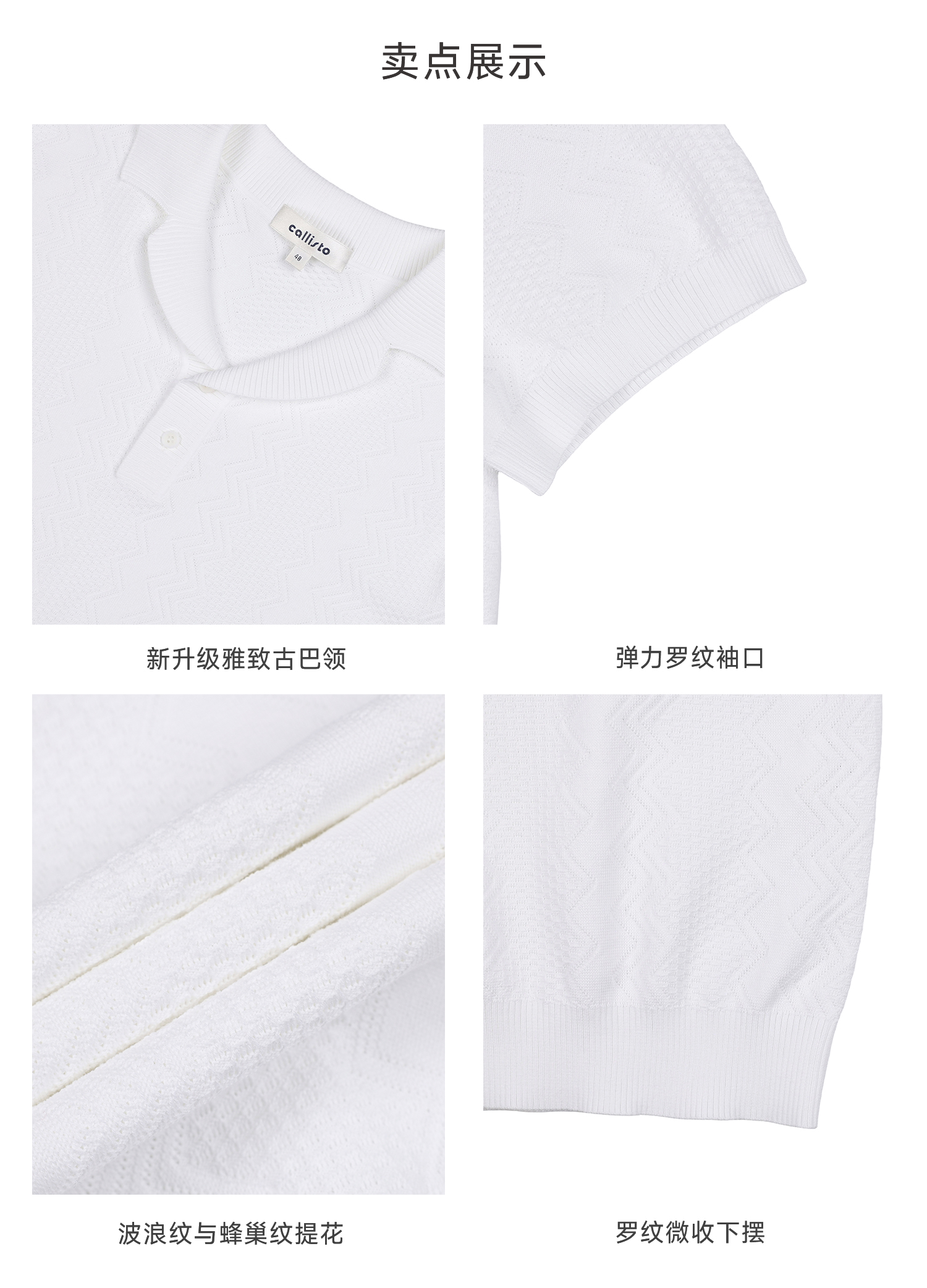 callisto白色古巴领波浪蜂巢纹棉混纺T恤