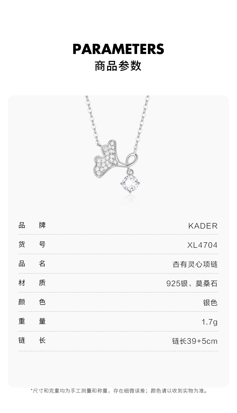 卡蒂罗/KADER 三生有杏系列 杏有灵心项链 925银莫桑石新中式国风设计可调节锁骨链 闪耀吸睛好运款配饰 送女生