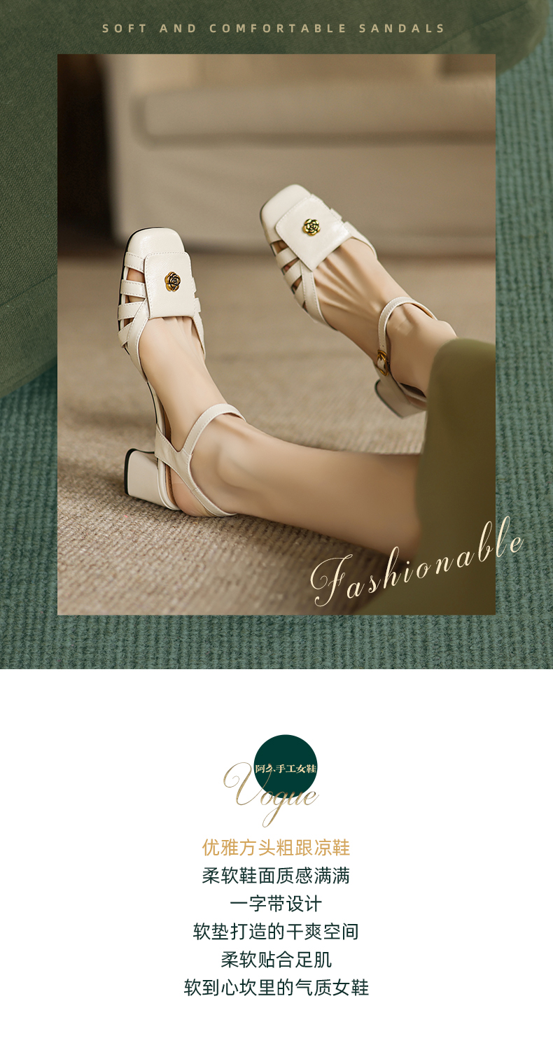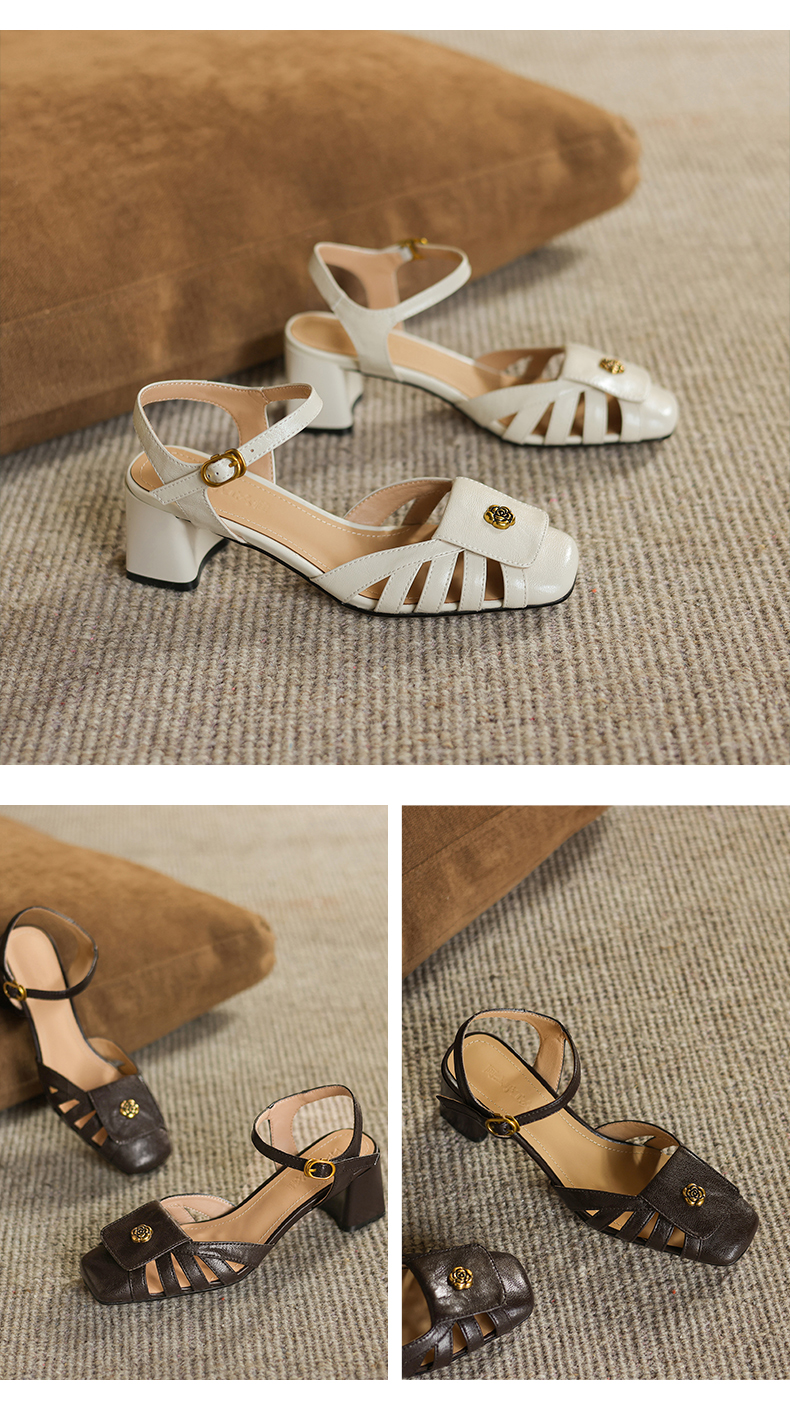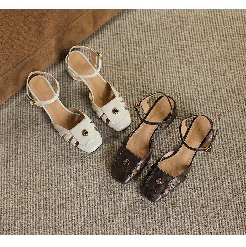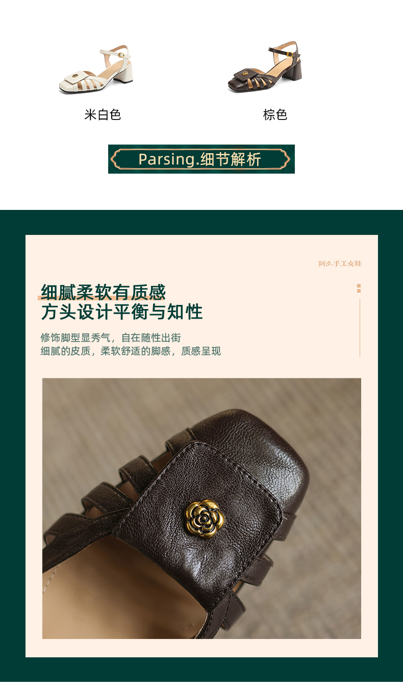阿么手工女鞋罗马凉鞋女夏外穿配裙子高级感山茶花镂空鞋子5.5CM
