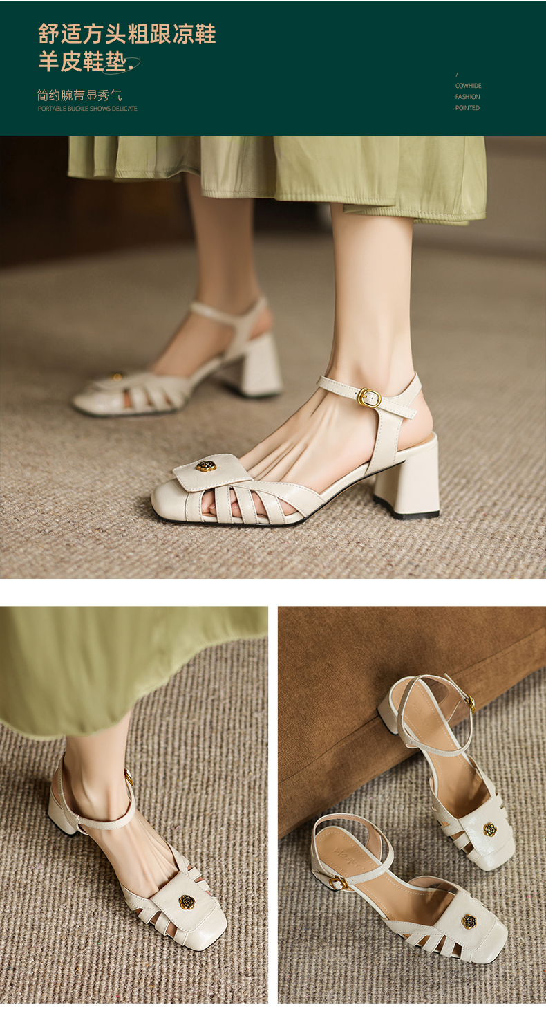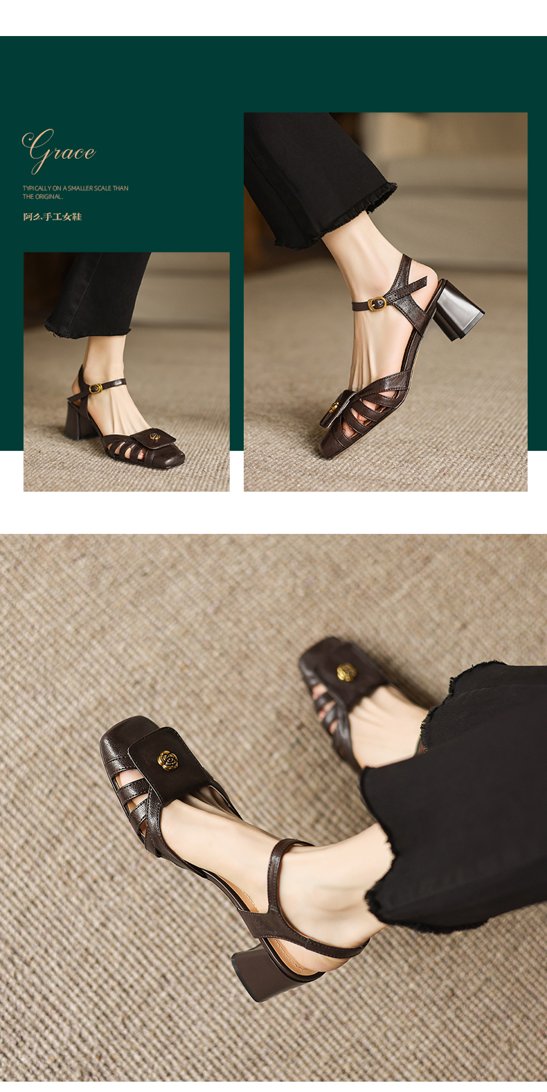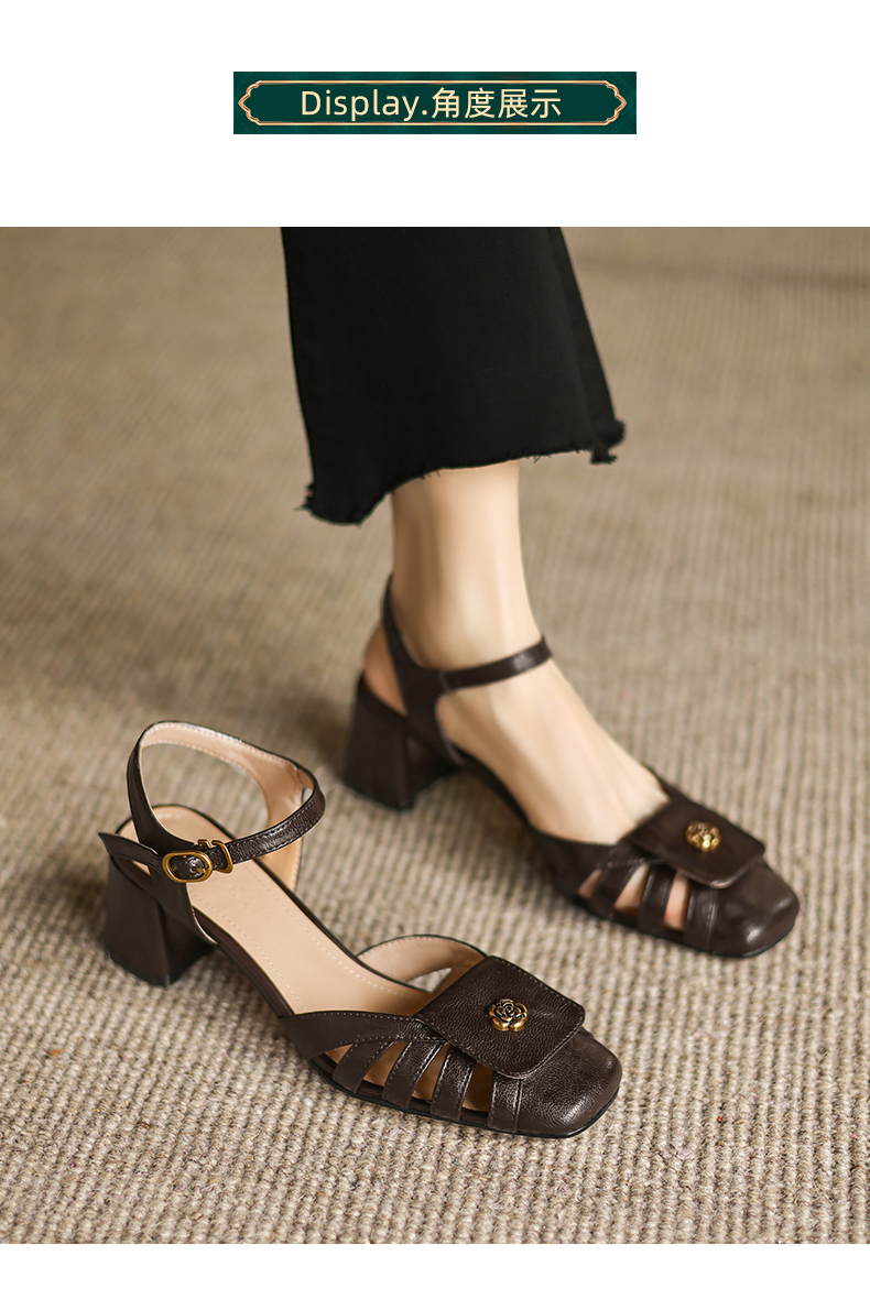 阿么手工女鞋罗马凉鞋女夏外穿配裙子高级感山茶花镂空鞋子5.5CM