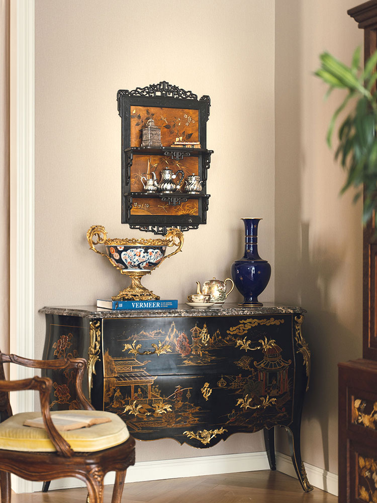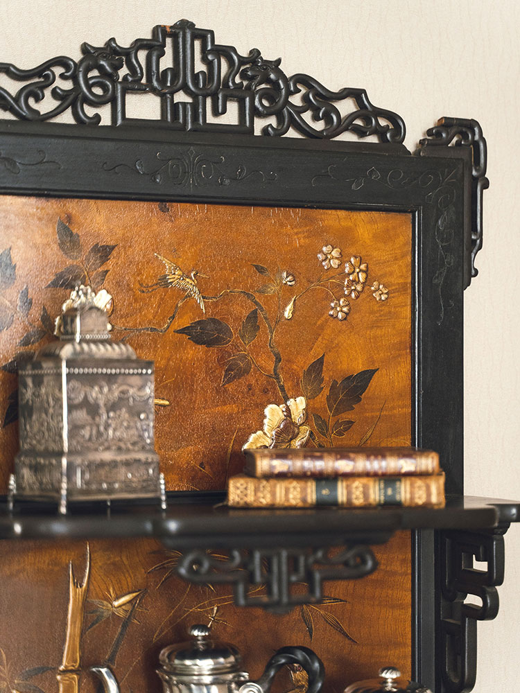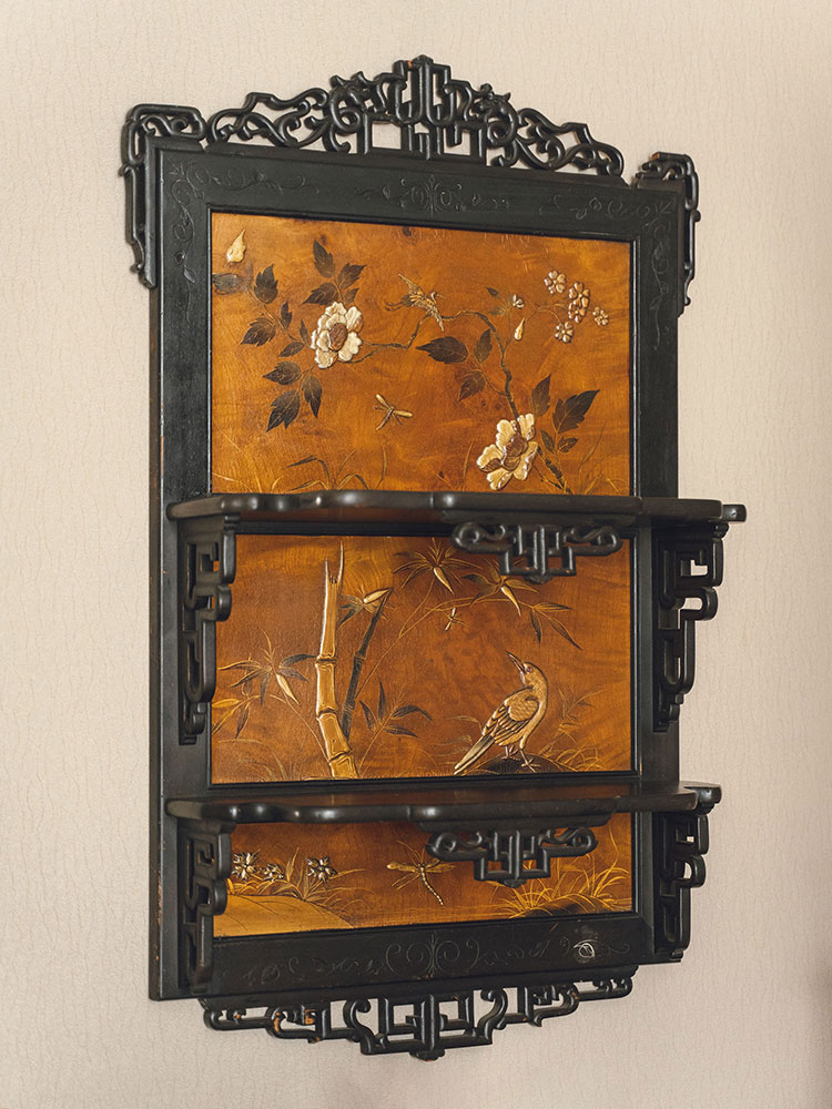20世纪初法国出品东方风格传统花鸟主题漆绘祥纹镂雕壁挂