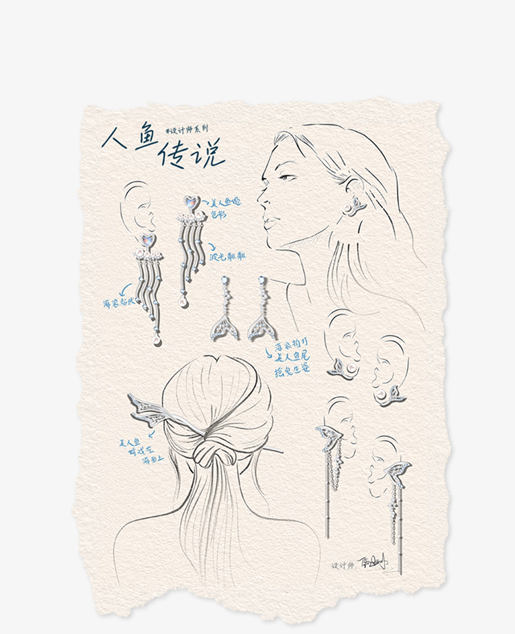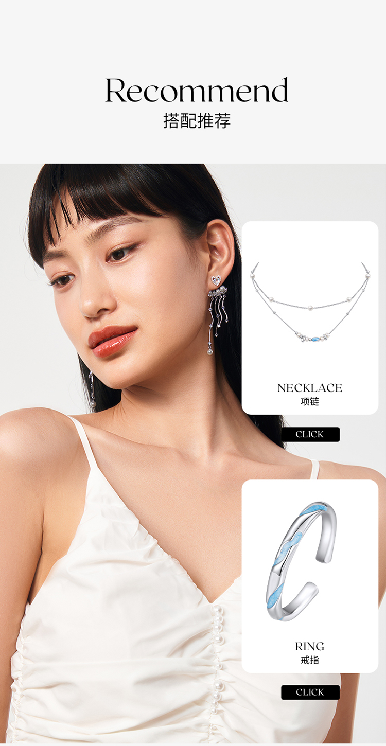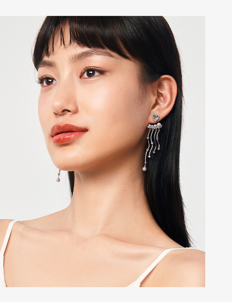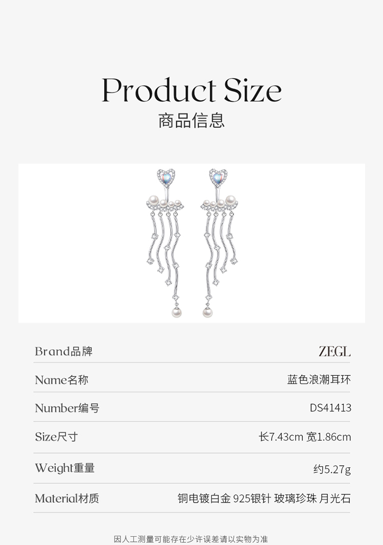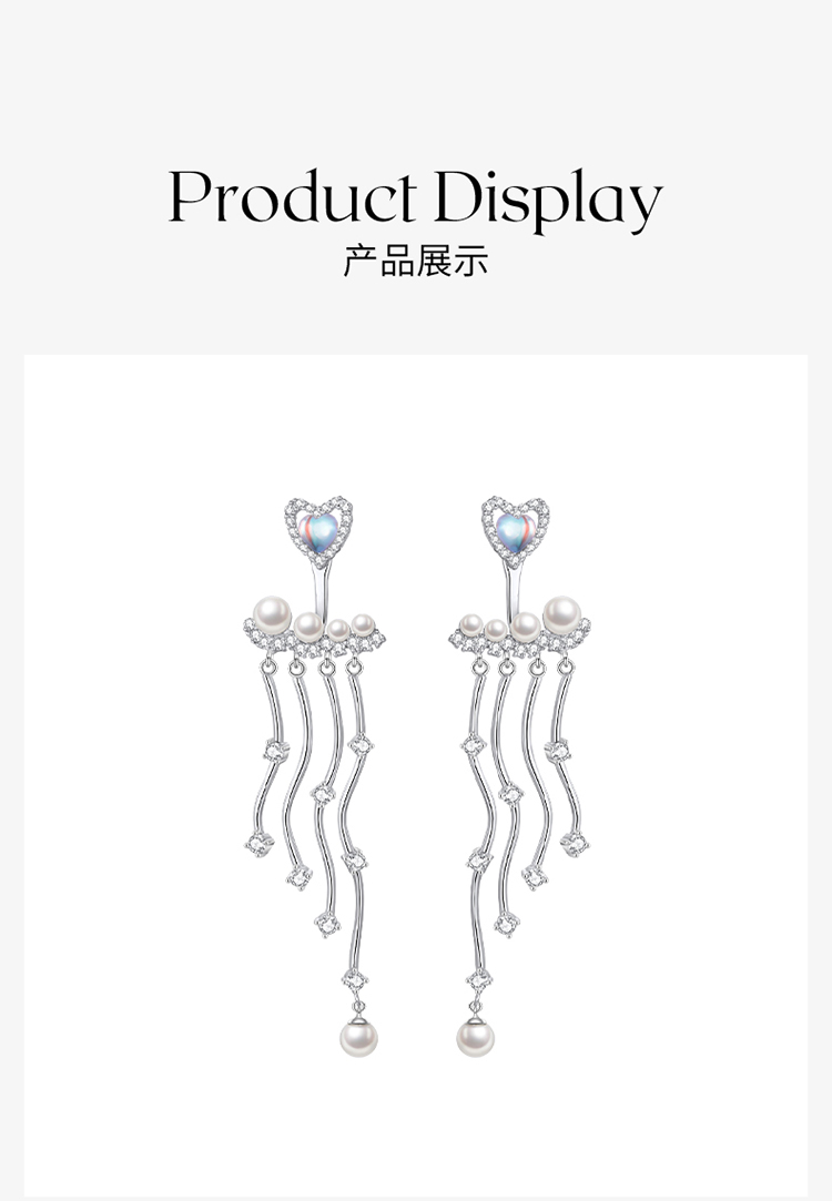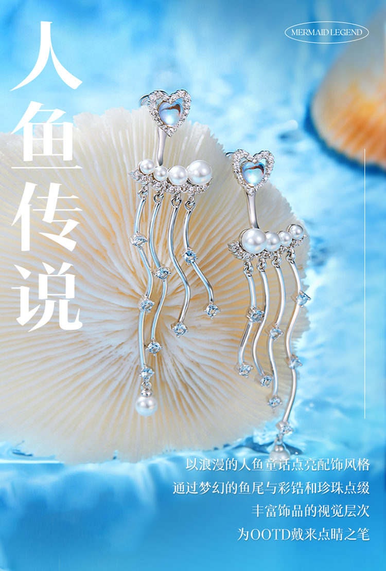 ZEGL设计师人鱼传说系列爱心人造珍珠耳环女月光石耳钉银针耳饰品