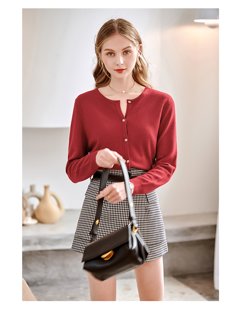 欧芮儿复古2026年新款夏季灰色圆领收腰镂空设计通勤套头毛针织衫