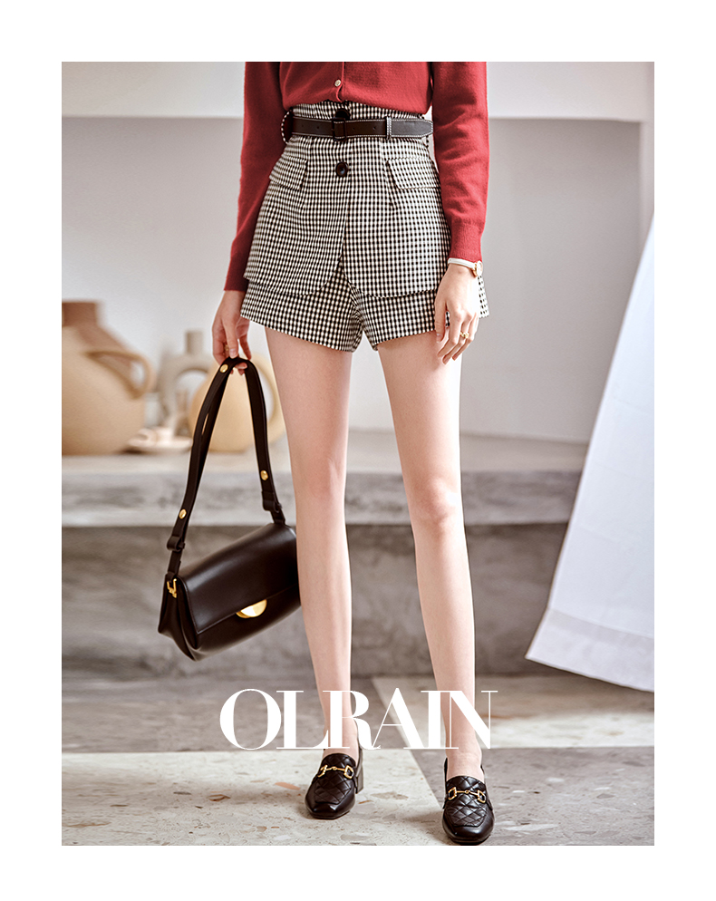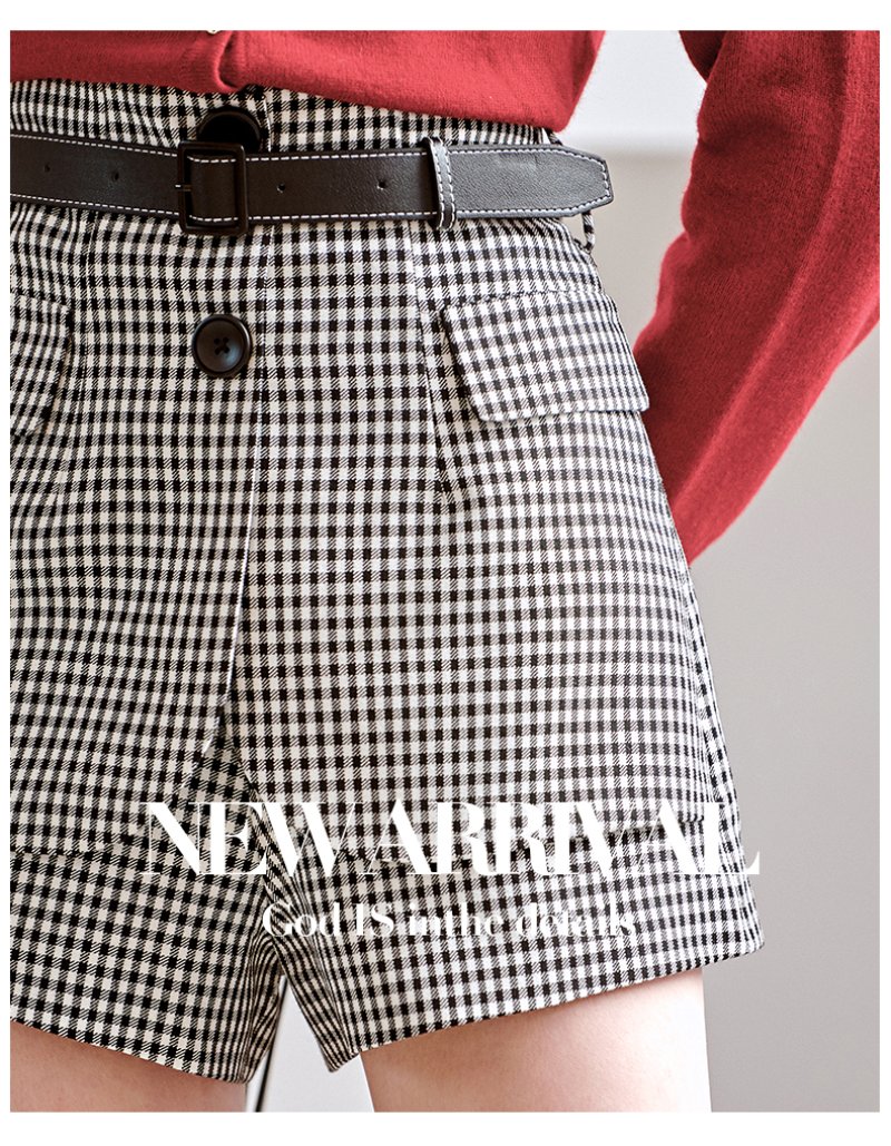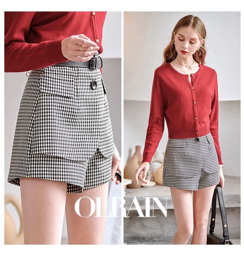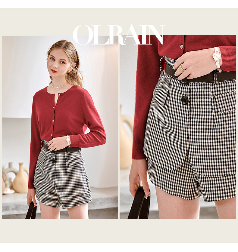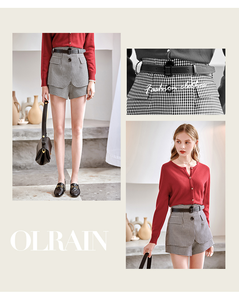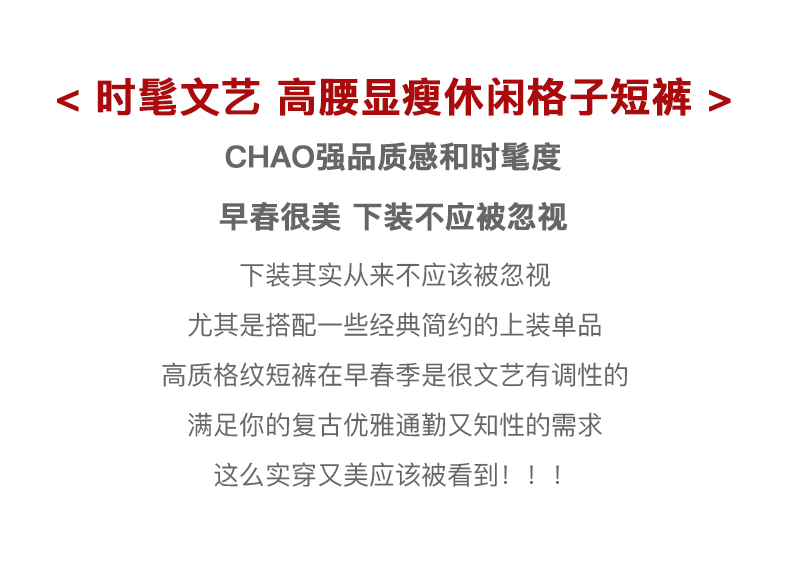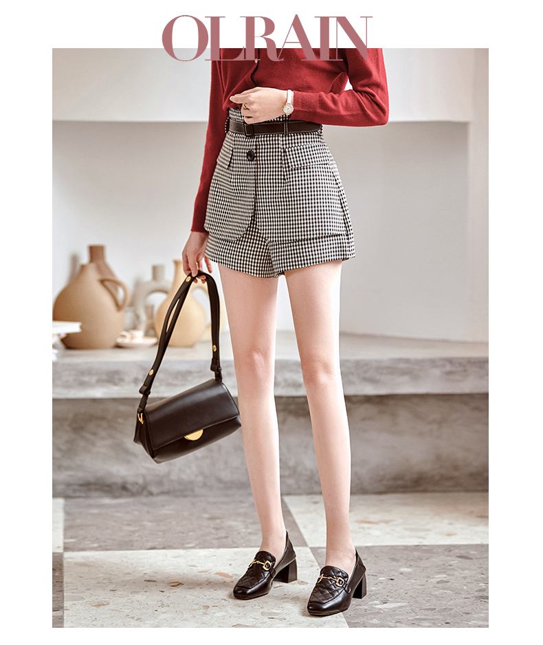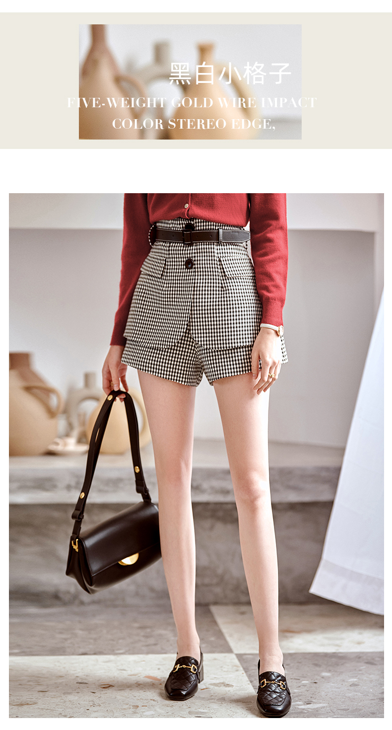 欧芮儿格子休闲裤女春季新款高腰显瘦简约百搭复古经典洋气短裤子