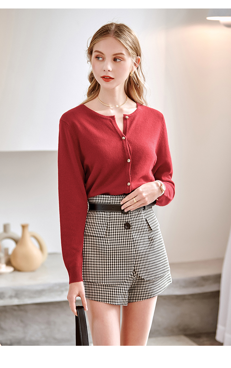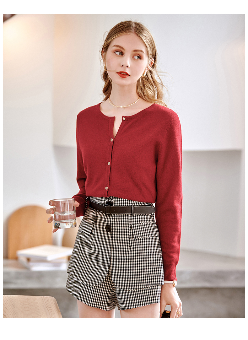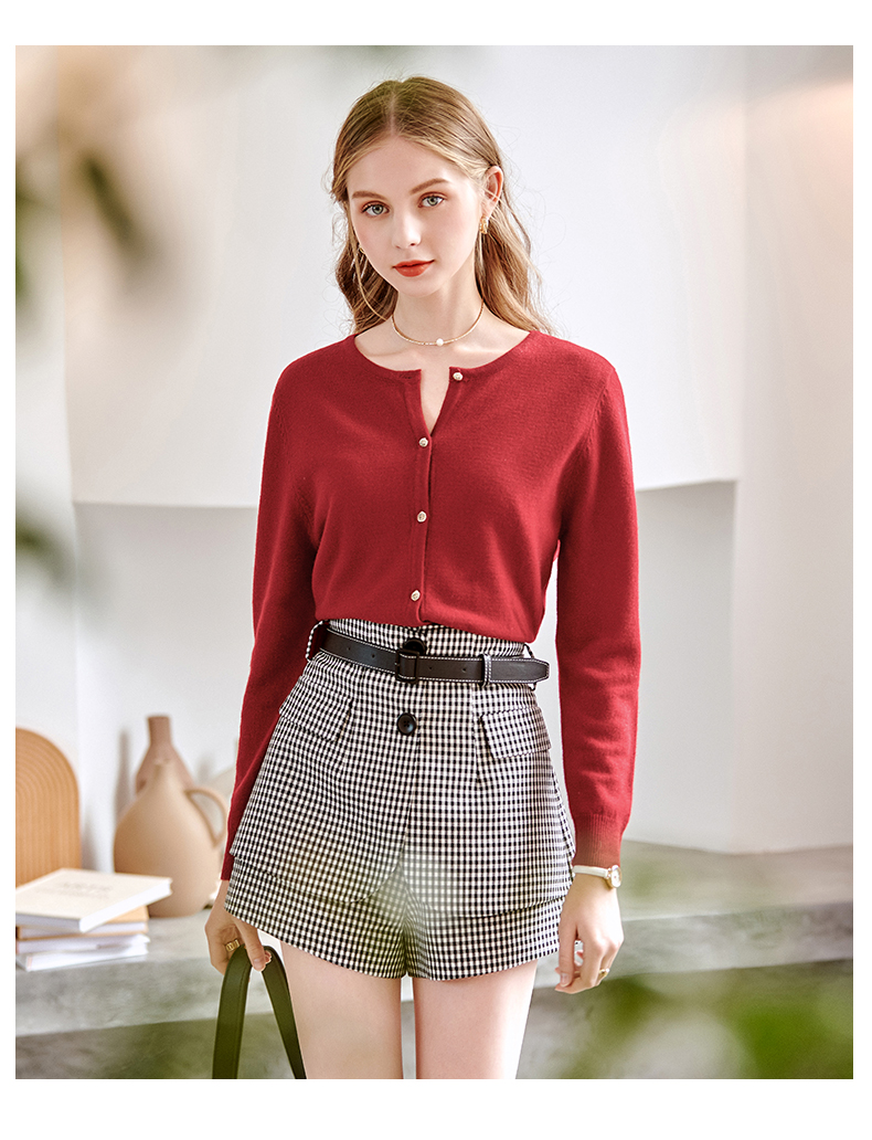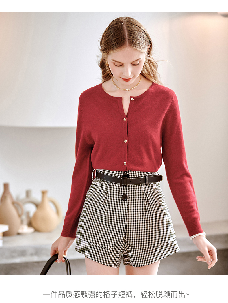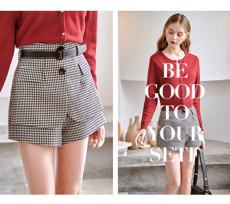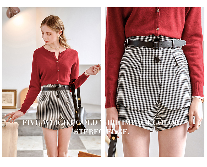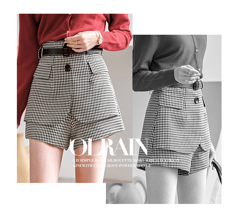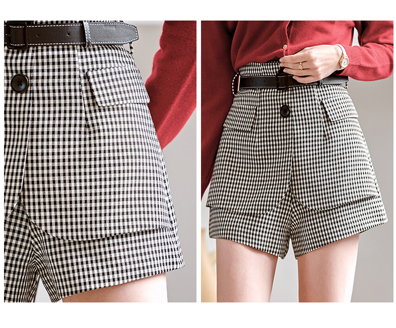 欧芮儿格子休闲裤女春季新款高腰显瘦简约百搭复古经典洋气短裤子
