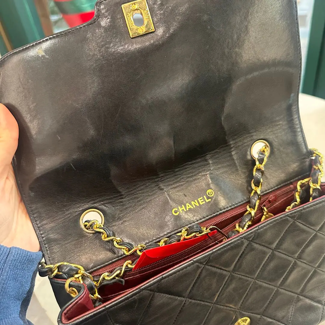 【商品详情】正品二手 Chanel 中古 羊皮 戴妃包💼95新 25*15 有镭射 配件:卡。翻盖内里处正常使用感。越用越有味道