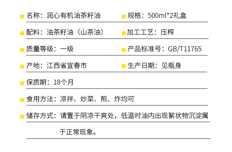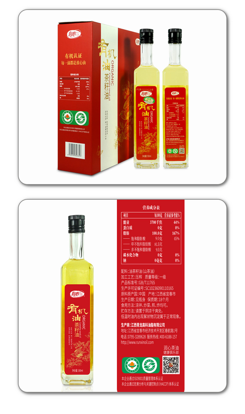 润心有机系列山茶油 (红白礼盒)500ml*2