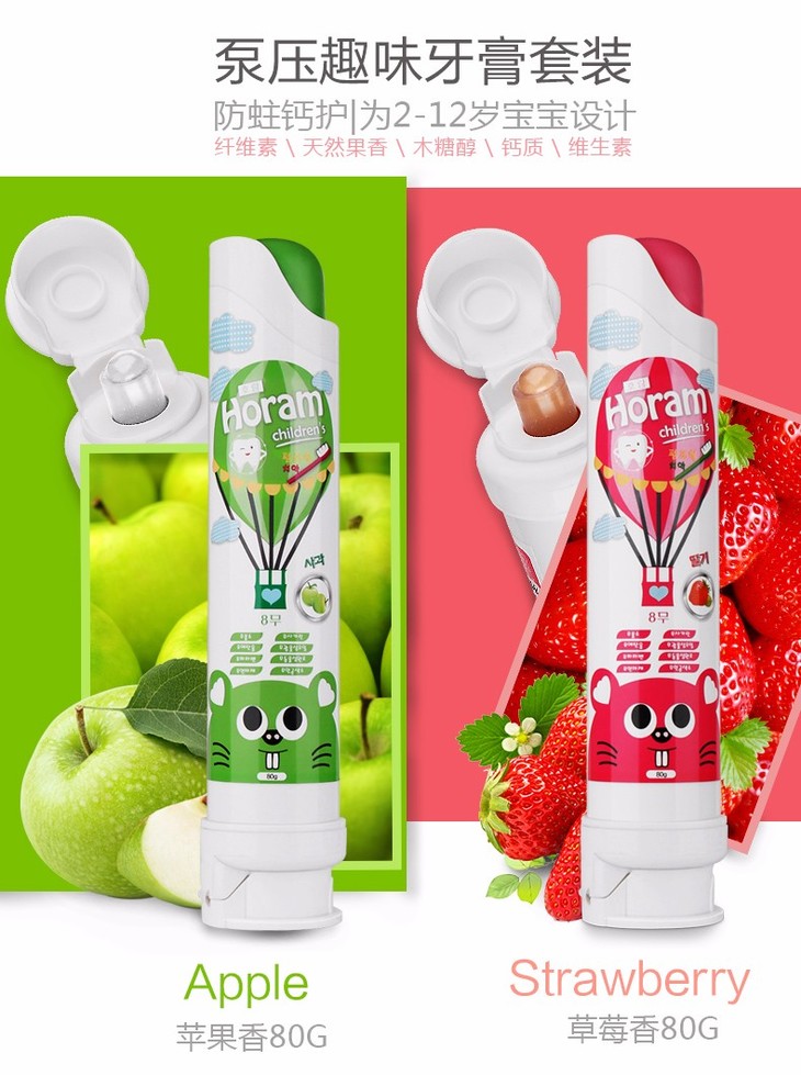 韩国皓蓝泵乐儿童牙膏(苹果味)80g/2支每组JPY带授权招加盟代理