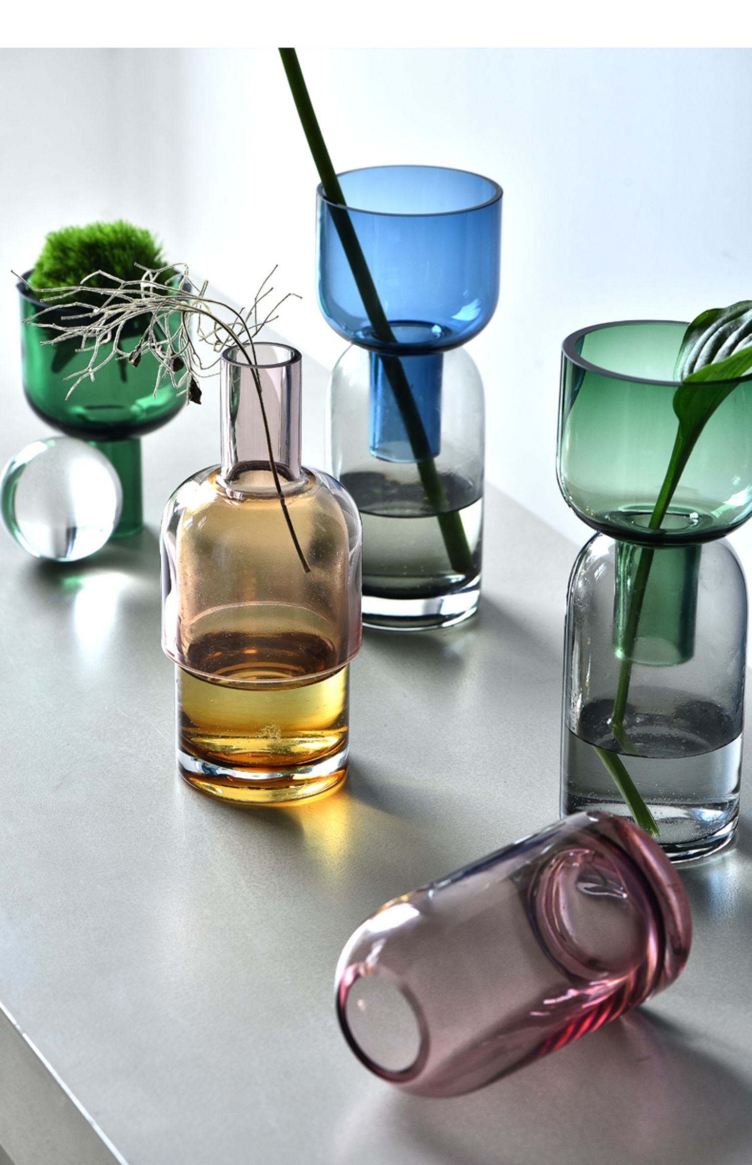 多巴胺色系ins餐桌摆件居家软装酒店样板间装饰哑光单耳玻璃花瓶
