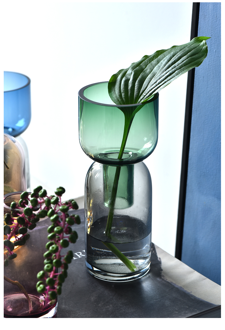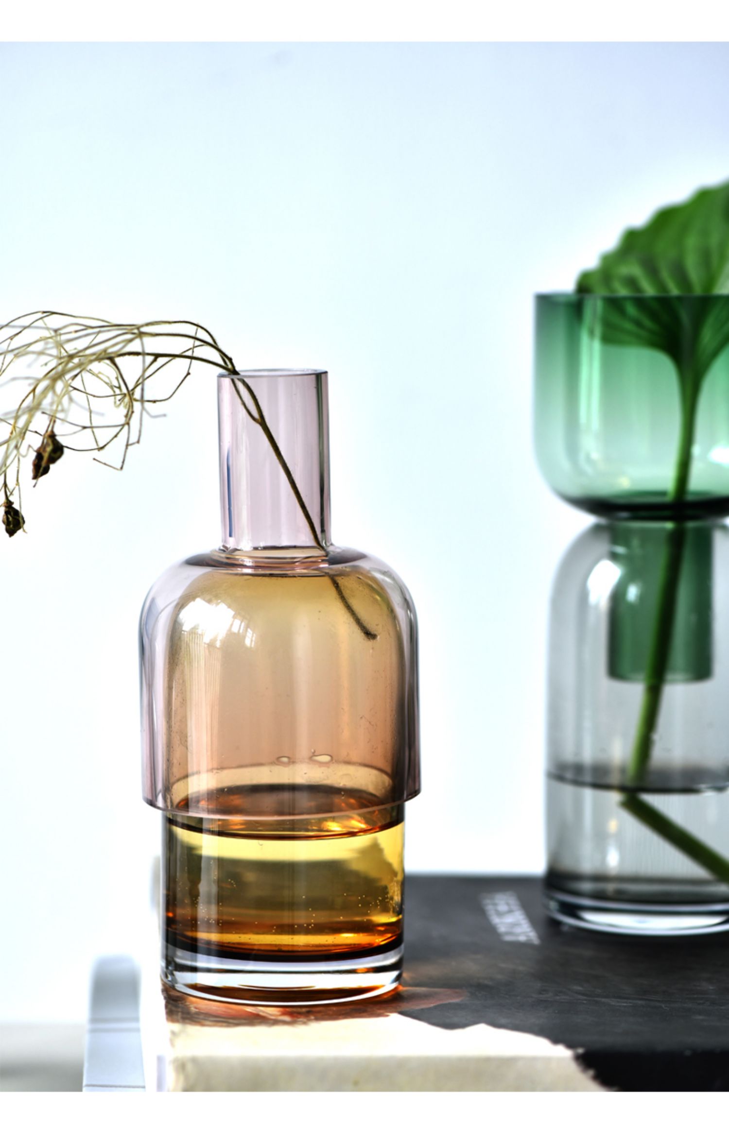法式中古敞口不规则渐变玻璃插花瓶摆件家居客厅餐桌玄关创意装饰