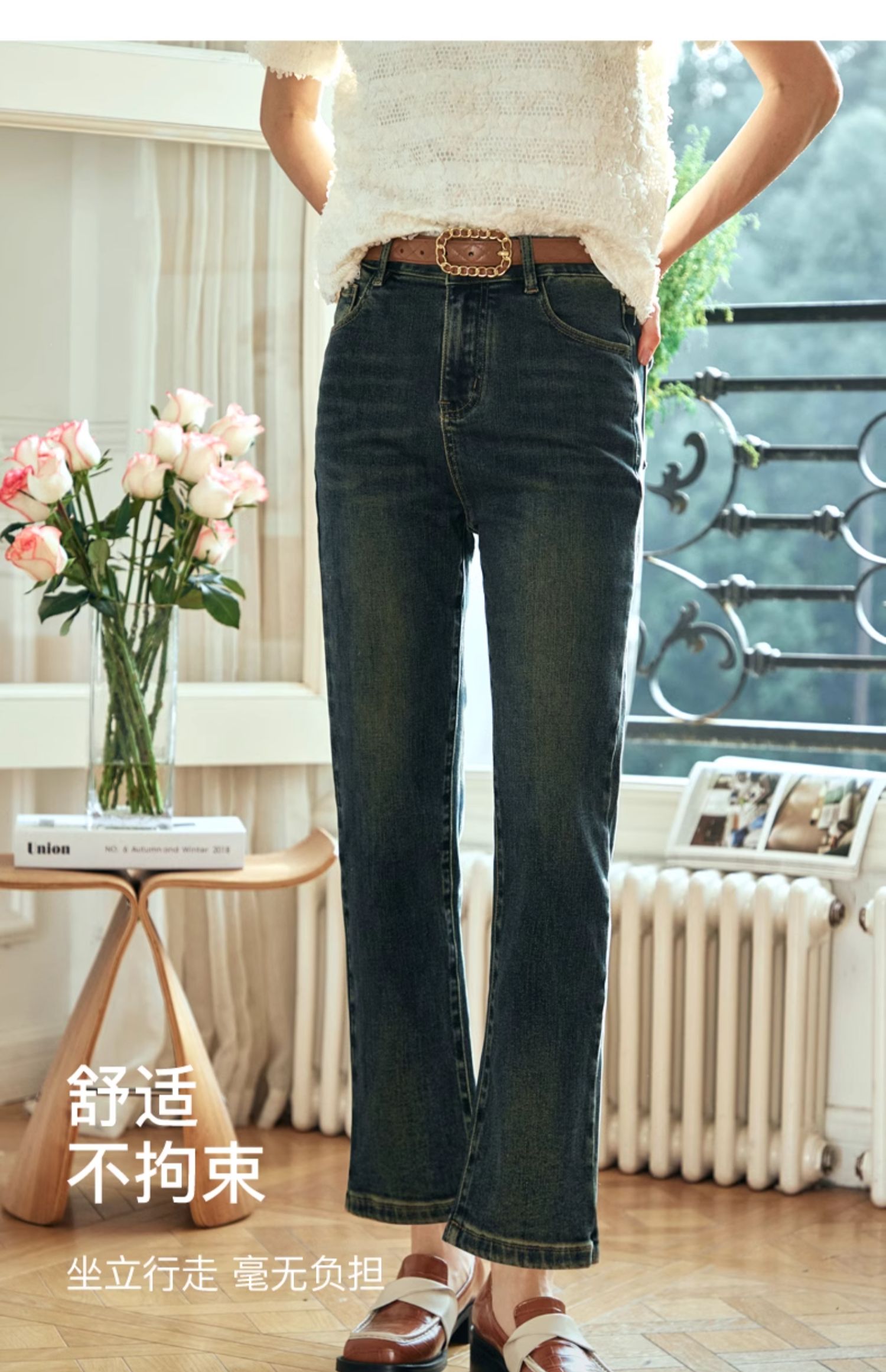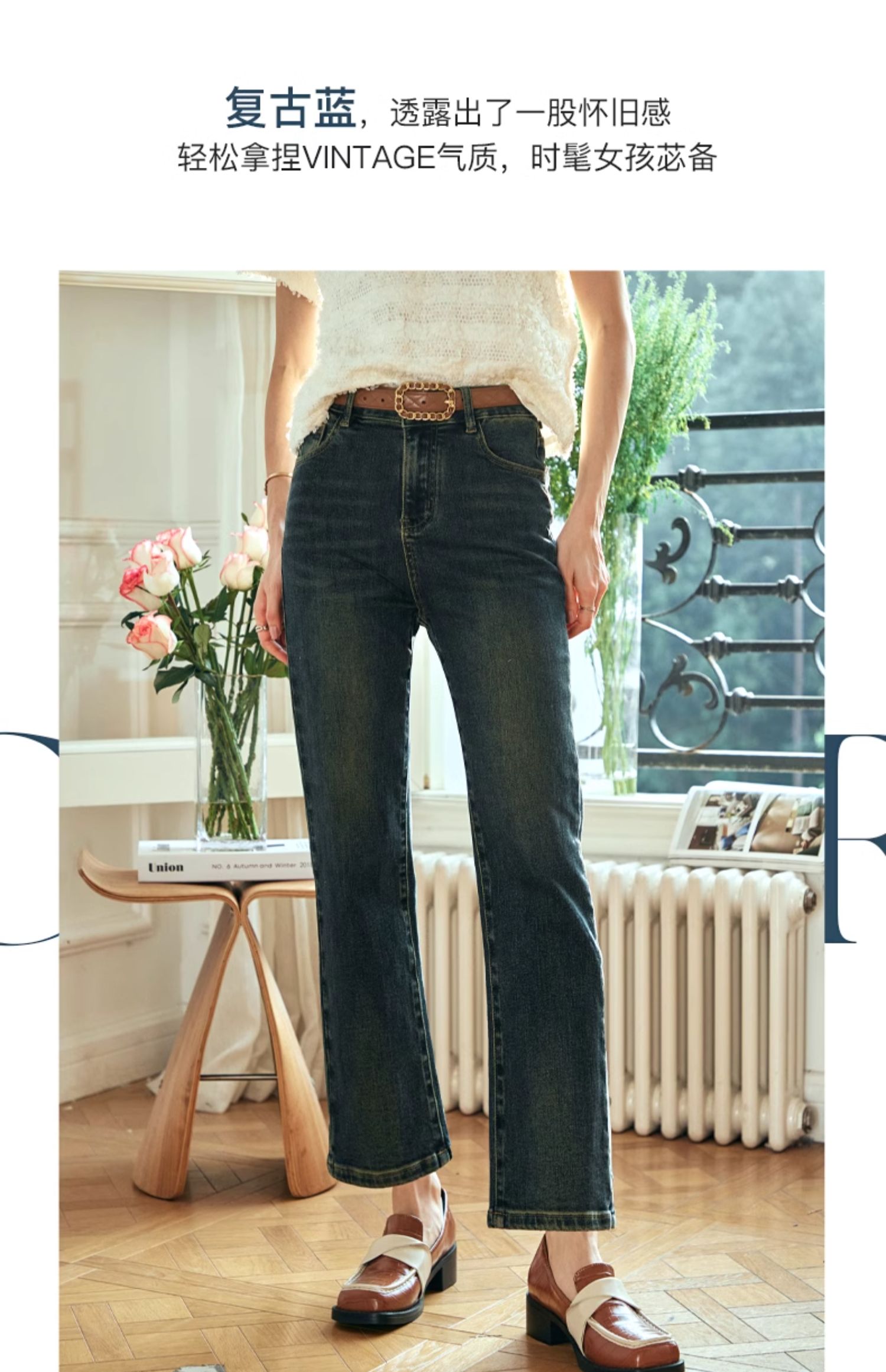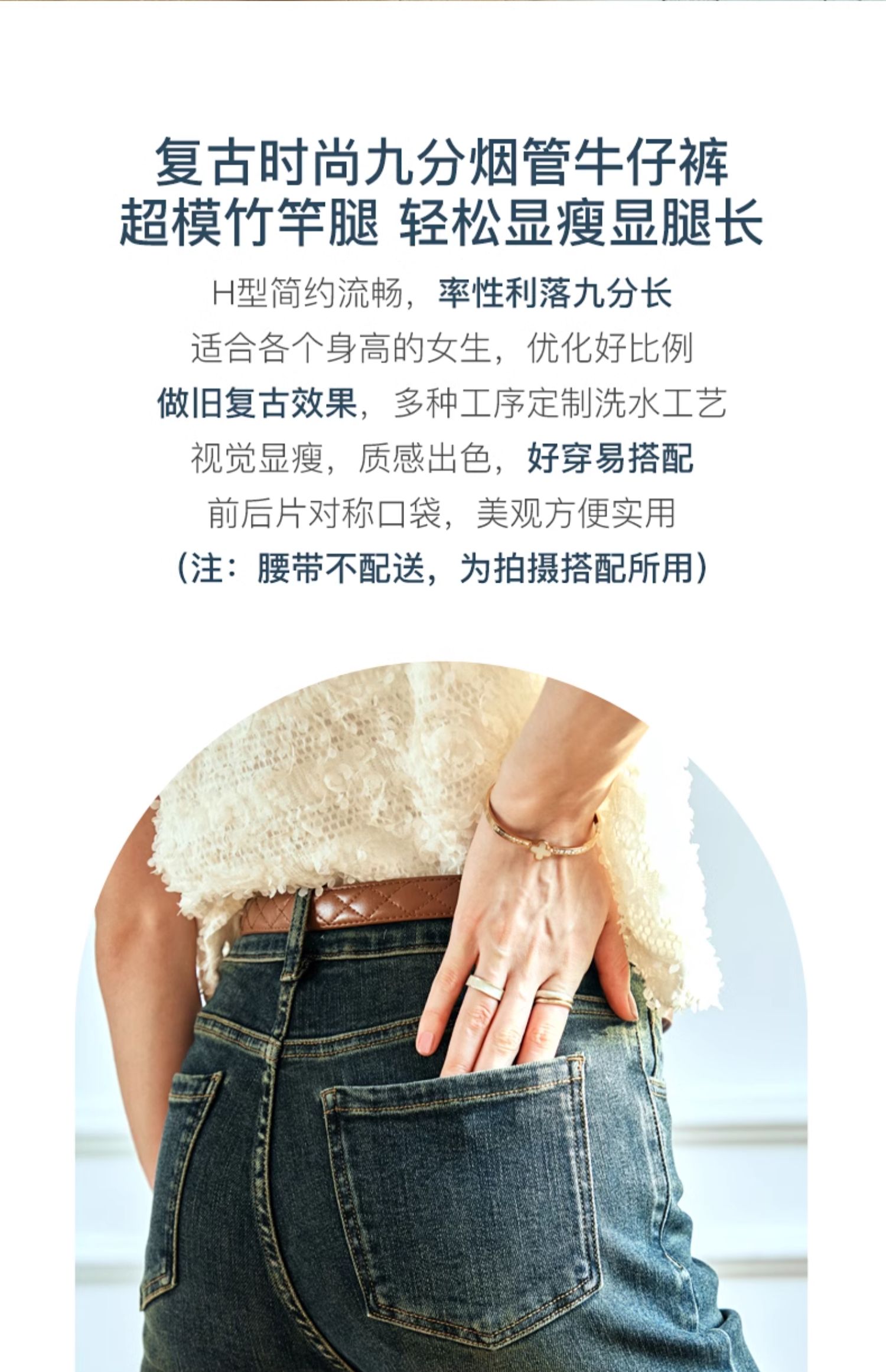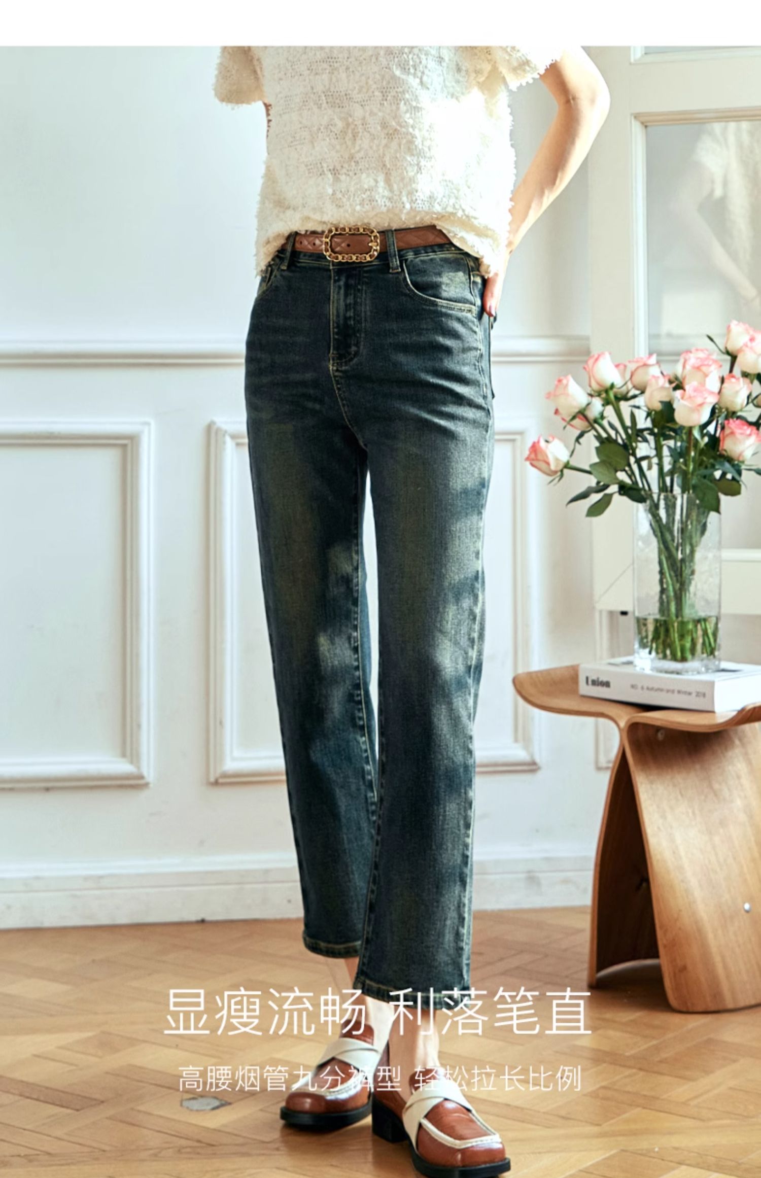 OLrain欧芮儿复古蓝牛仔裤女早春2024年新款时尚宽松九分烟管裤