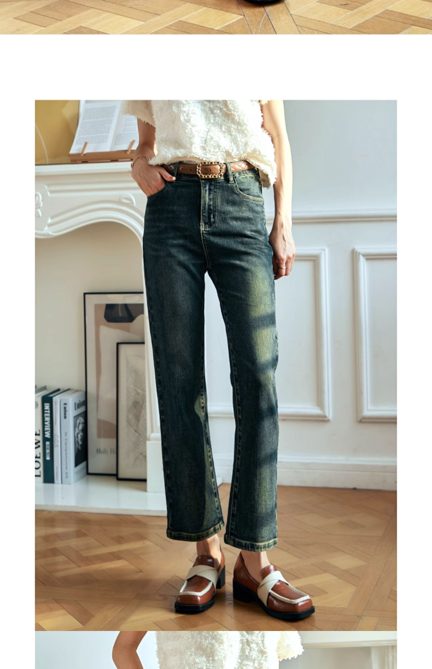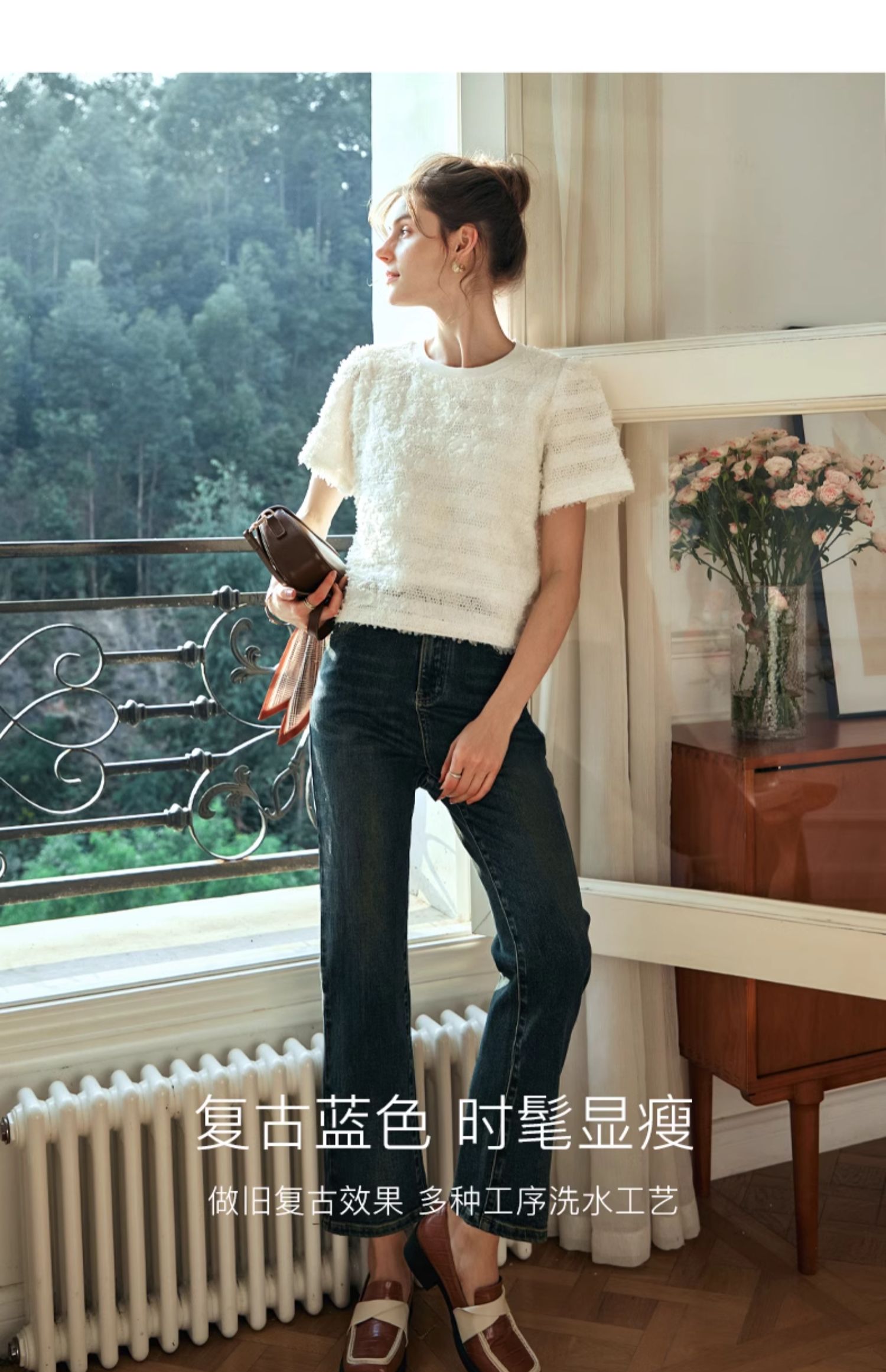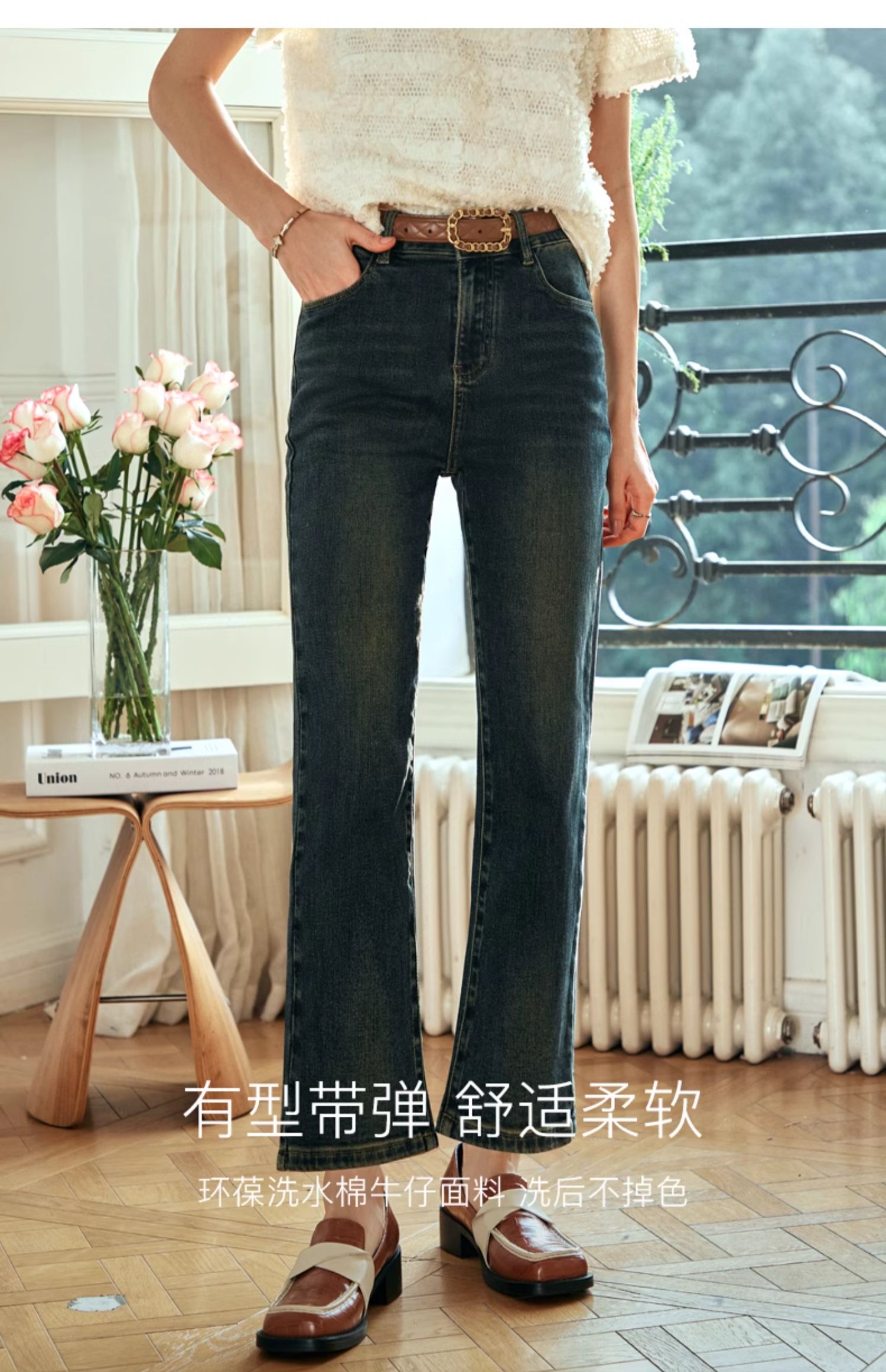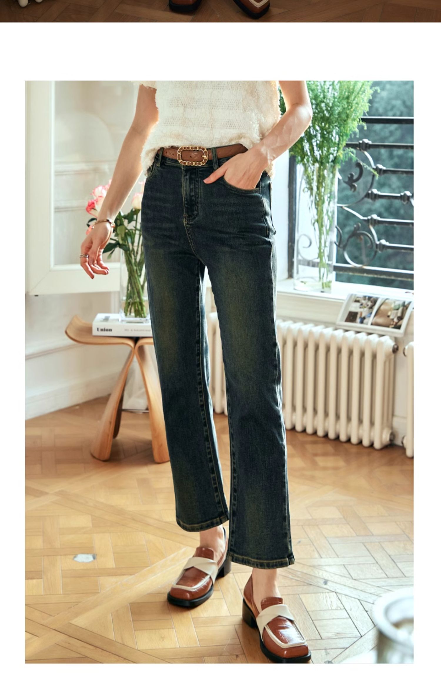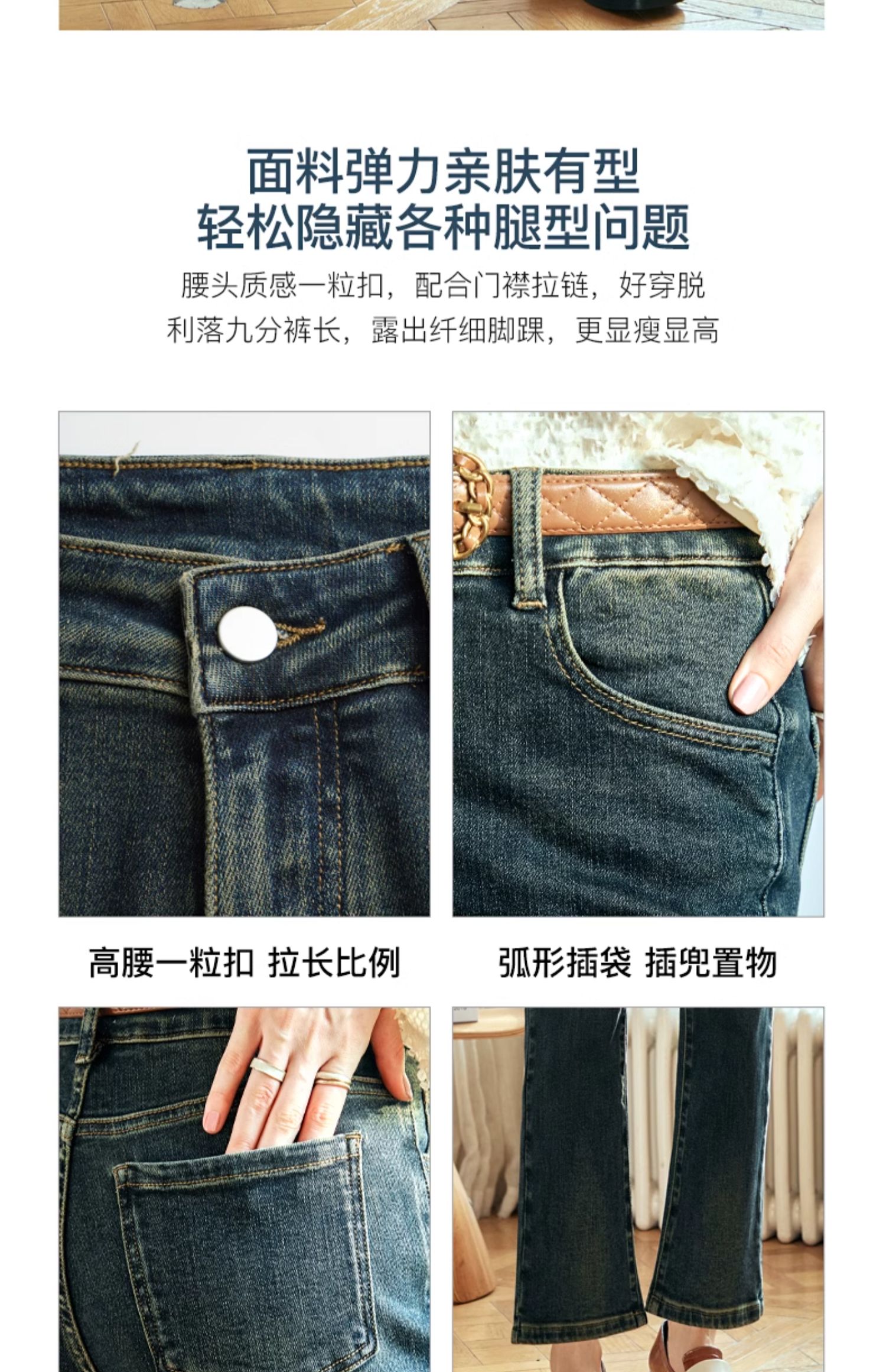 OLrain欧芮儿复古蓝牛仔裤女早春2024年新款时尚宽松九分烟管裤