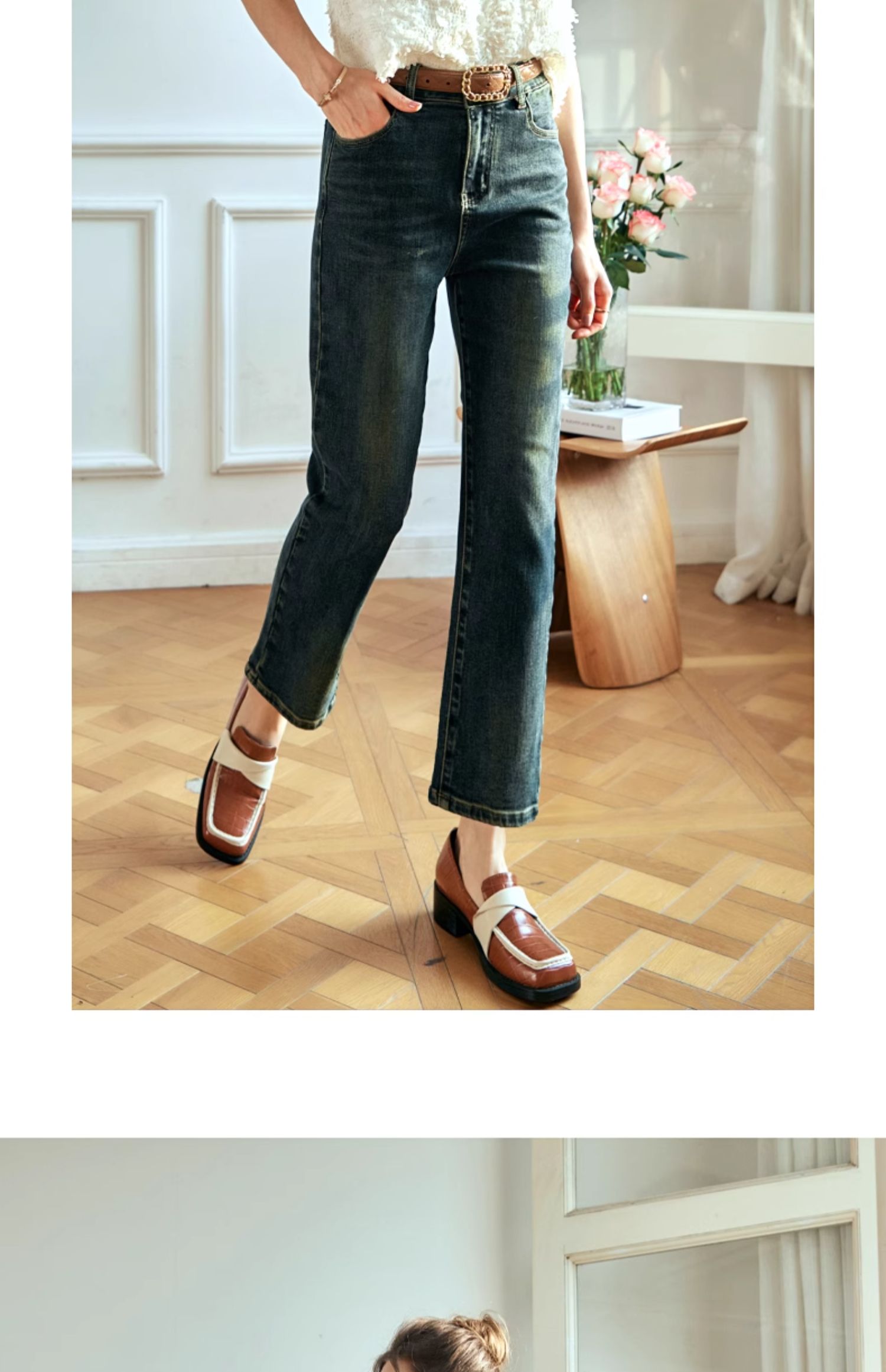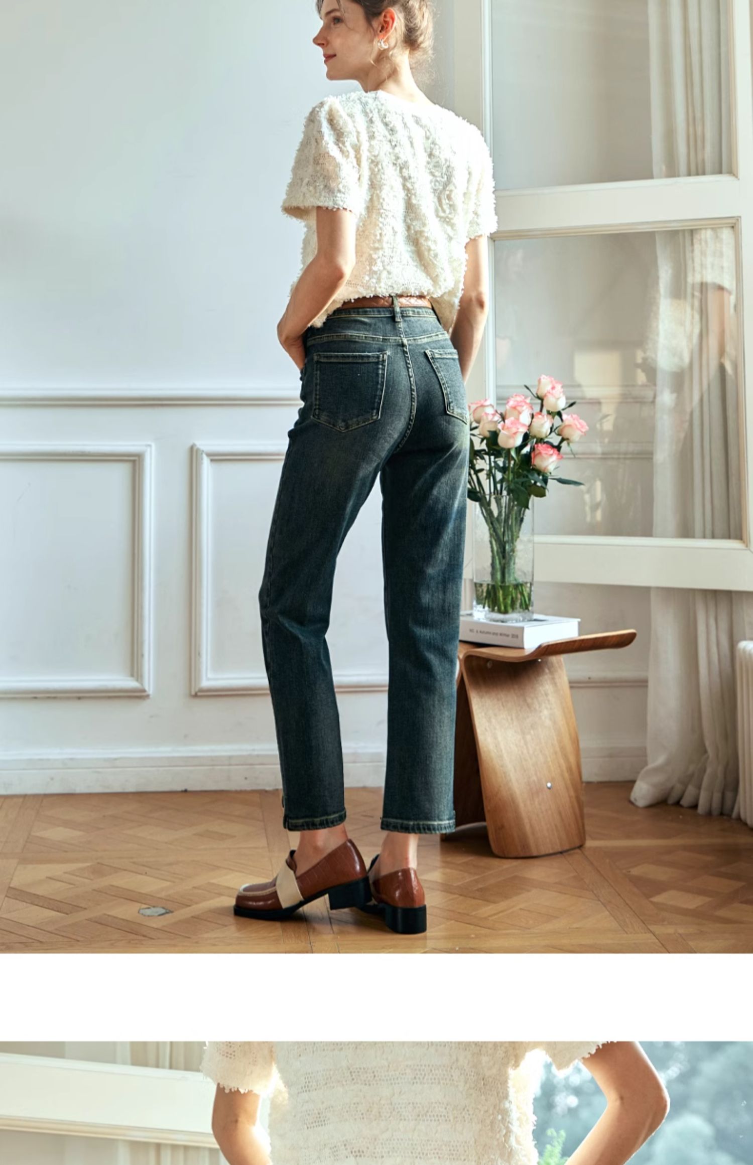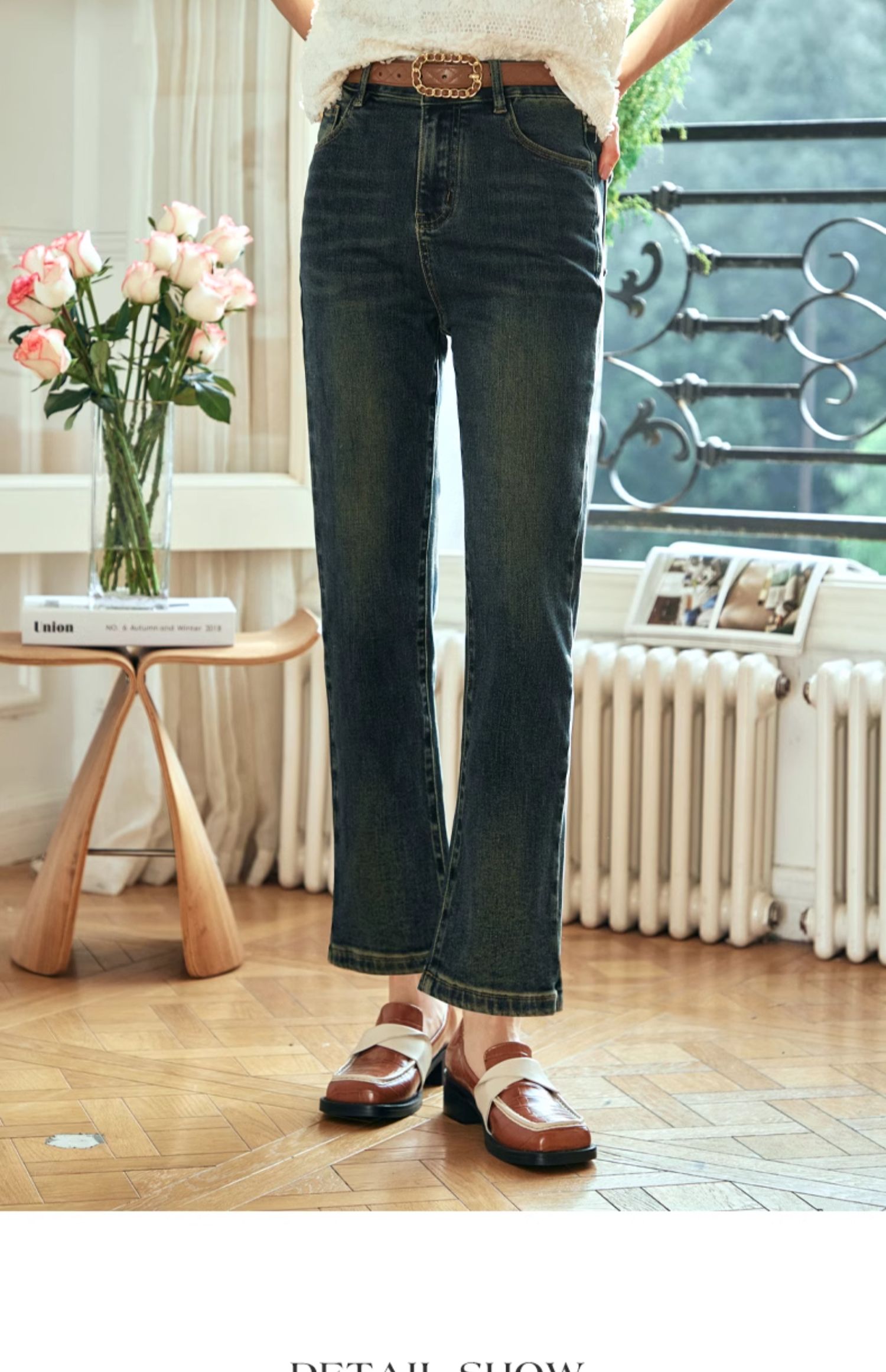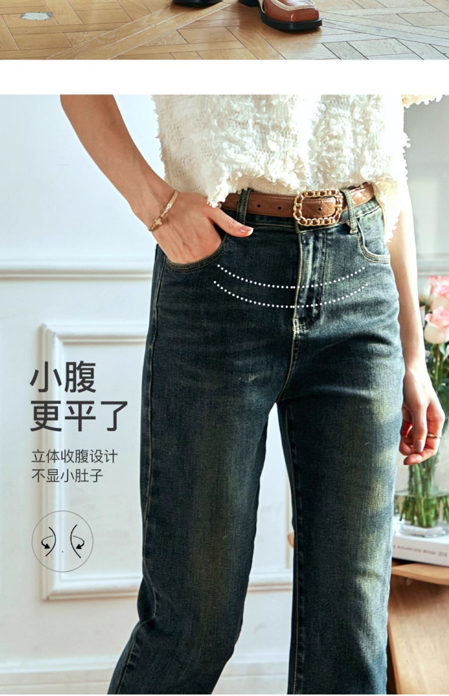 OLrain欧芮儿复古蓝牛仔裤女早春2024年新款时尚宽松九分烟管裤