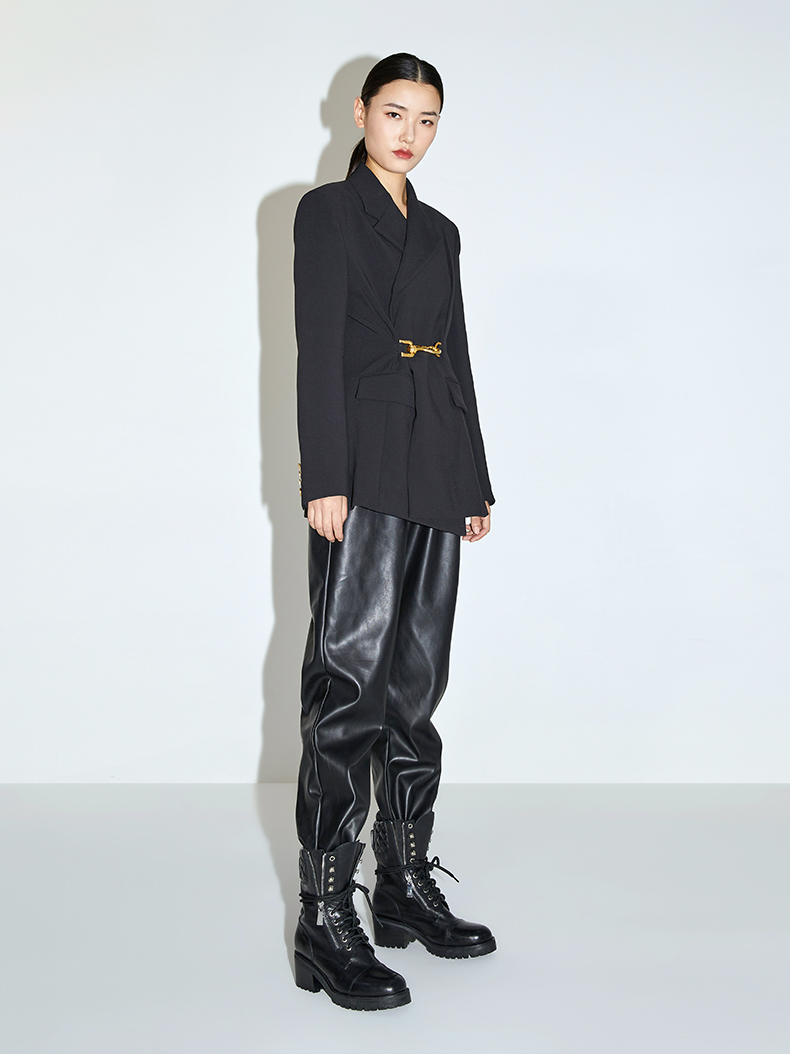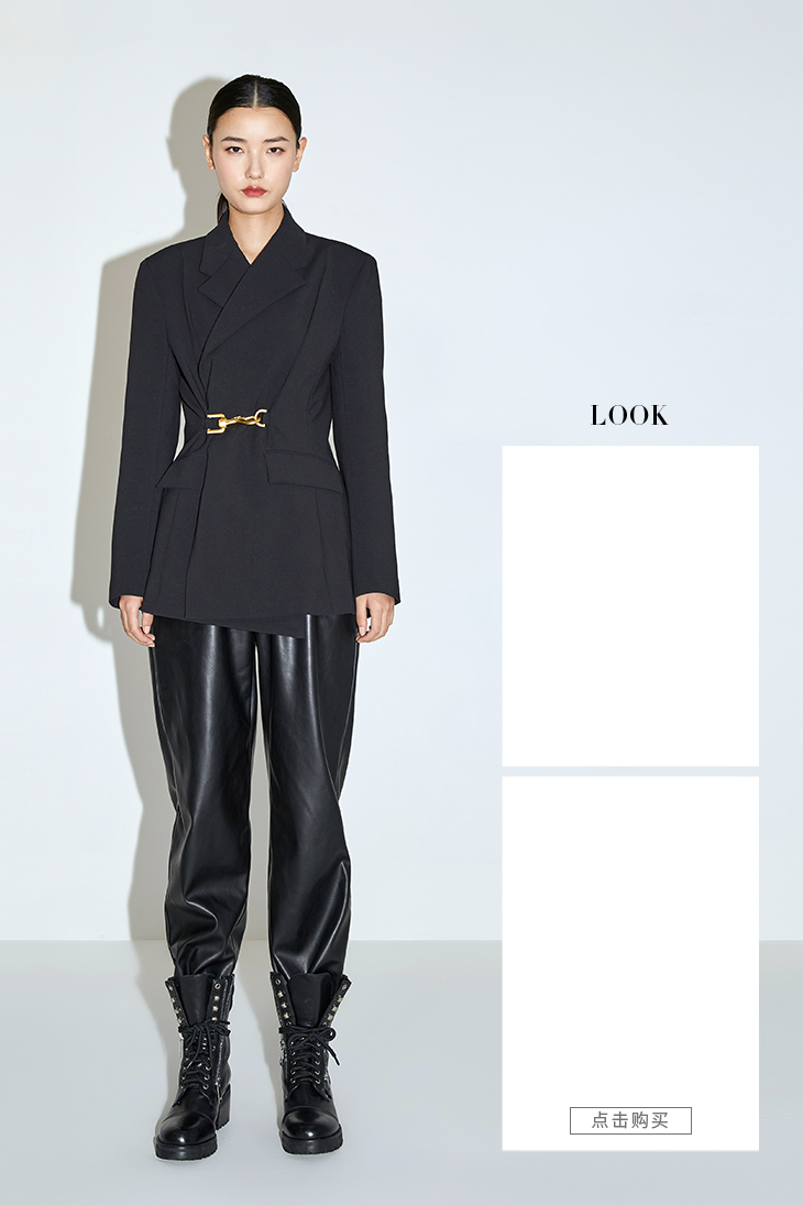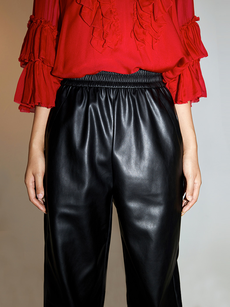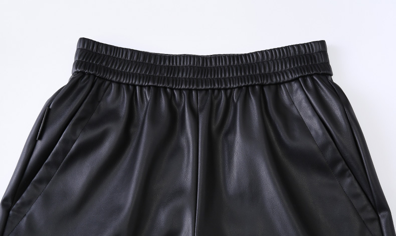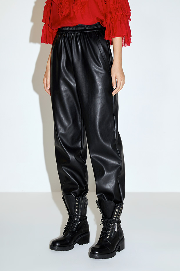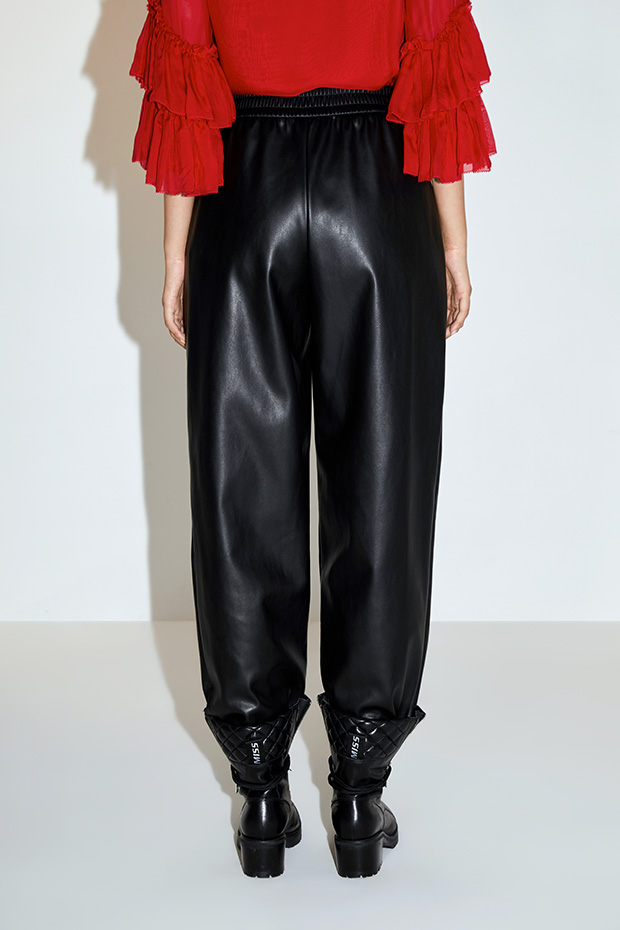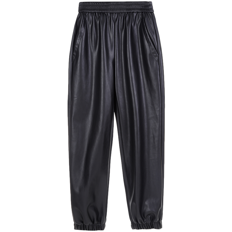 Miss Sixty2020冬季新款松紧腰黑色收脚PU仿皮长裤女604PJ7380000