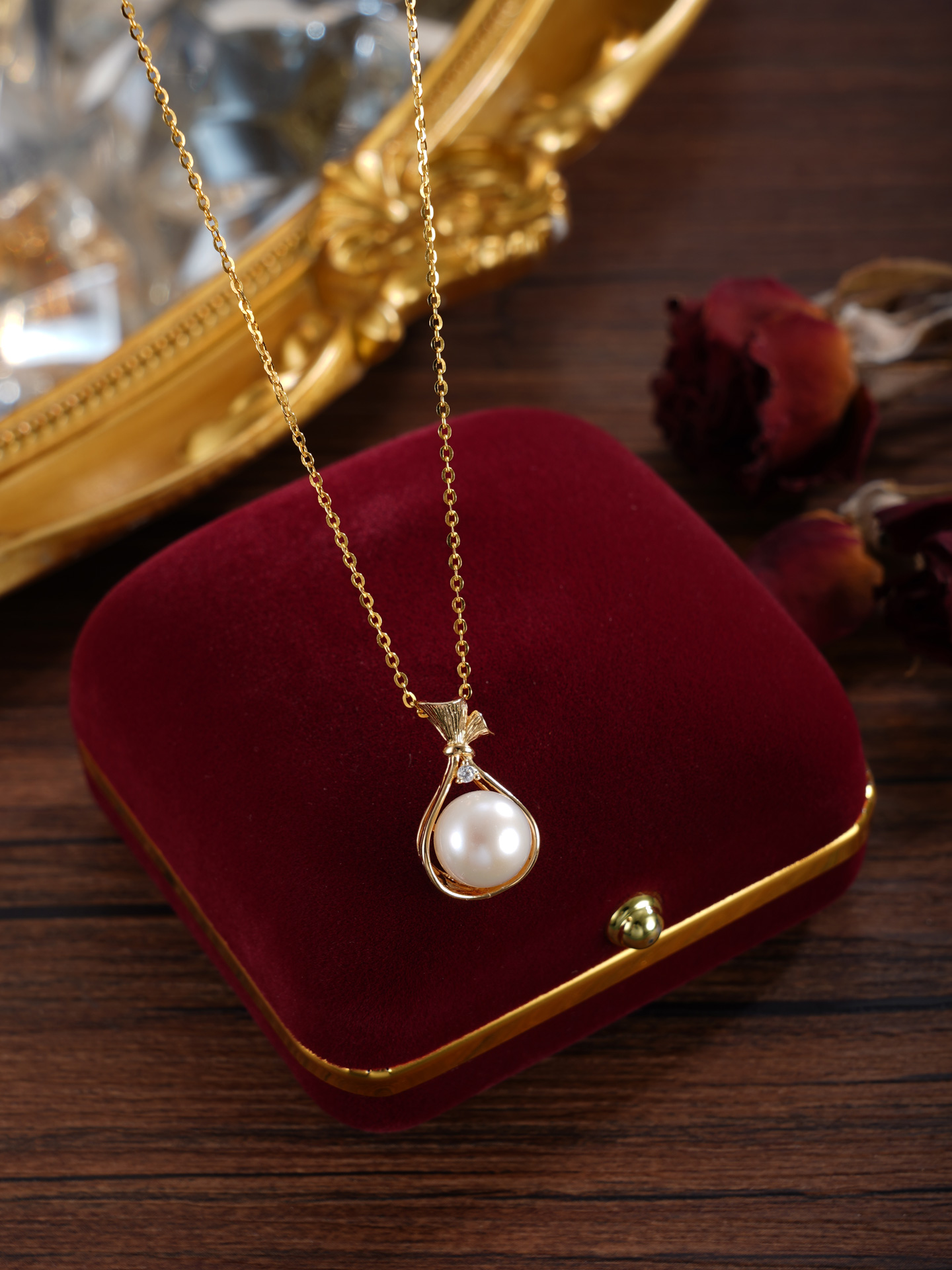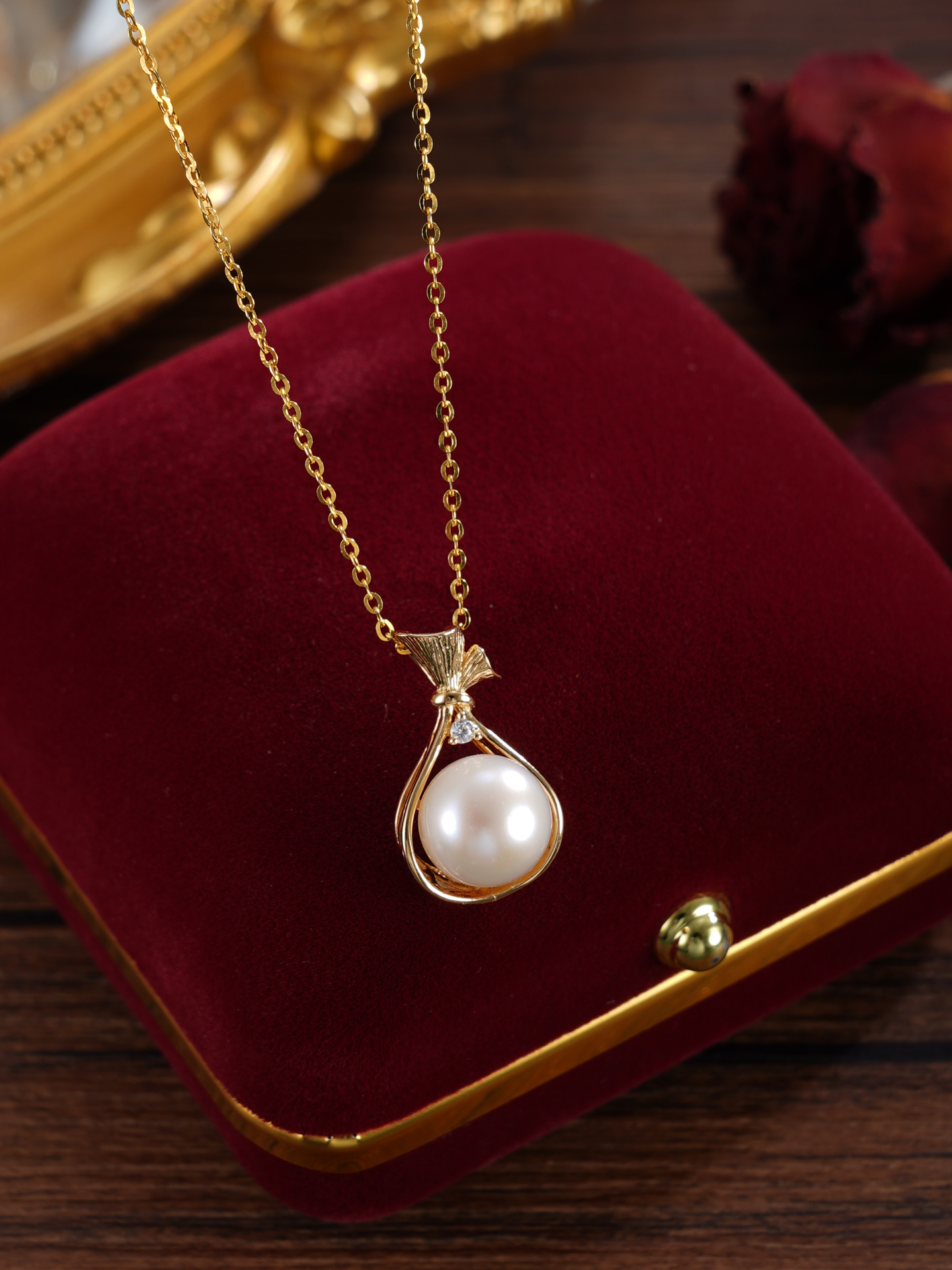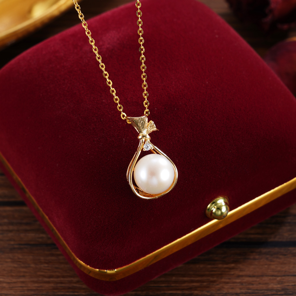 子佩集【聚宝福袋】银S925珍珠惜王妃套链【P1889】8.8mm珠镀金福袋水滴2601