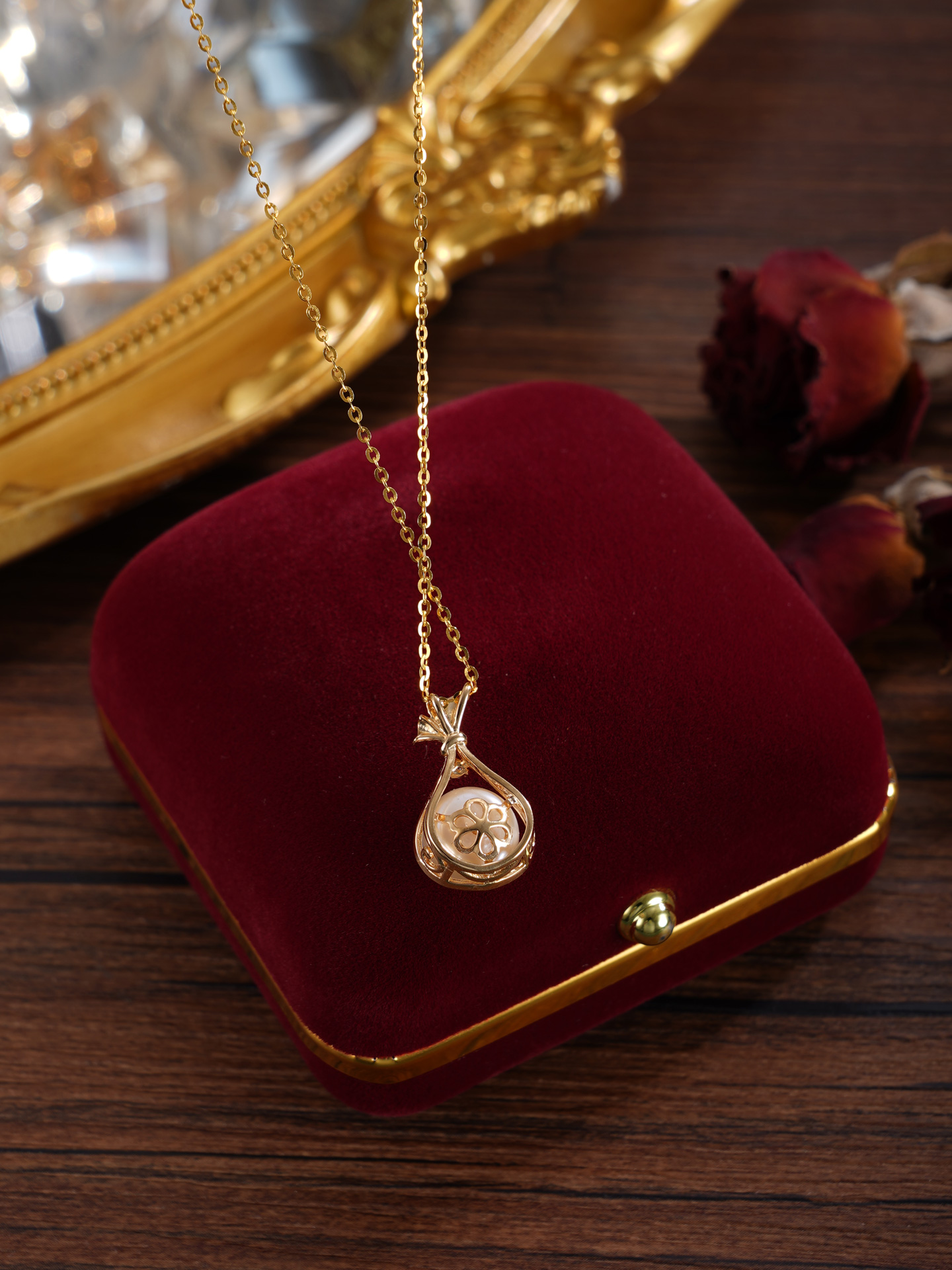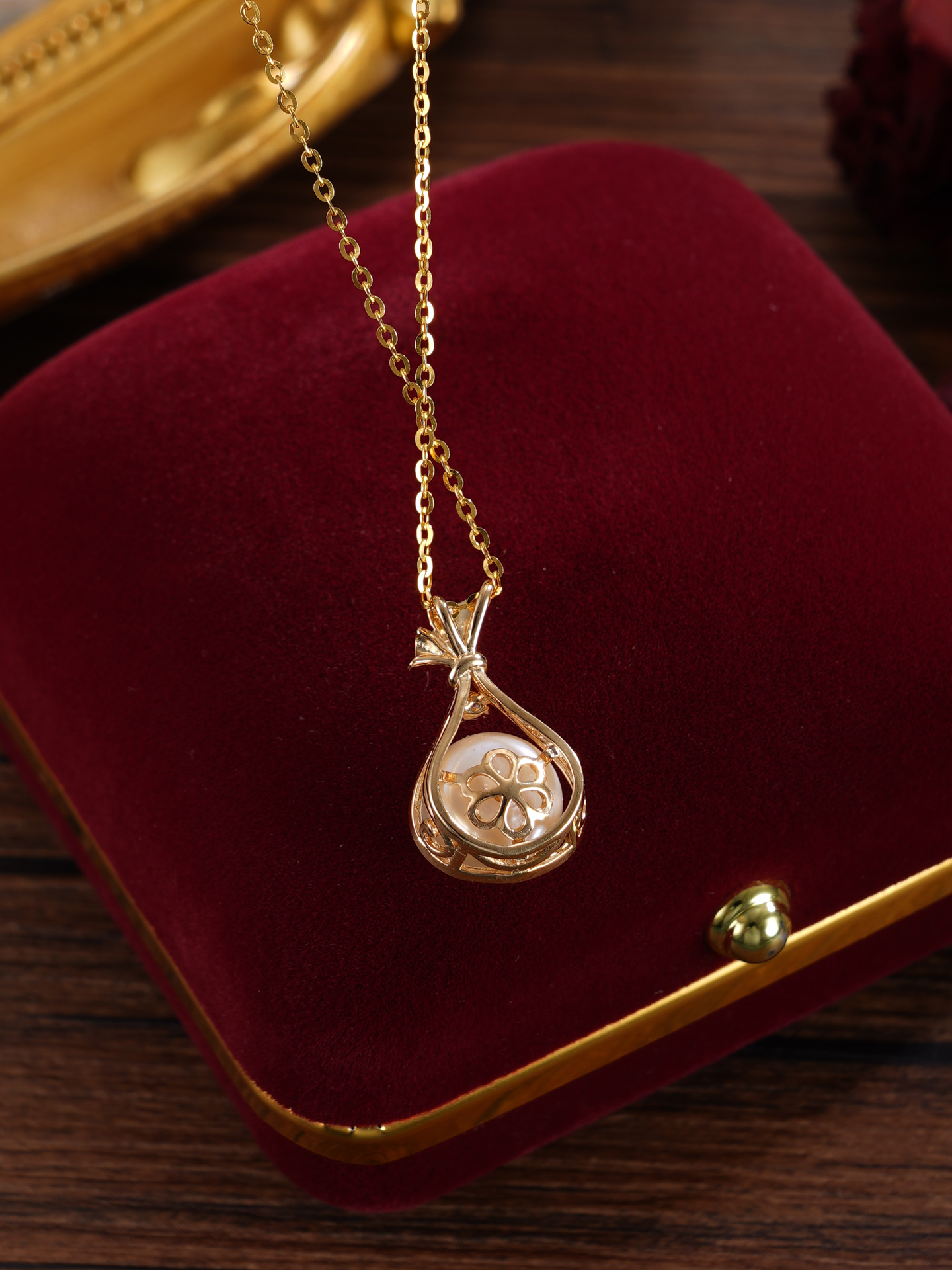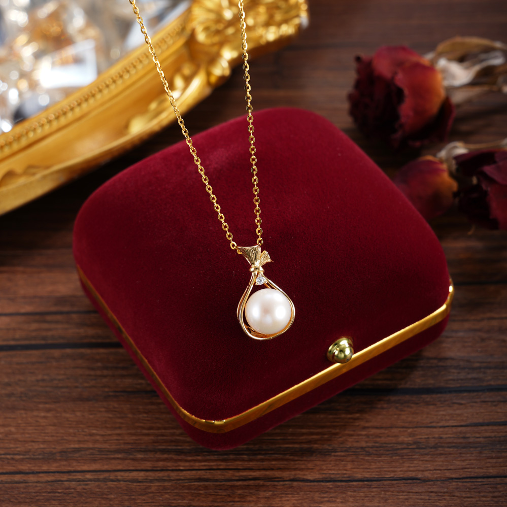 子佩集【聚宝福袋】银S925珍珠惜王妃套链【P1889】8.8mm珠镀金福袋水滴2601
