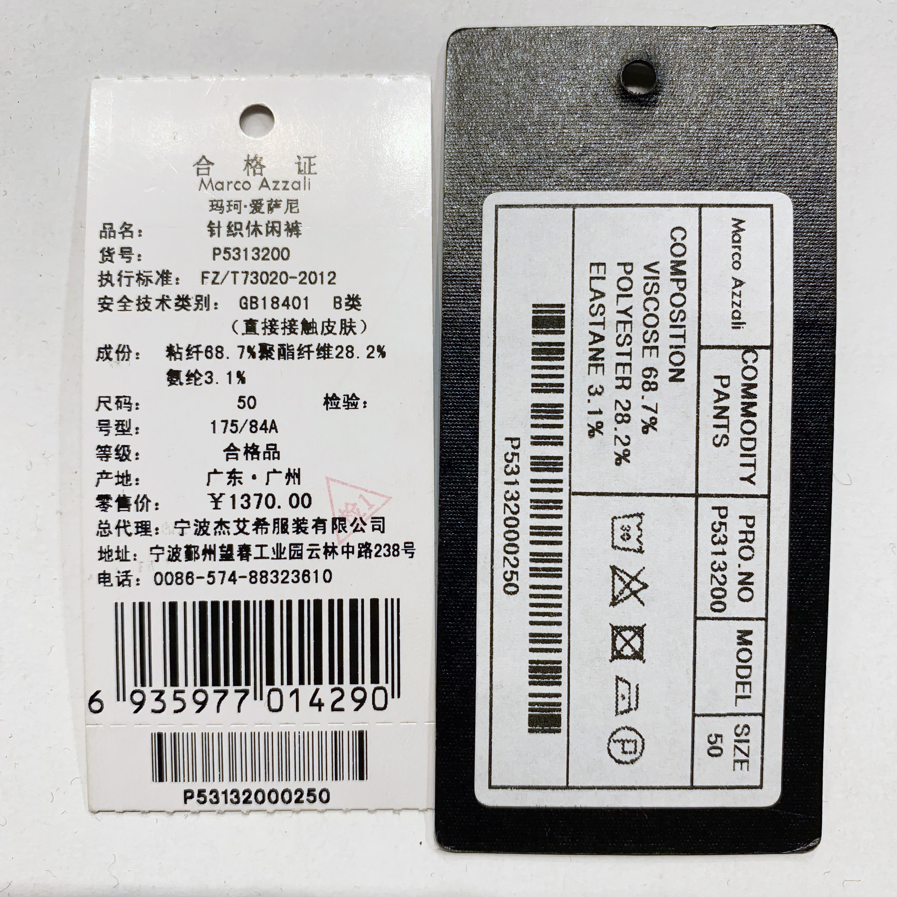 Marco Azzali针织休闲裤 P5313200