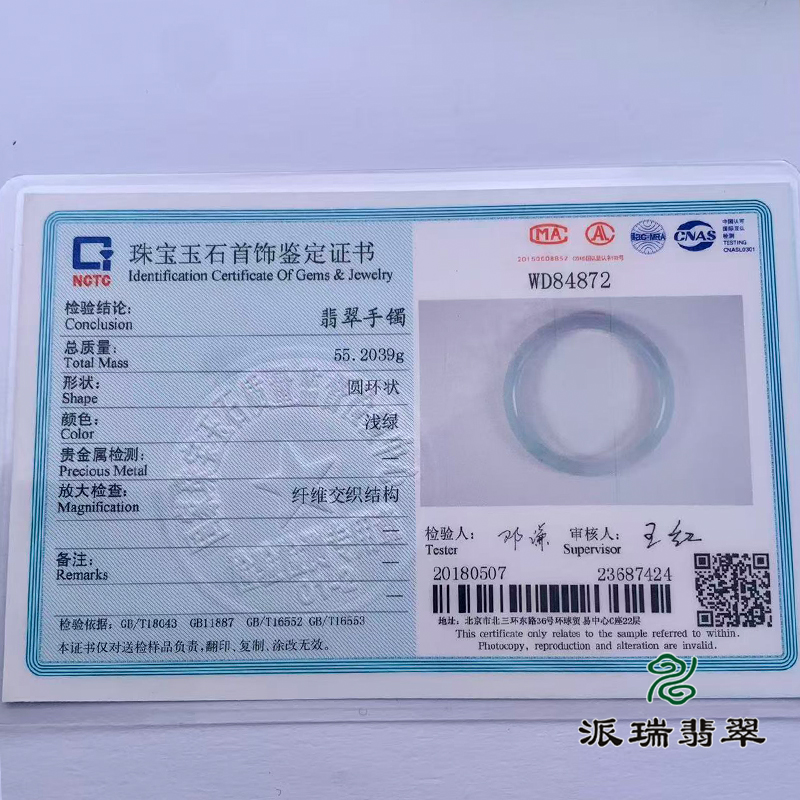 派瑞翡翠 翡翠手镯 糯种 浅绿
