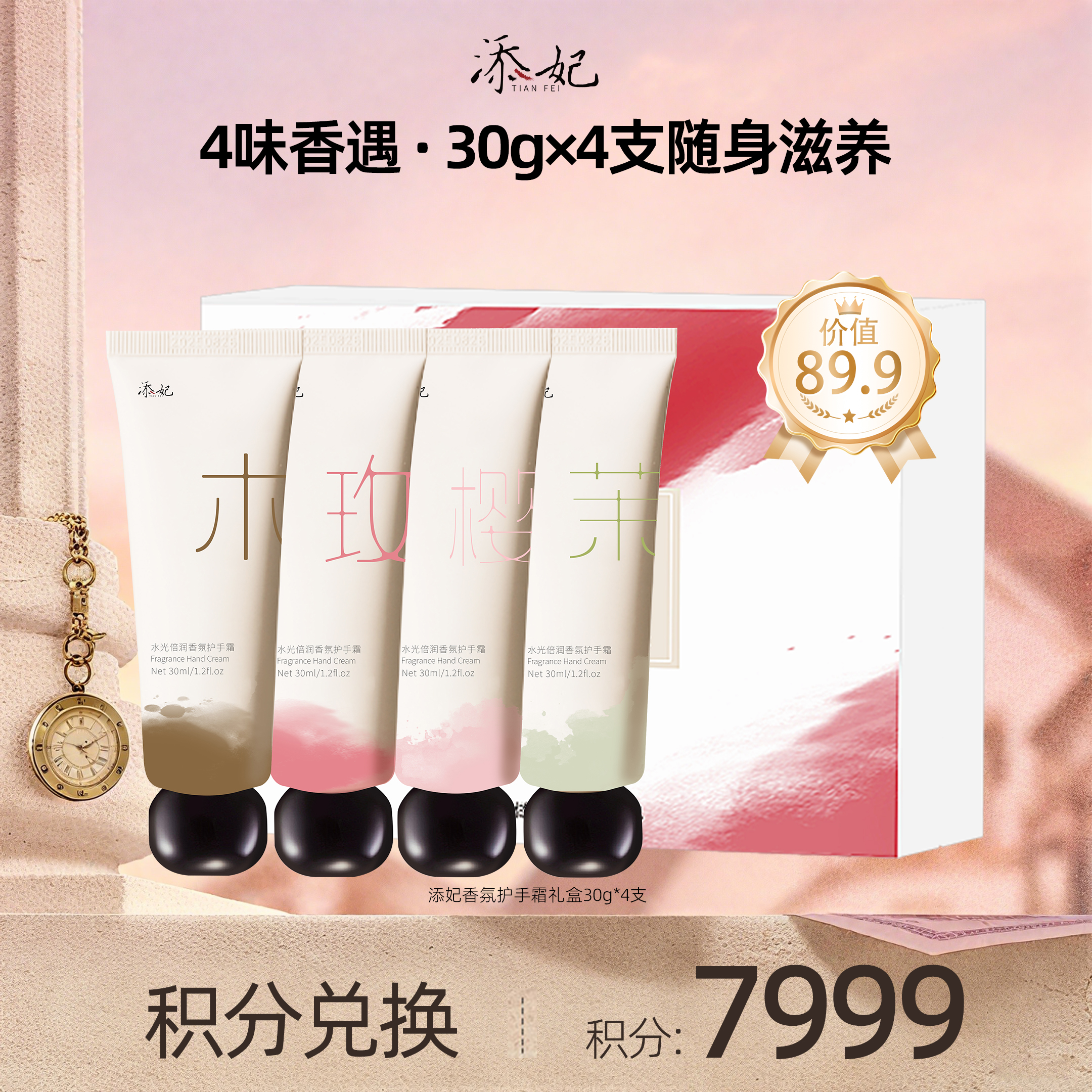 【会员积分兑换礼品】添妃香氛护手霜礼盒30g*4支(茉莉+樱花+乌木+玫瑰)