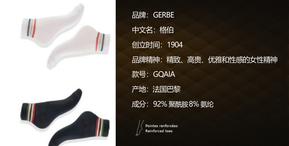 Gerbe格伯 100%法国原装进口女士丝袜 女短袜 GQAIA