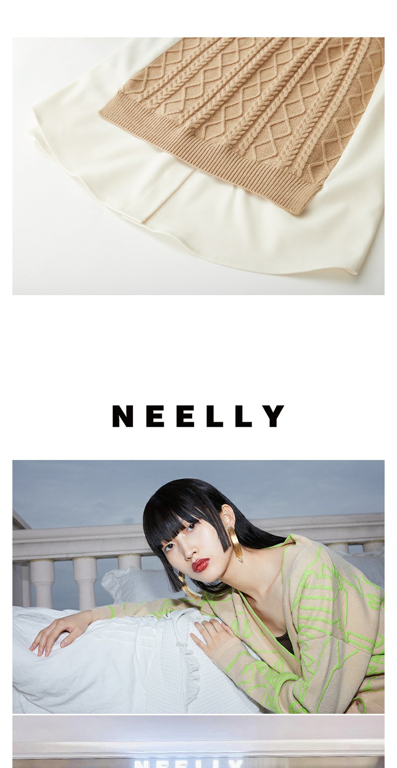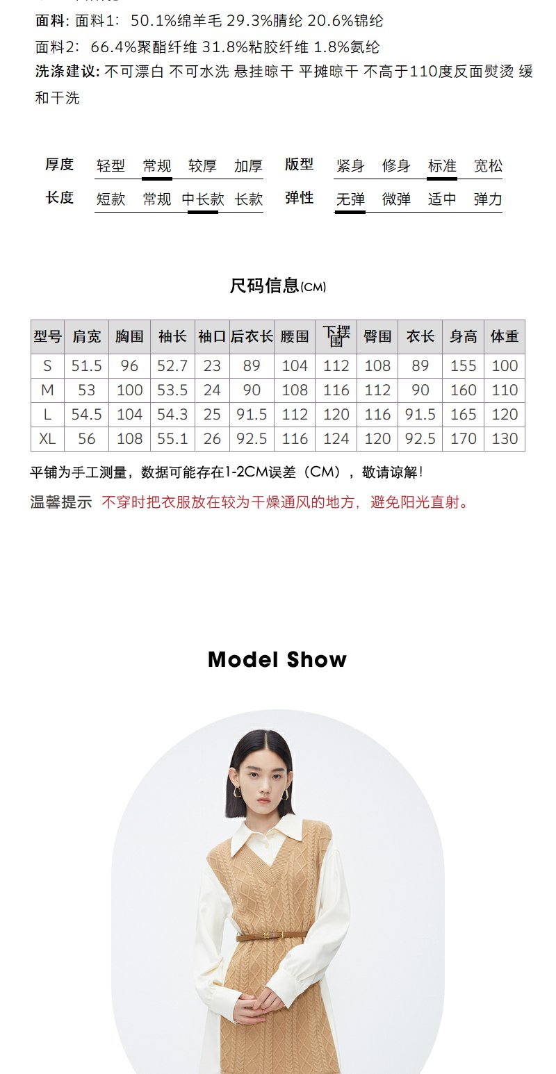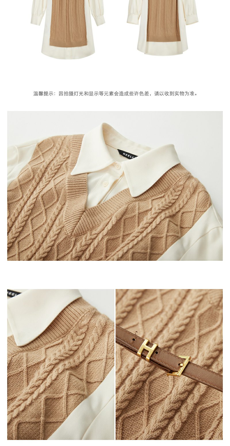 NEELLY纳俪商场同款冬季假两件连衣裙女时尚衬衫领羊毛显瘦中长裙N23112Y01174