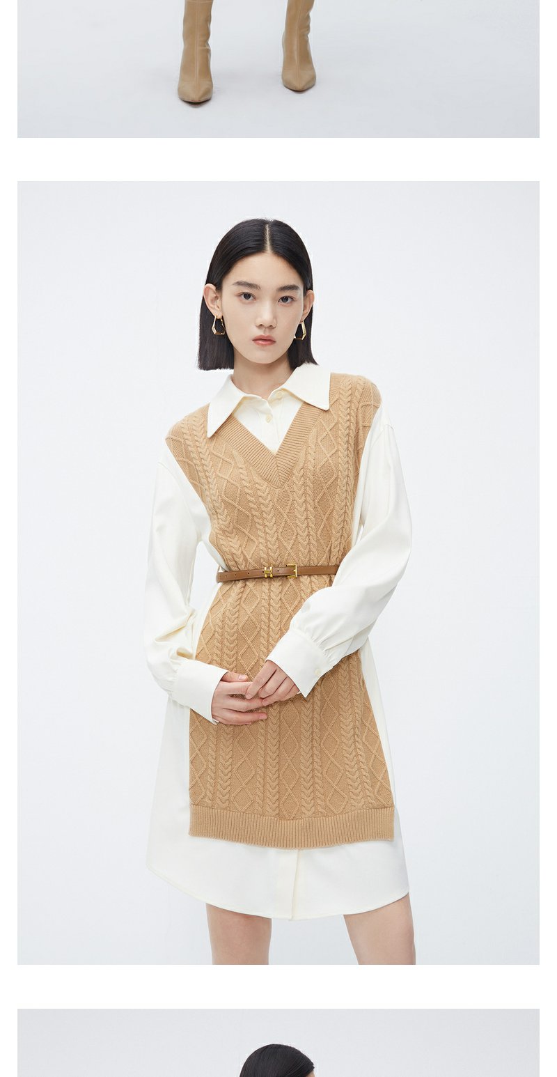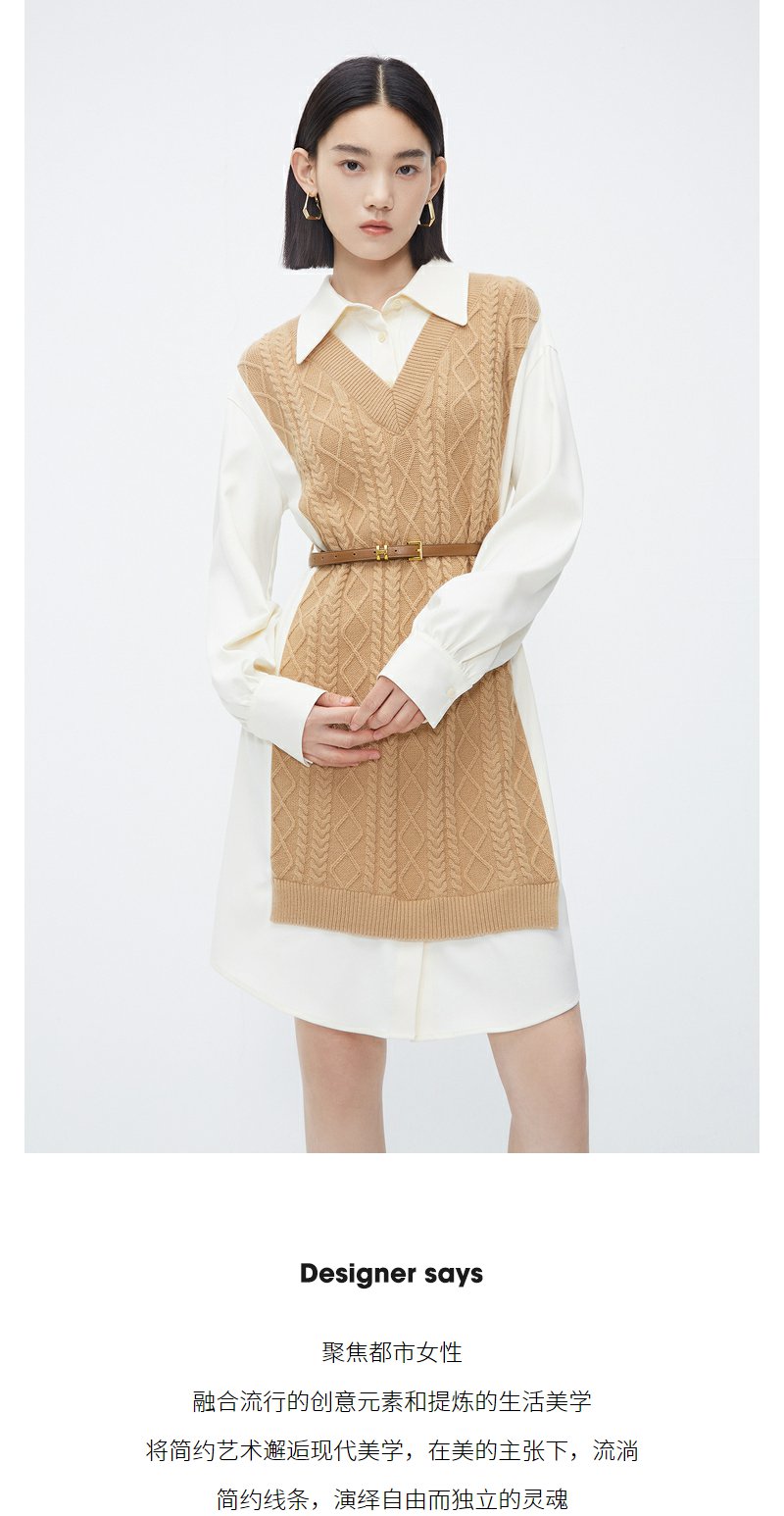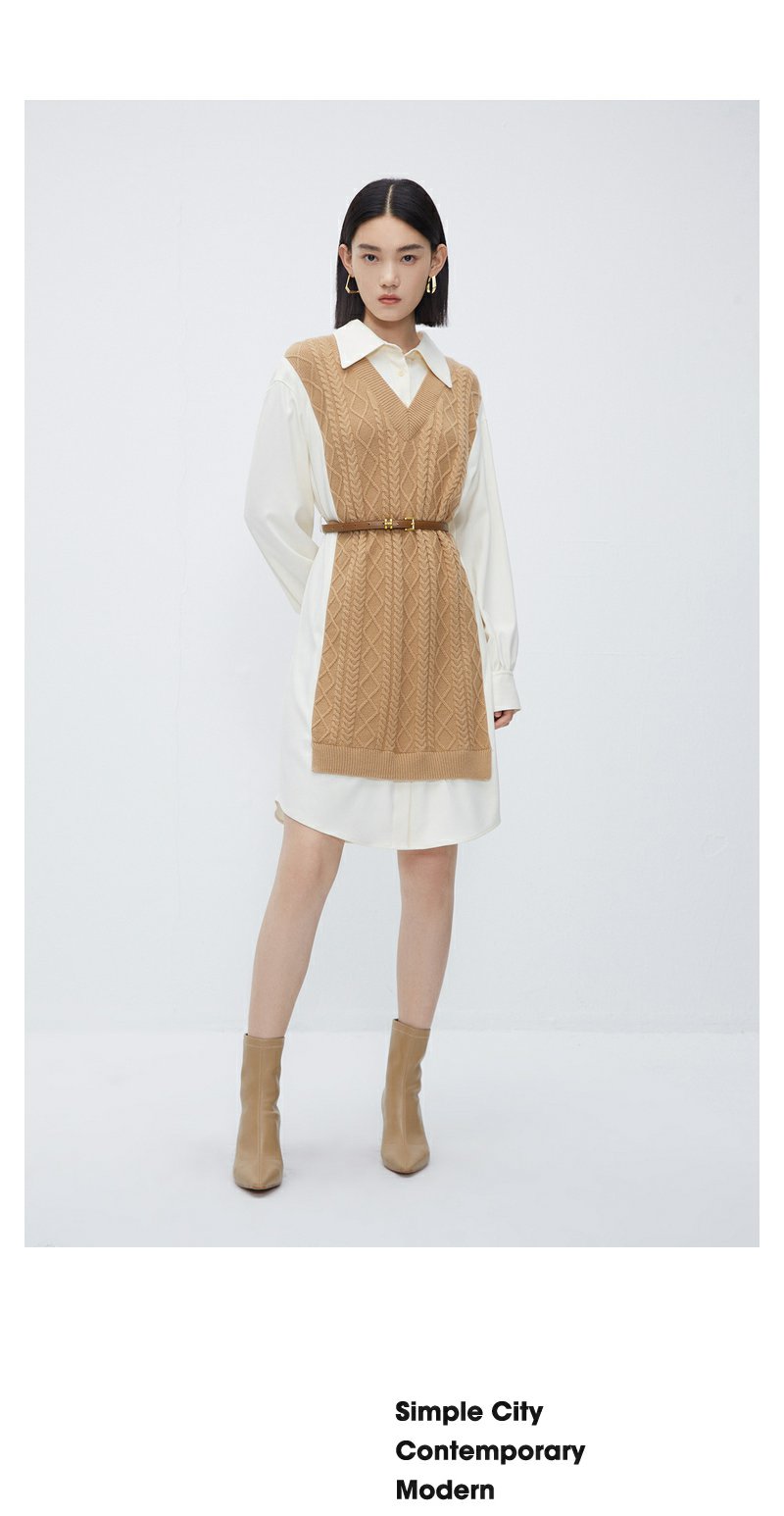 NEELLY纳俪商场同款冬季假两件连衣裙女时尚衬衫领羊毛显瘦中长裙N23112Y01174