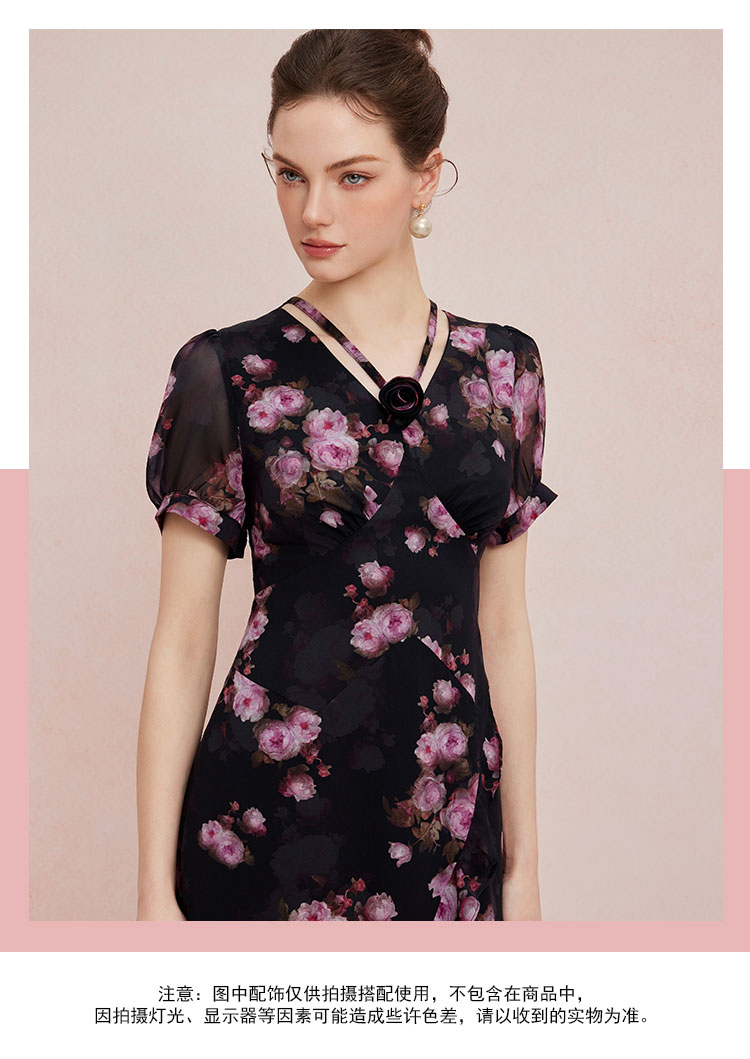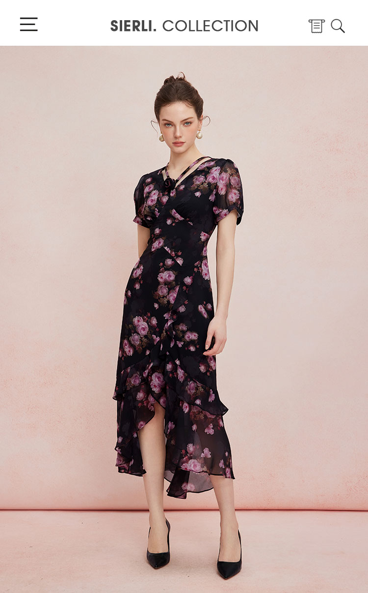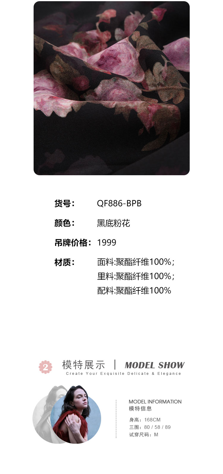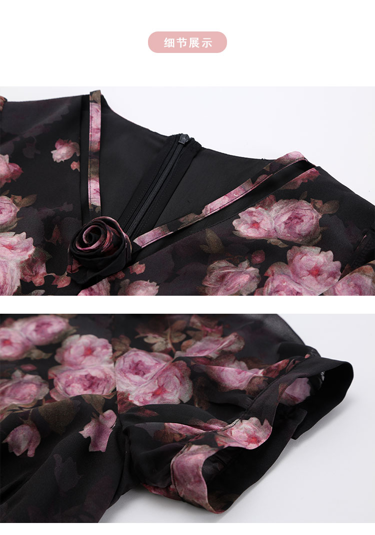 QF886斯尔丽25新款法式优雅度假风浪漫轻奢印花荷叶波浪边长款连衣裙