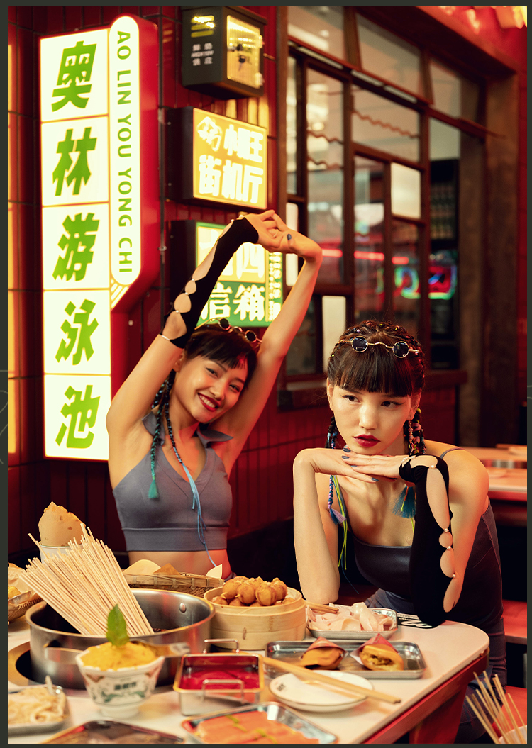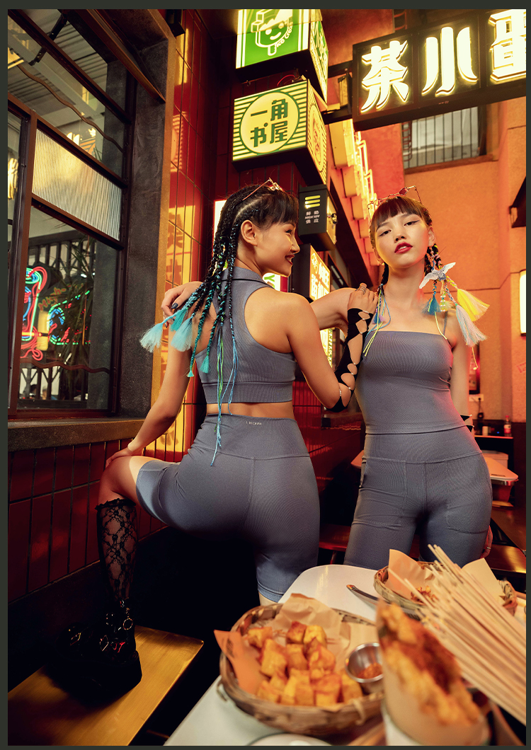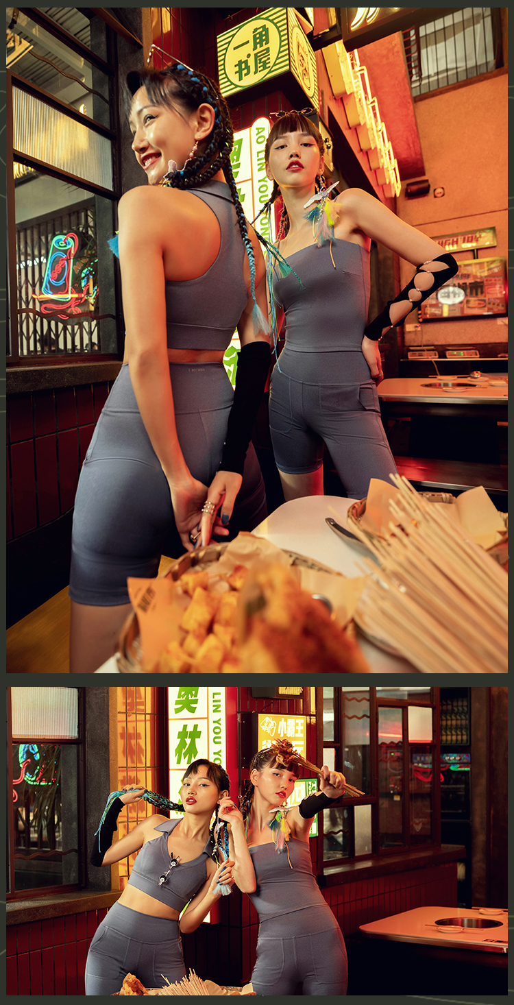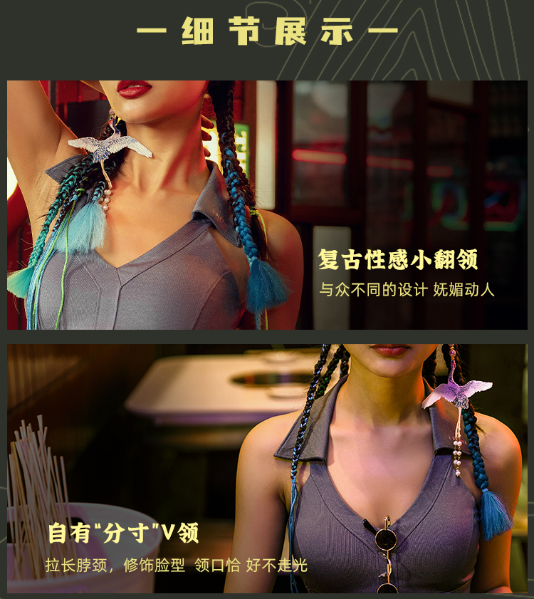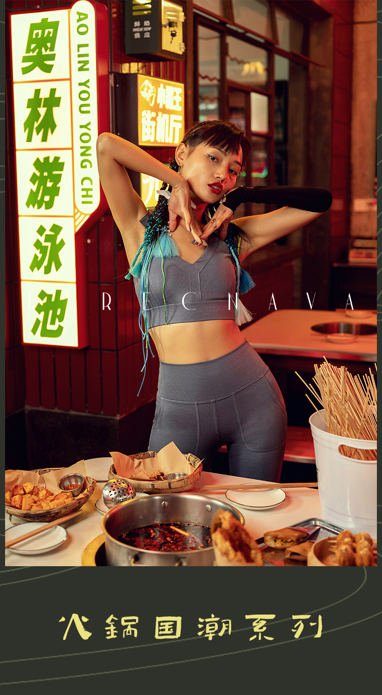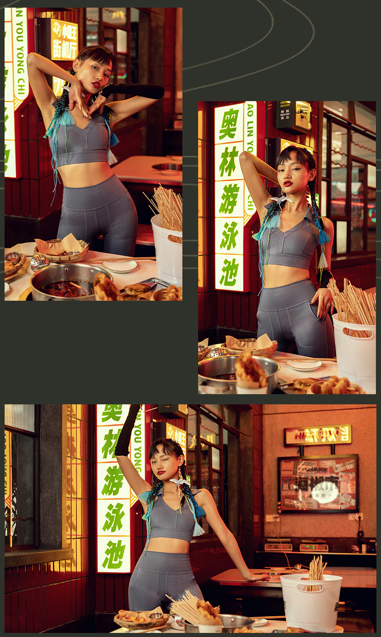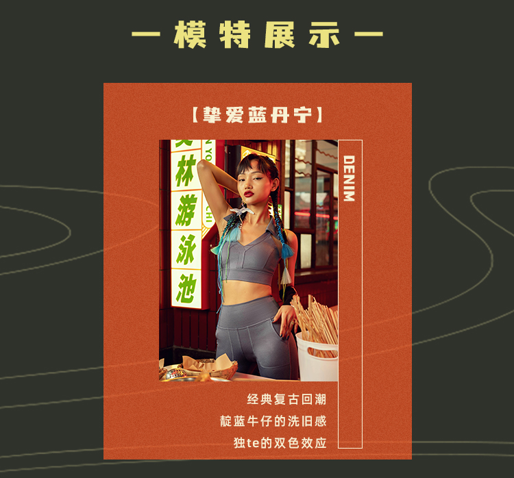 【高弹面料】火锅国潮丹宁系列运动内衣女带胸垫背心V领翻边短款背心