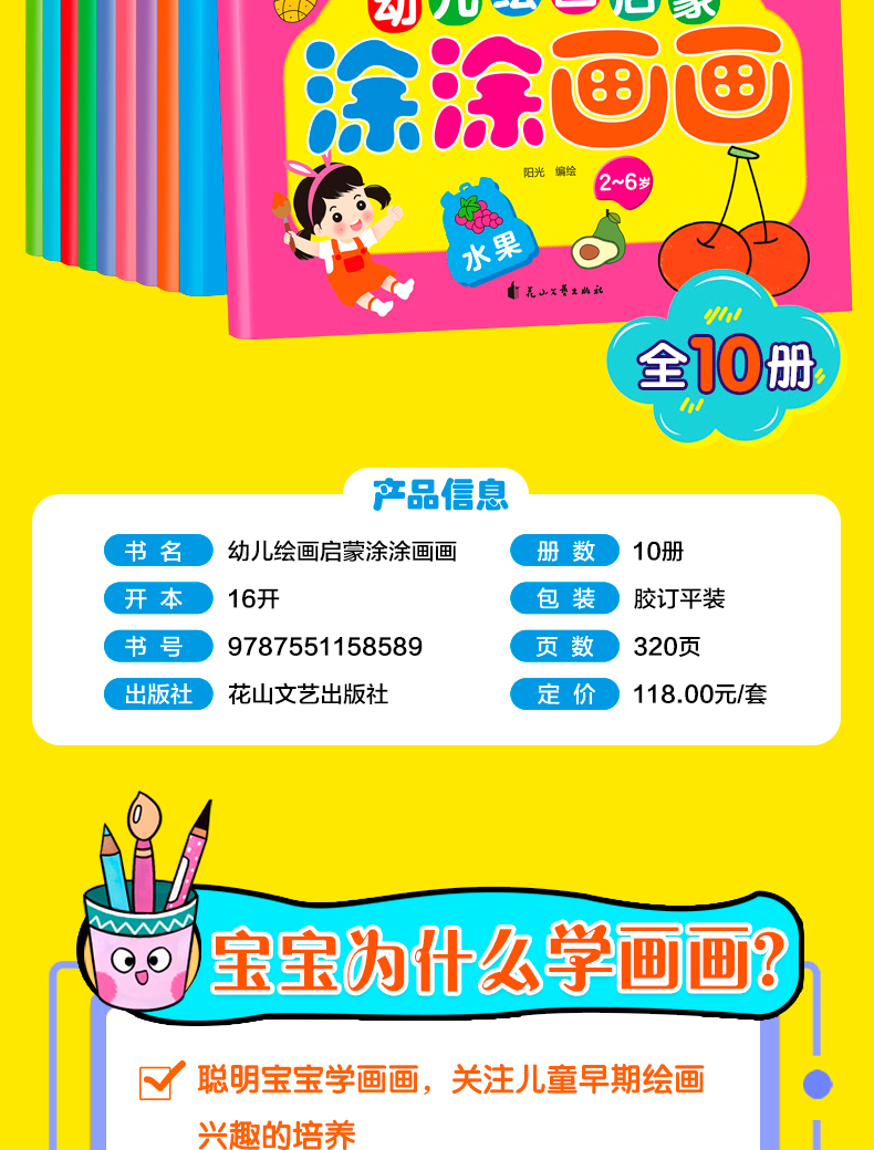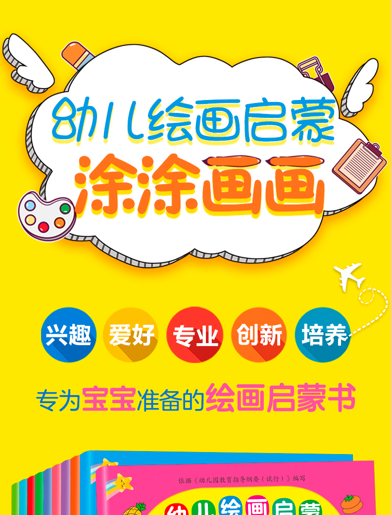 幼儿画画启蒙教材全套10册简笔画手绘本入门自学零基础2-3-5-6岁儿童学画画书入门幼儿园简笔画大全小学生美术创意涂色画本早教书