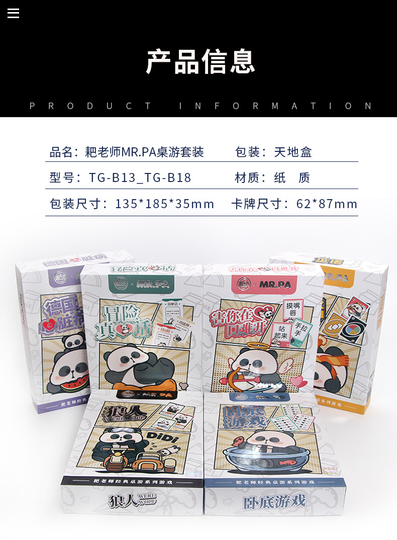 户外露营桌游【耙老师熊猫系列 狼人杀卧底游戏】巫诺牌 综艺团建聚会桌游卡牌