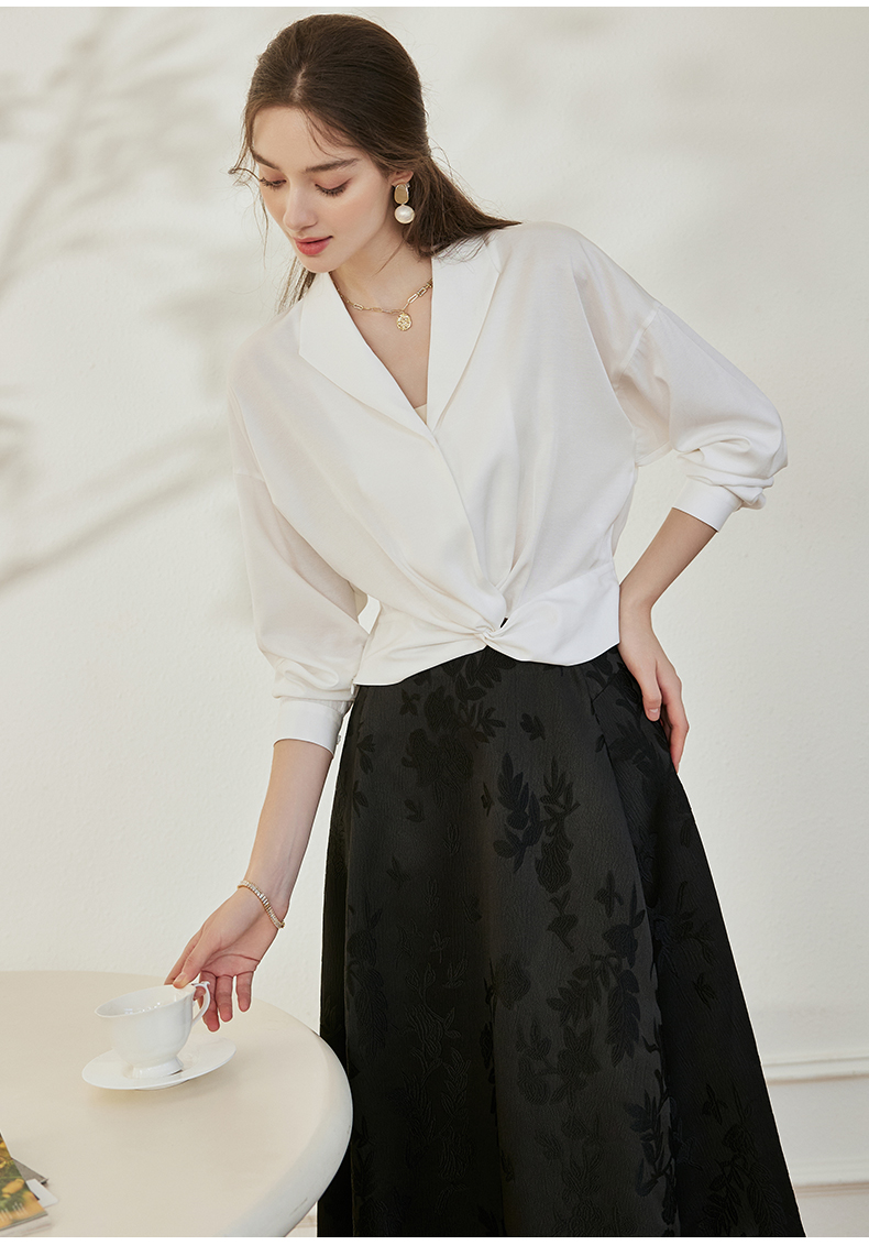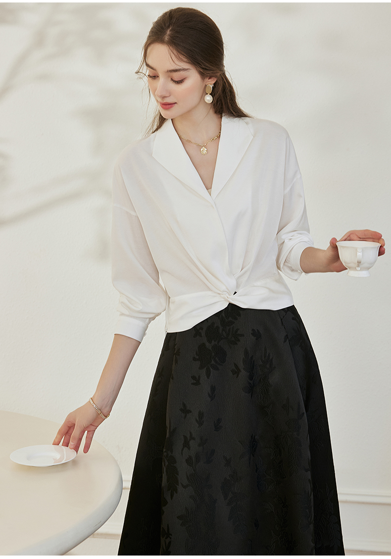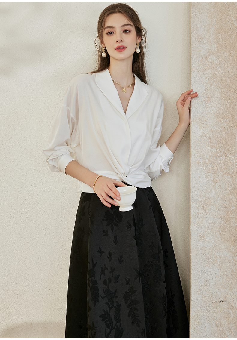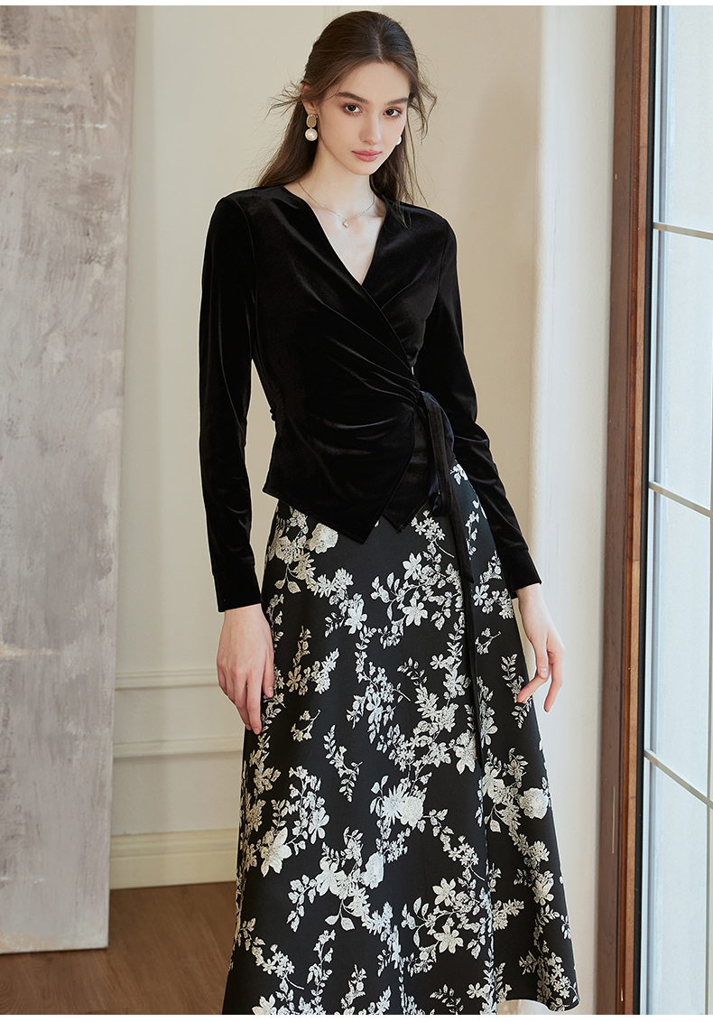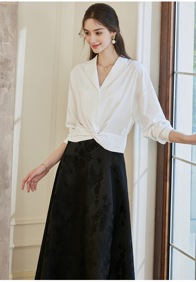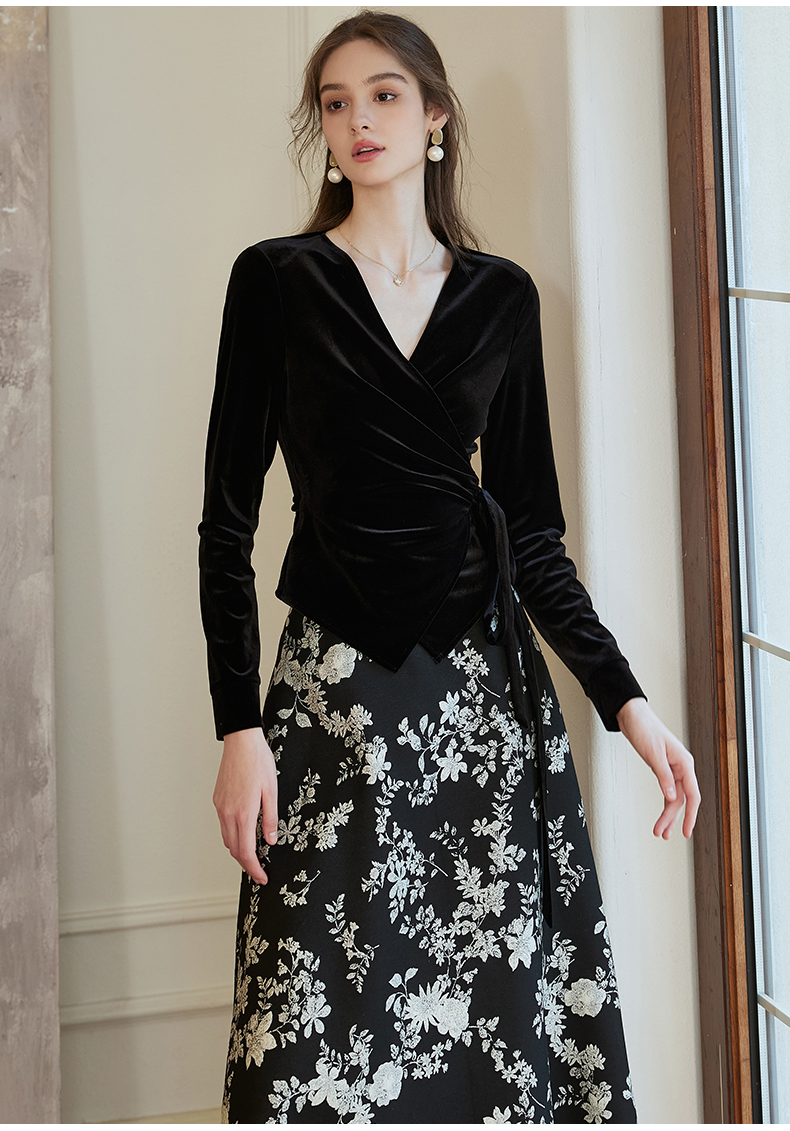 罗衣新中式中国风提花半身裙2024秋季新款高腰黑色大摆长裙10039