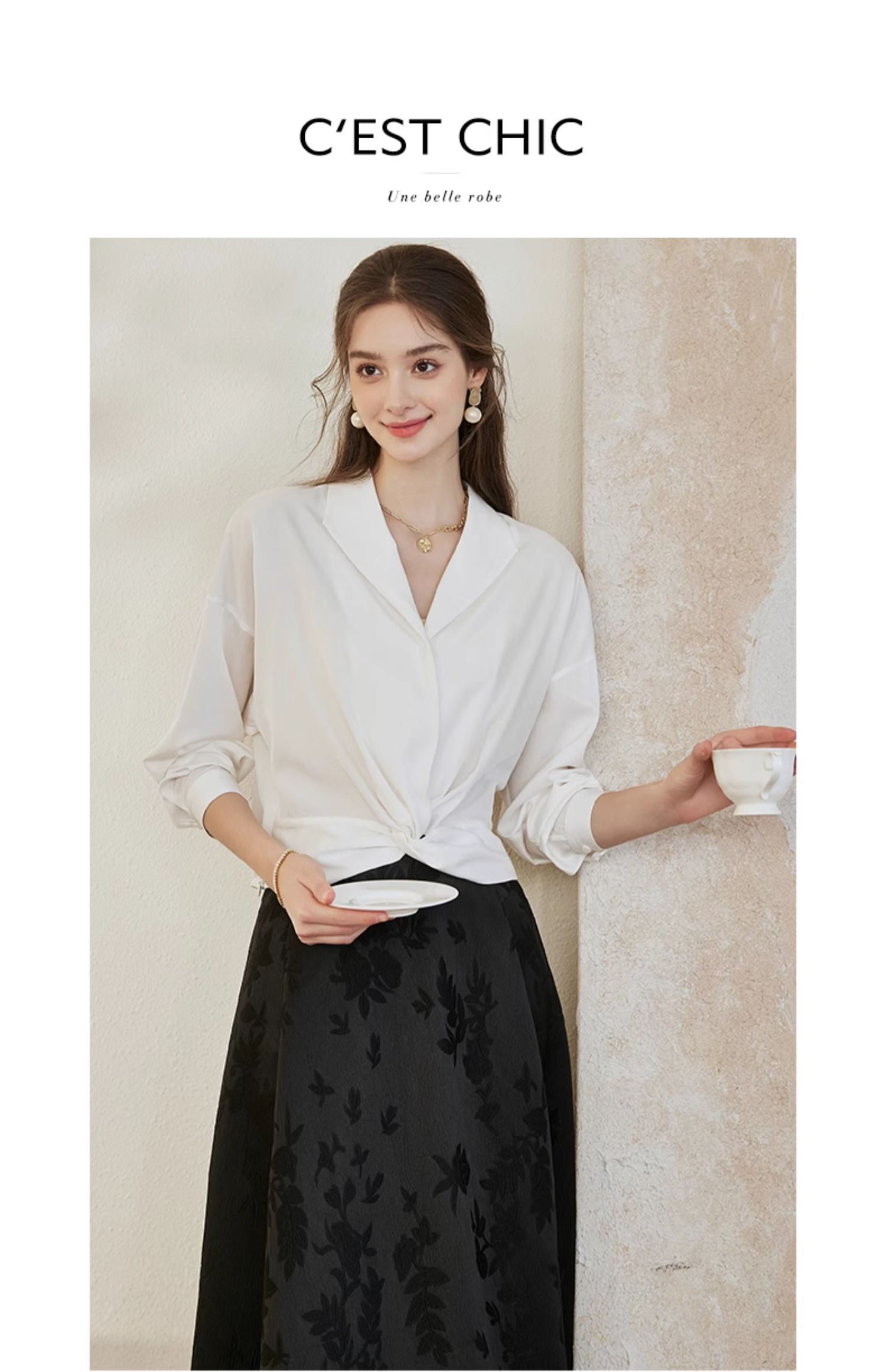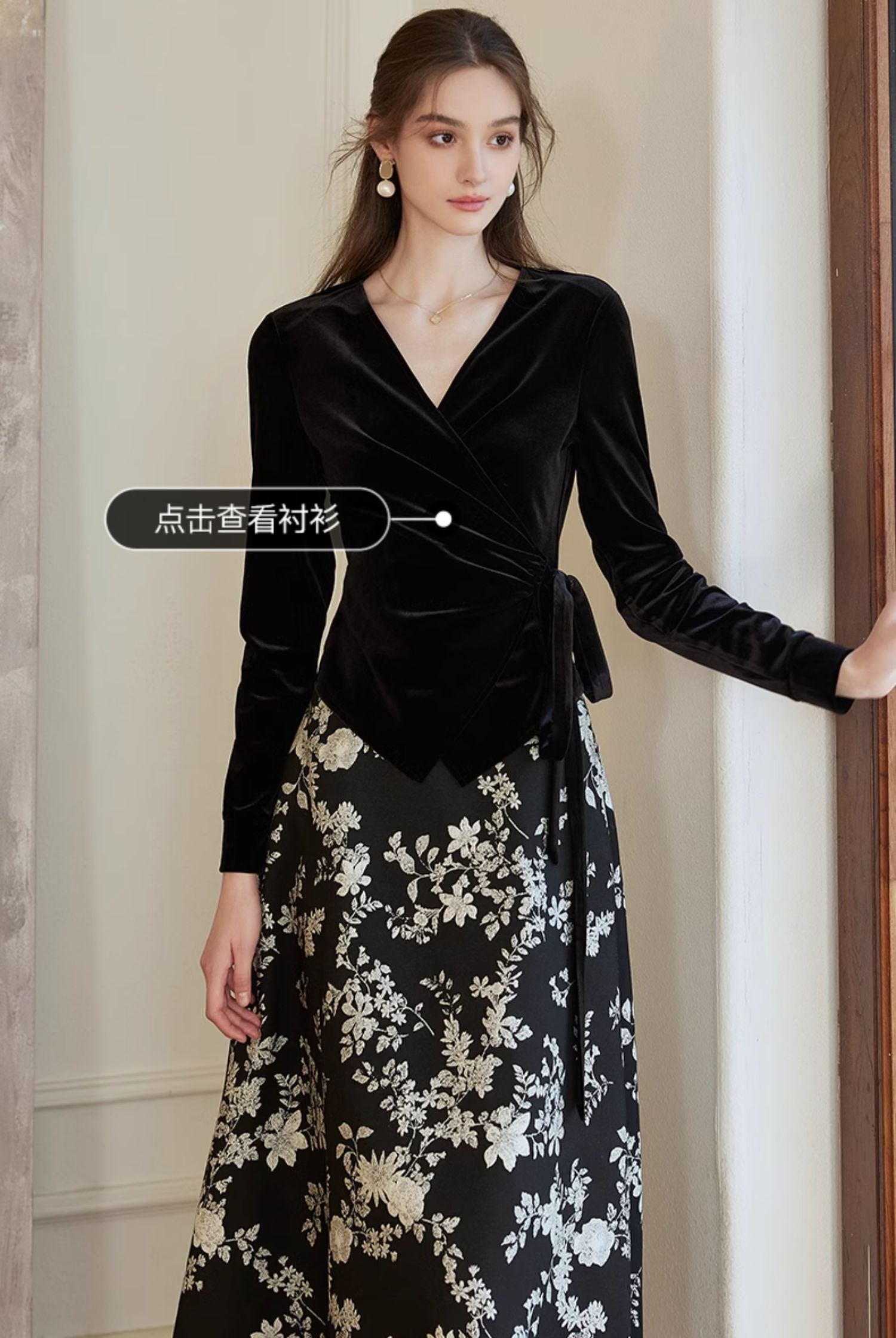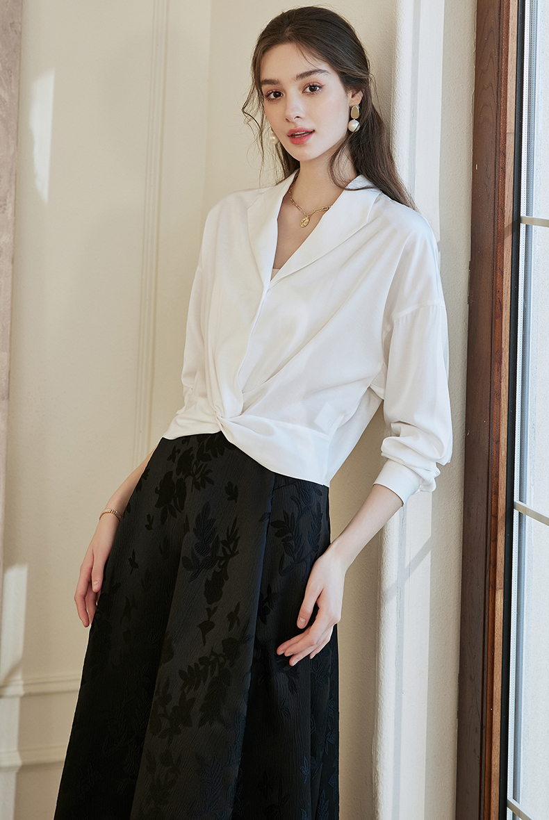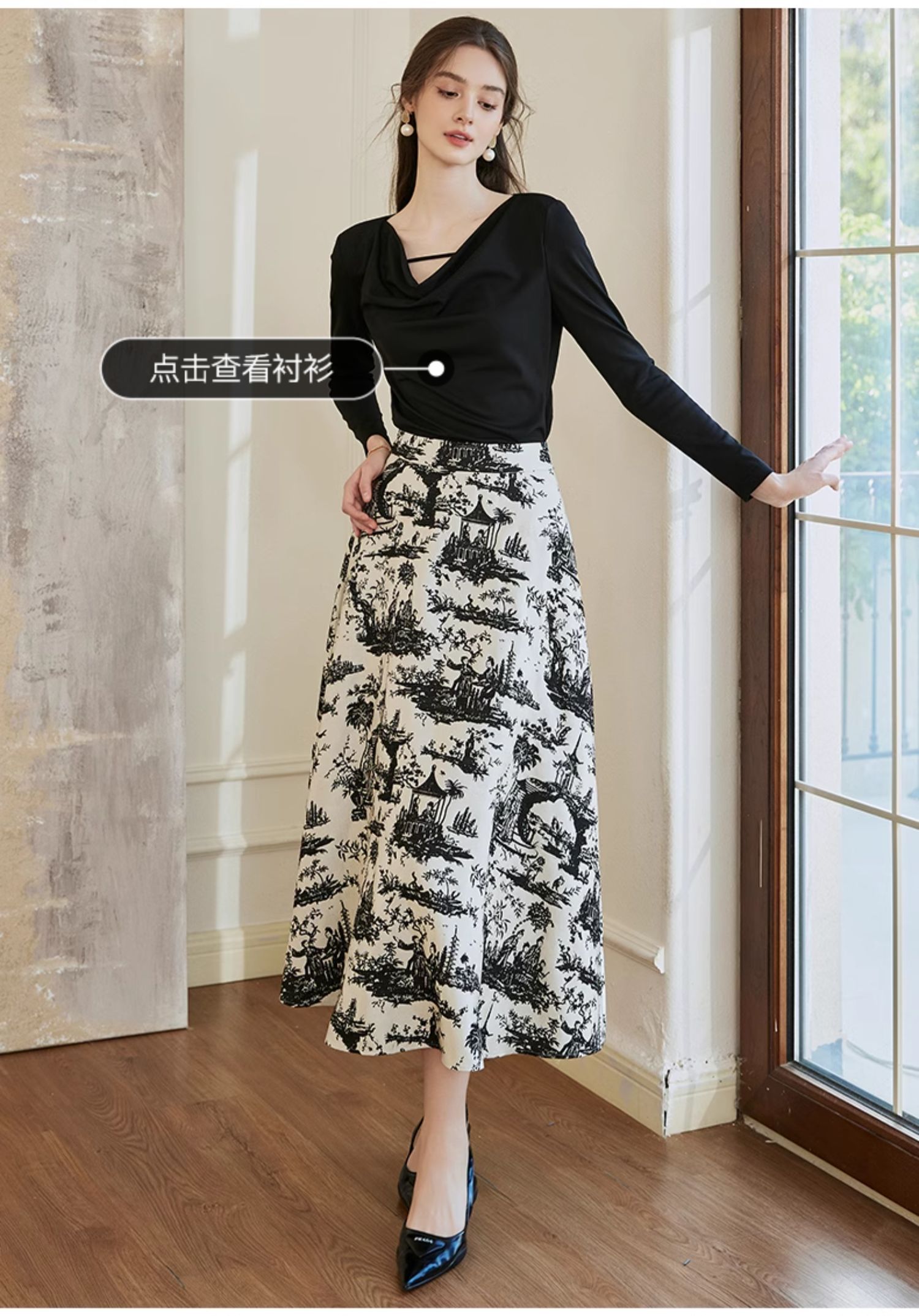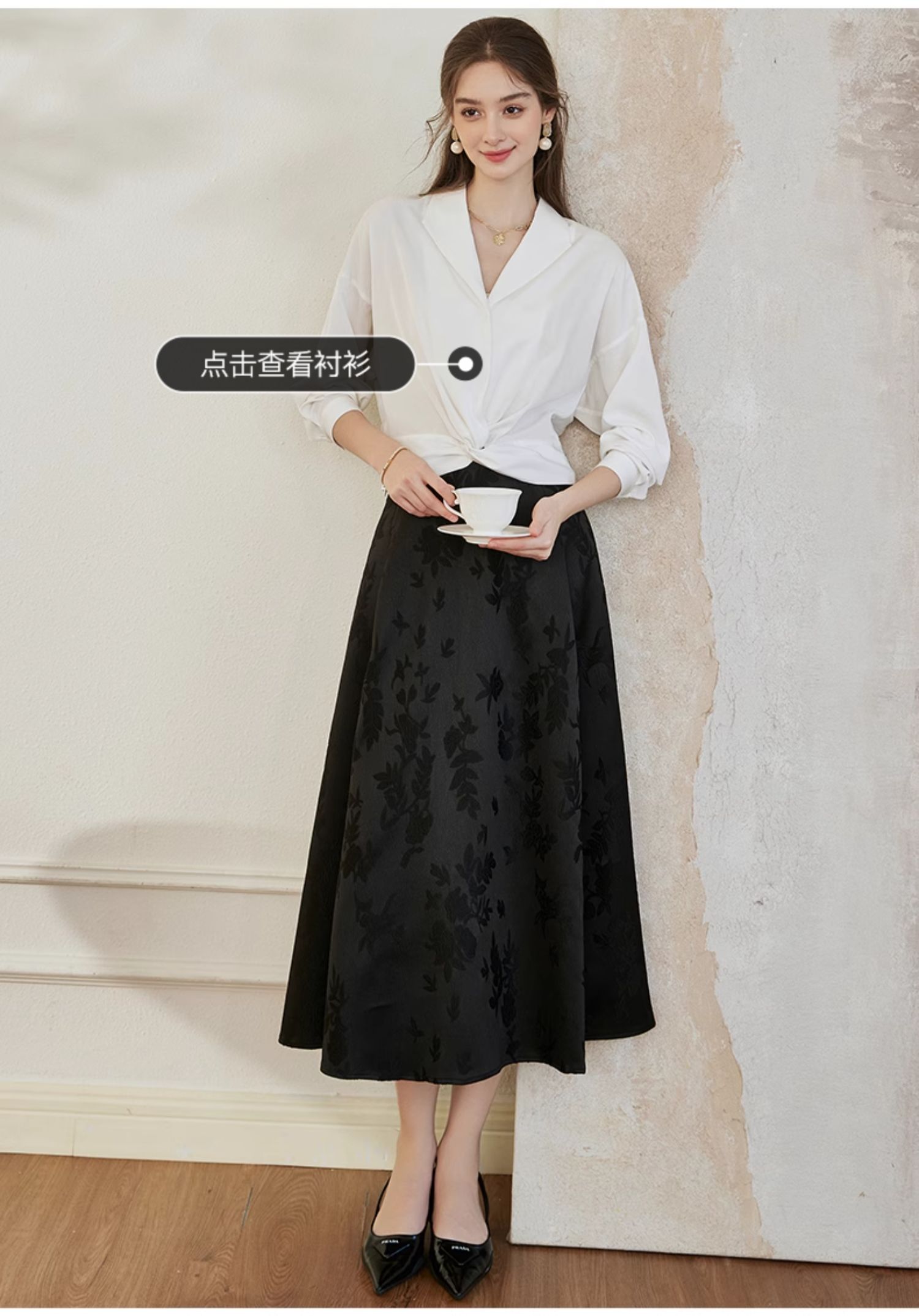 罗衣新中式中国风提花半身裙2024秋季新款高腰黑色大摆长裙10039