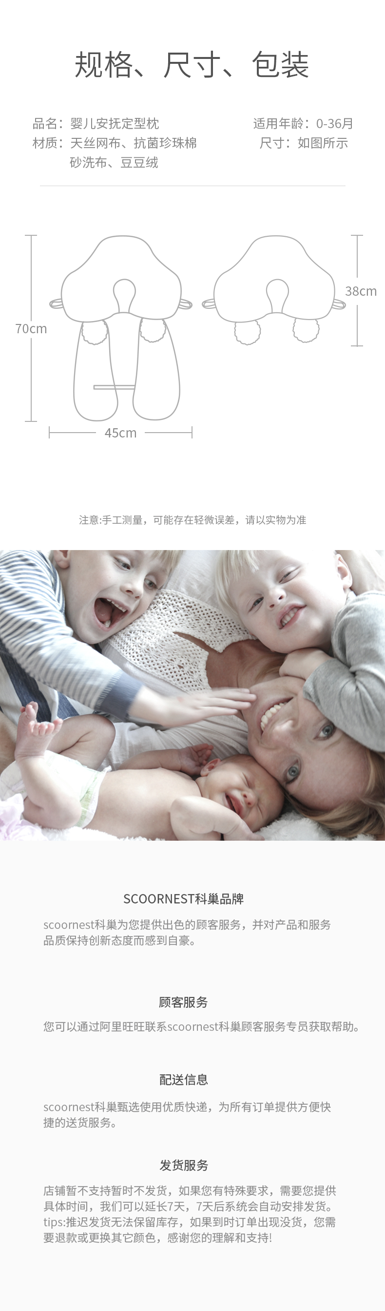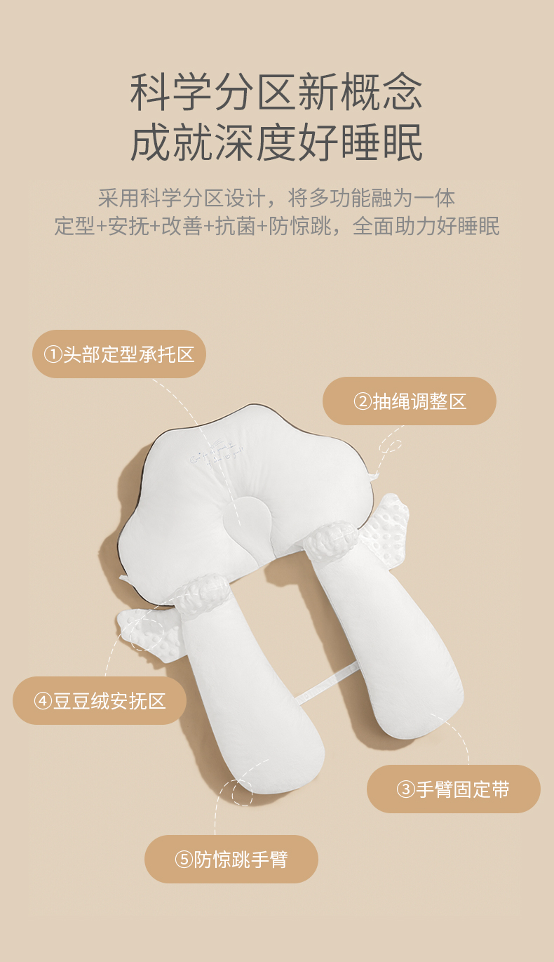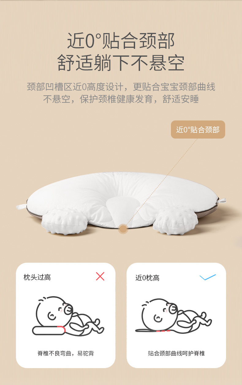 科巢婴儿定型枕防偏头型新生宝宝0到6个月1岁安抚防惊跳夏季透气