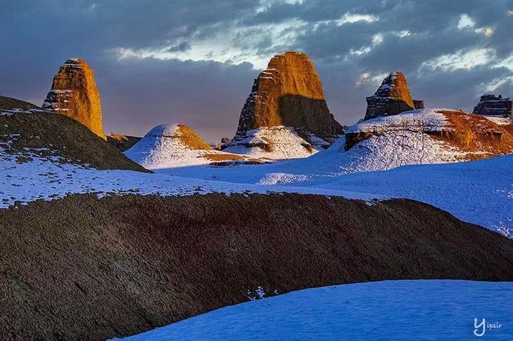 魔鬼城,没有了夏日的热烈与喧嚣,却多了几分宁静与深邃。阳光透过稀薄的云层,洒在那些历经千万年风雨侵蚀的岩石上,金色的光辉与岩石的灰白交织,构成了一幅幅天然的油画。